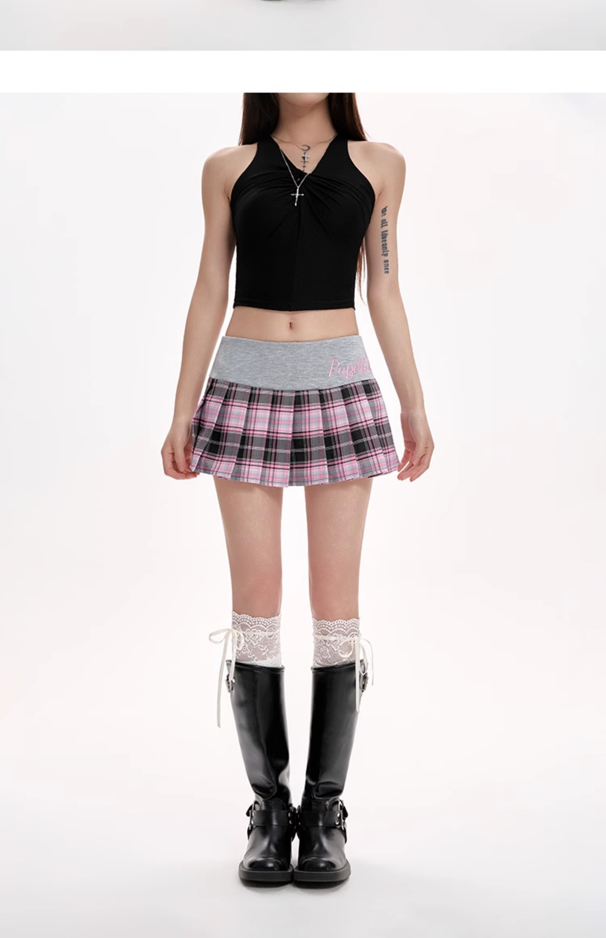 Pink plaid pleated skirt