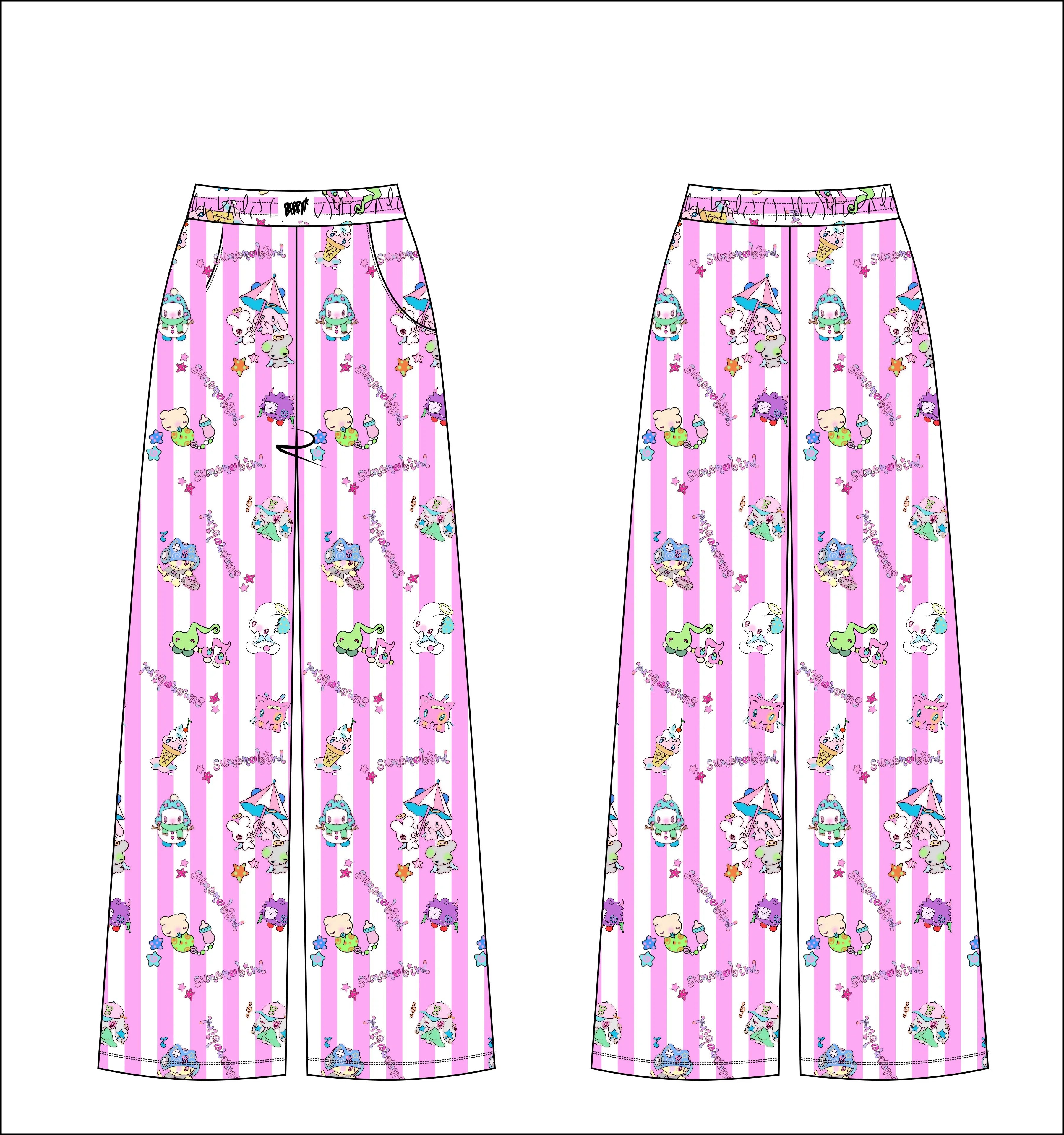 Pink striped cute doll pajama pants