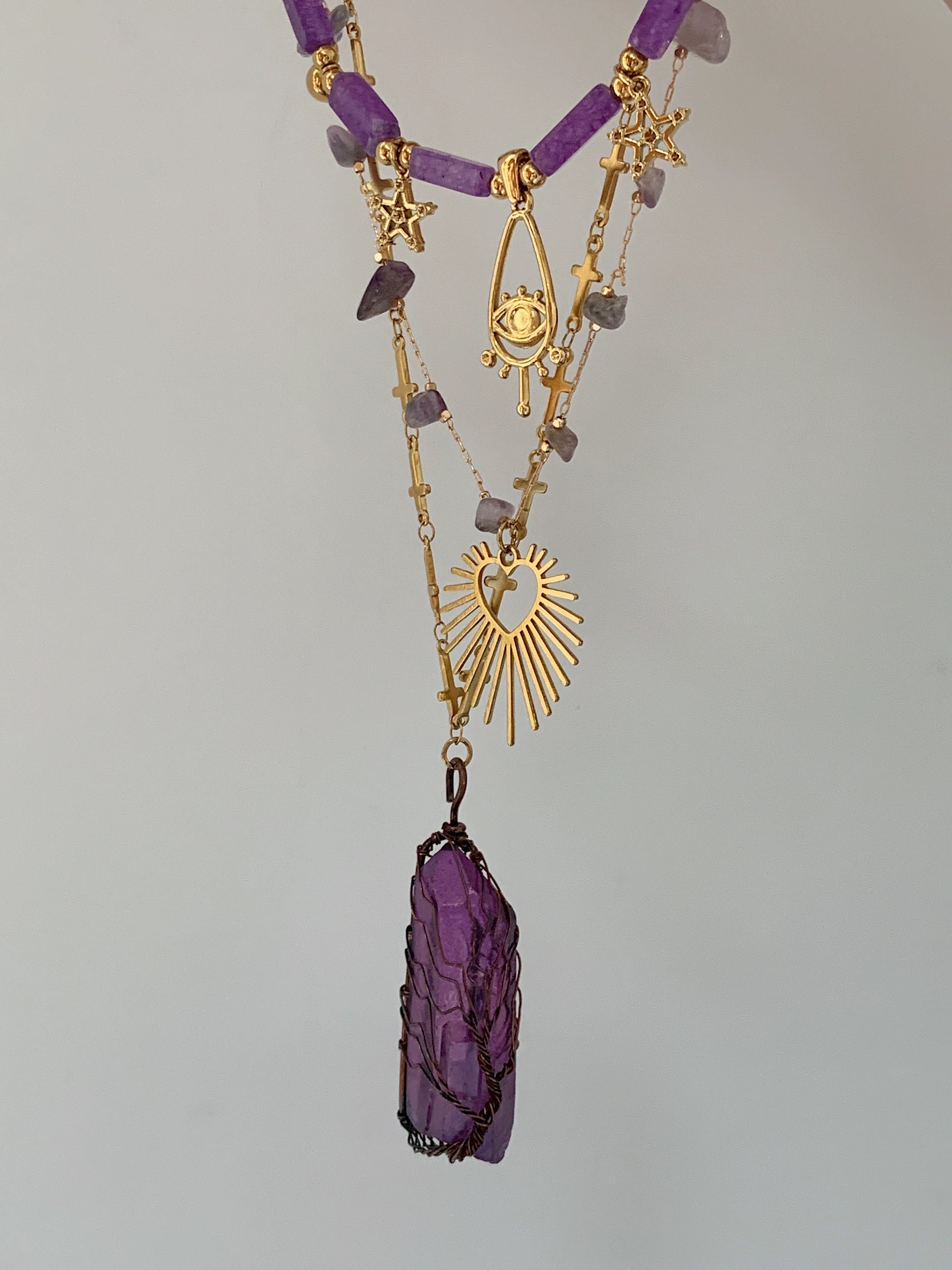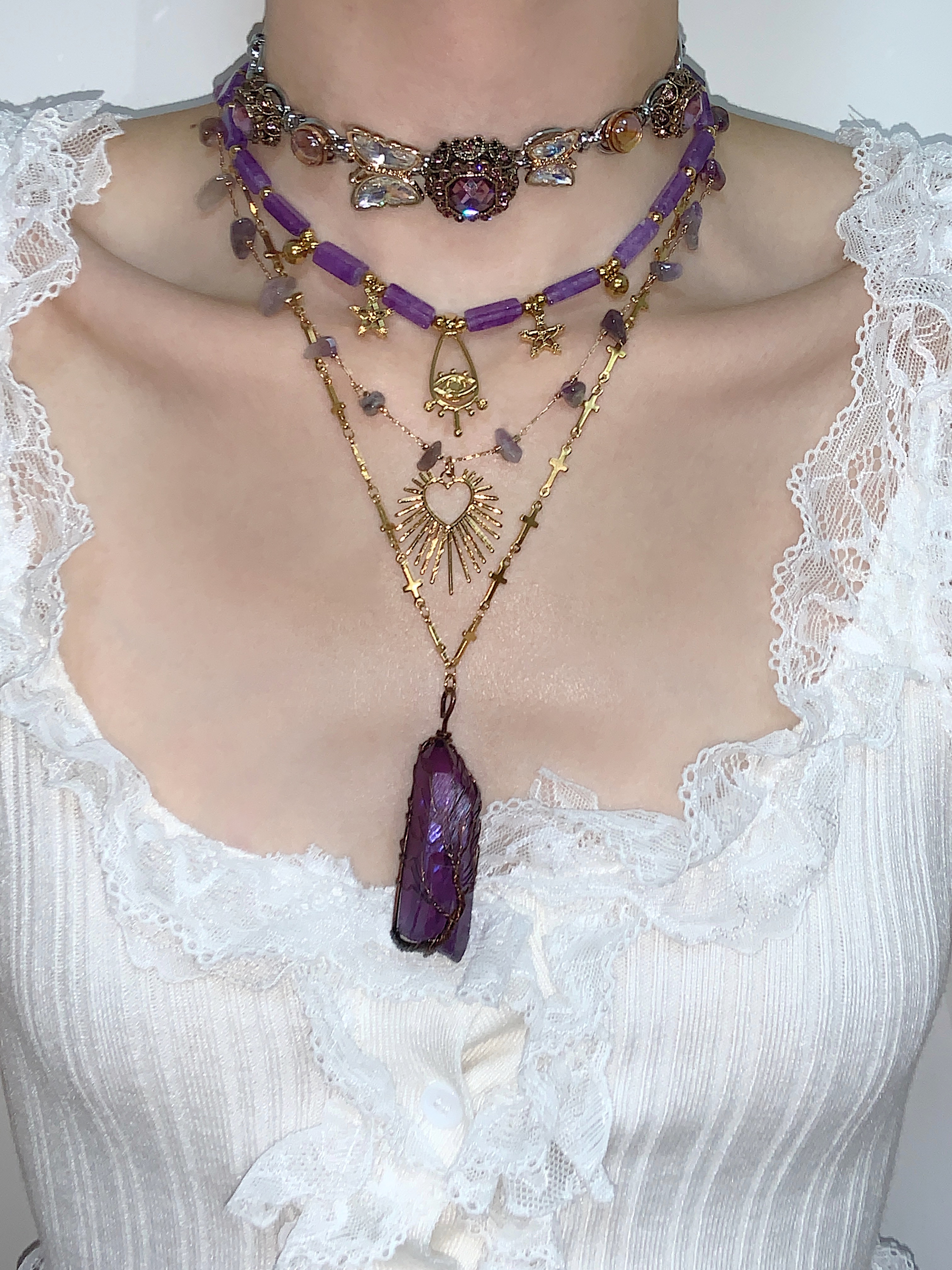 Purple Spirit Crystal Natural Stone Love Titanium Steel Necklace Stacked