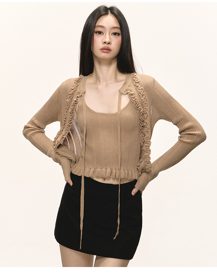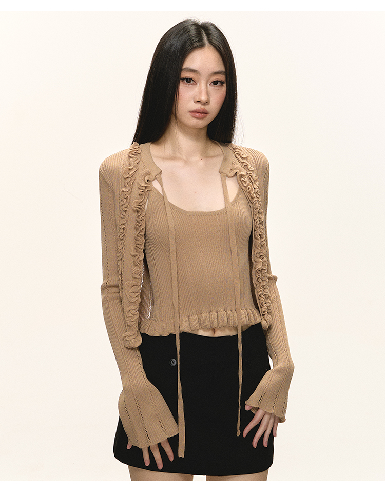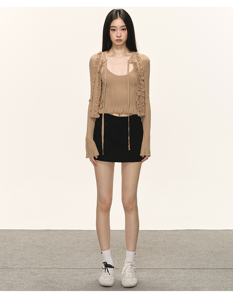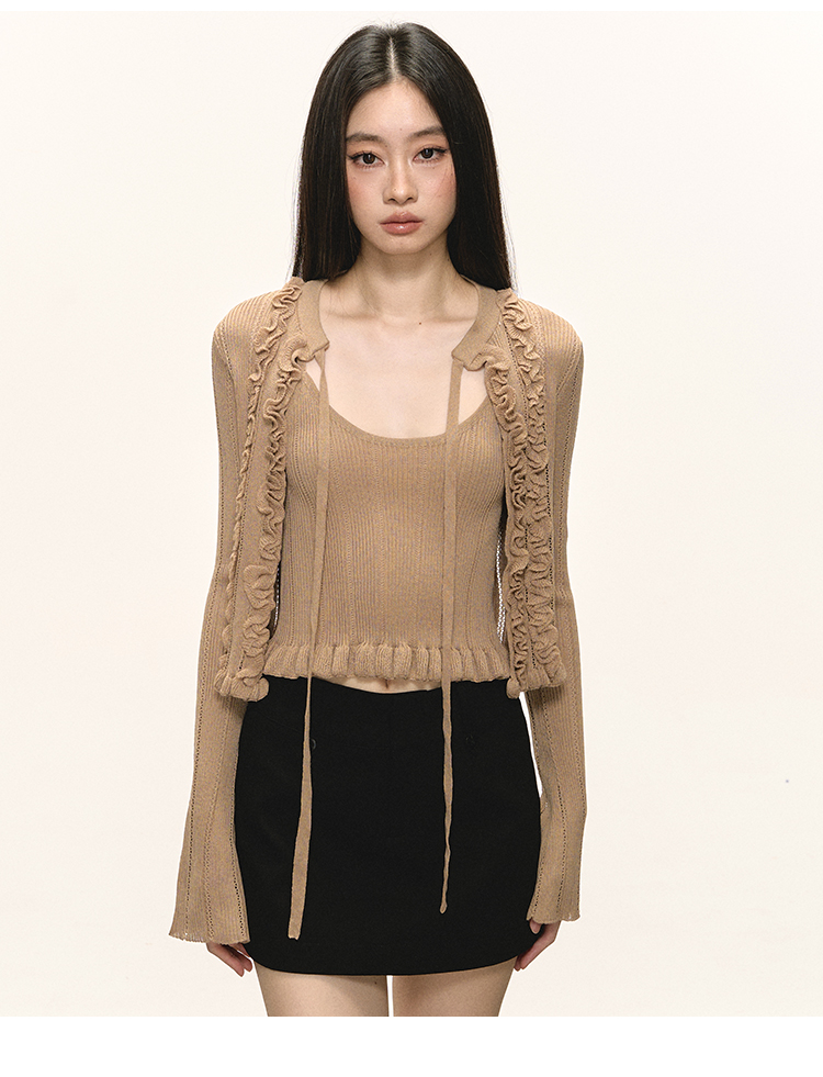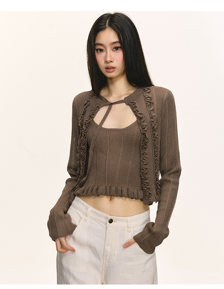 Short cami cardigan two-piece set
