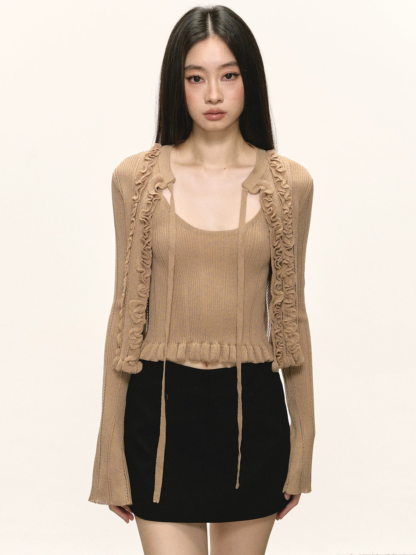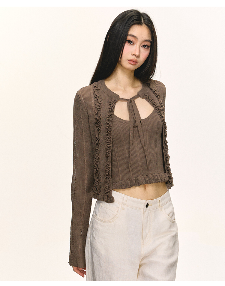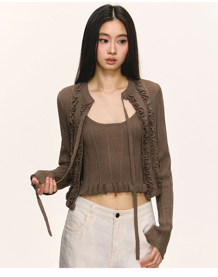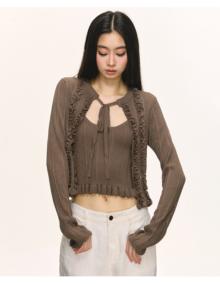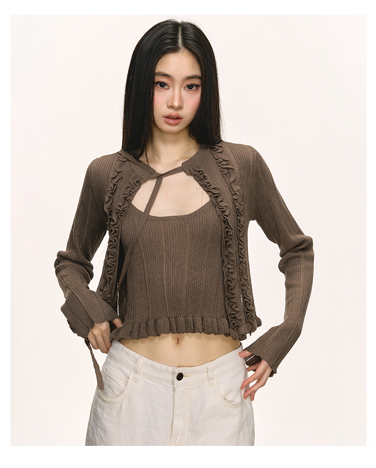 Short cami cardigan two-piece set
