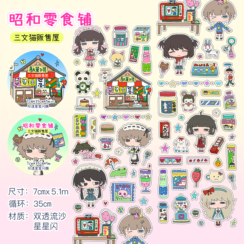 Showa Snack Shop Character Cartoon Stickers Roll