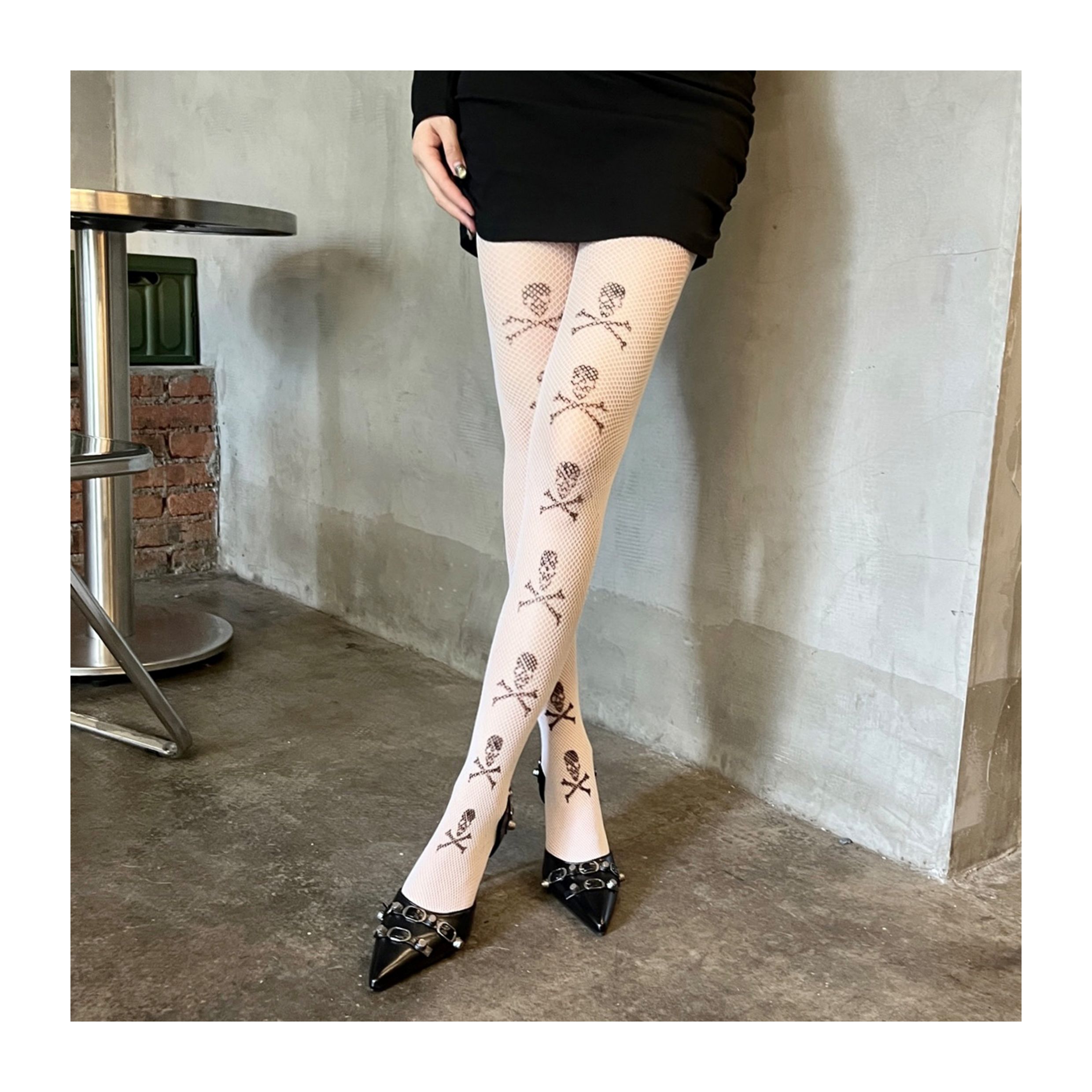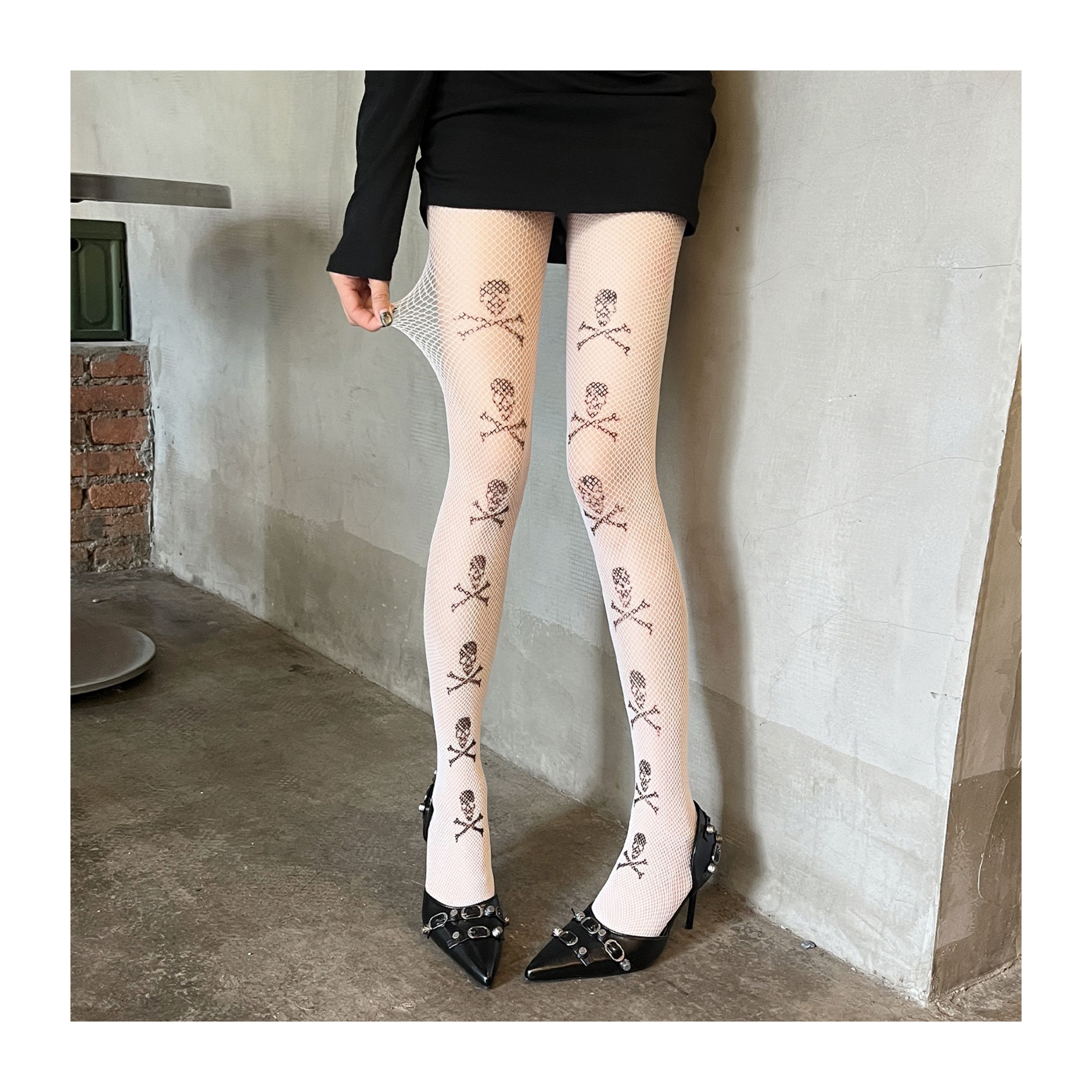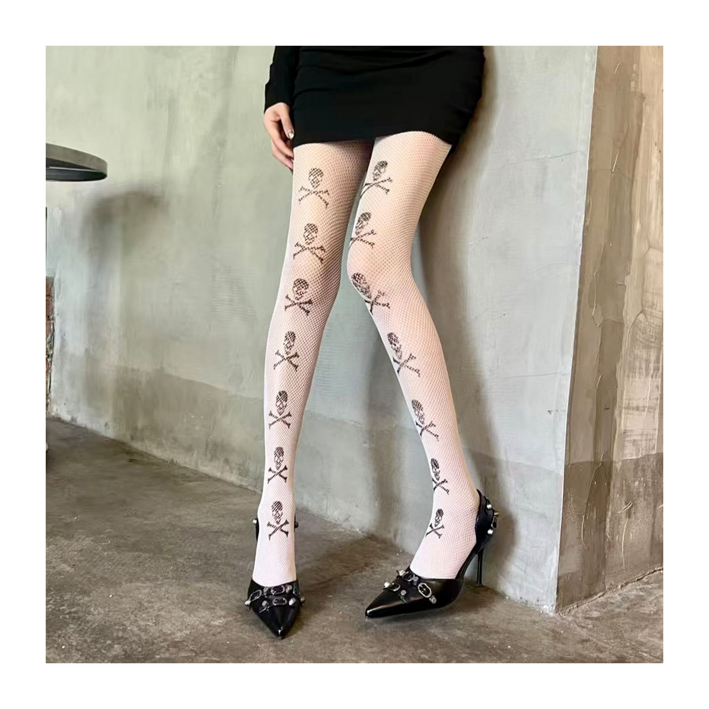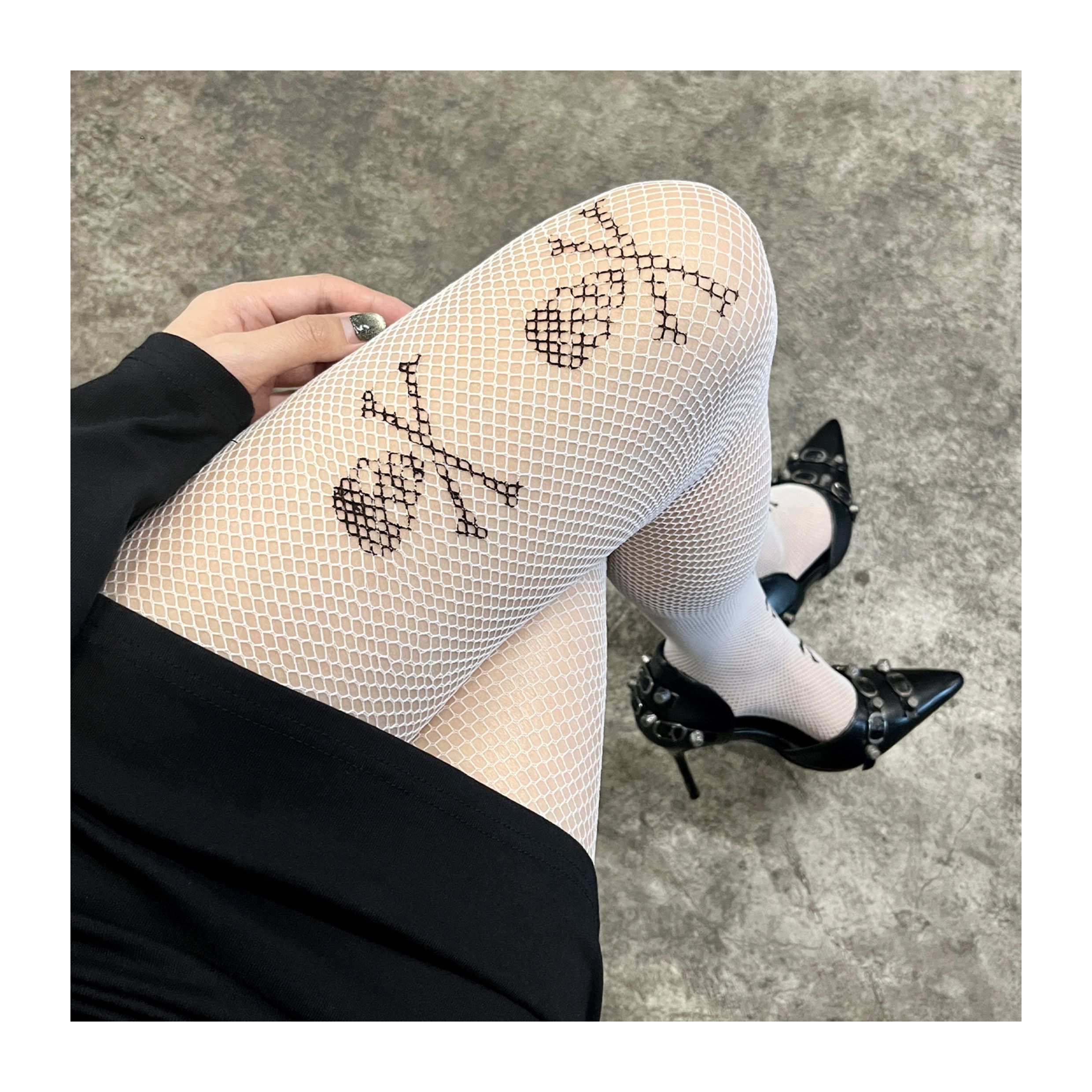 Skeleton print ultra-thin punk pantyhose