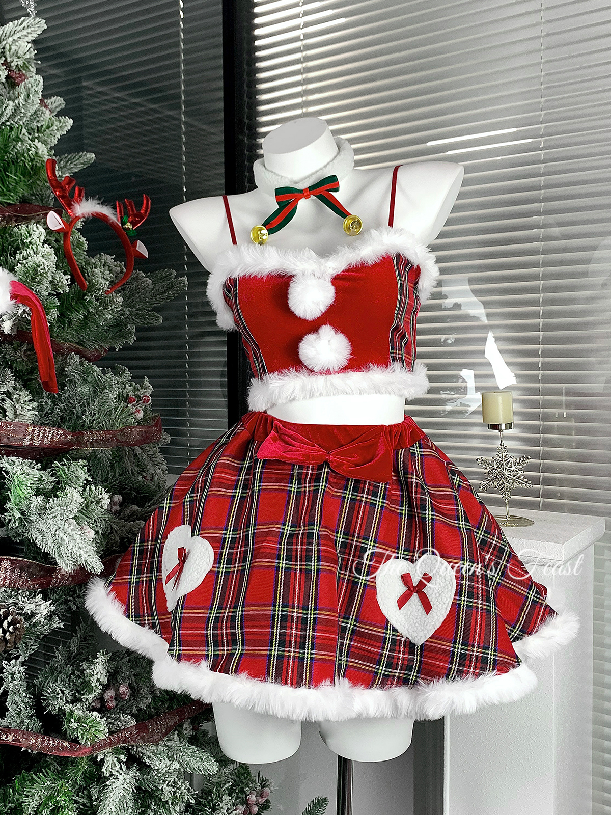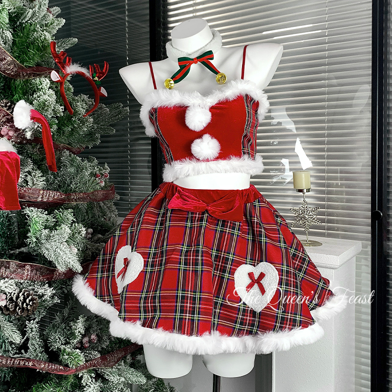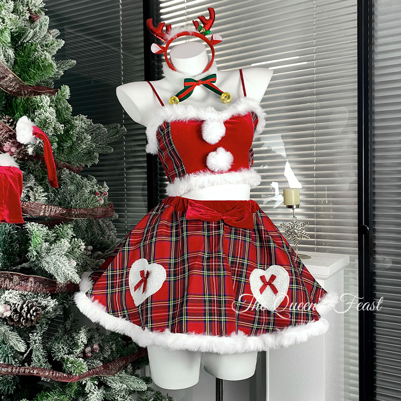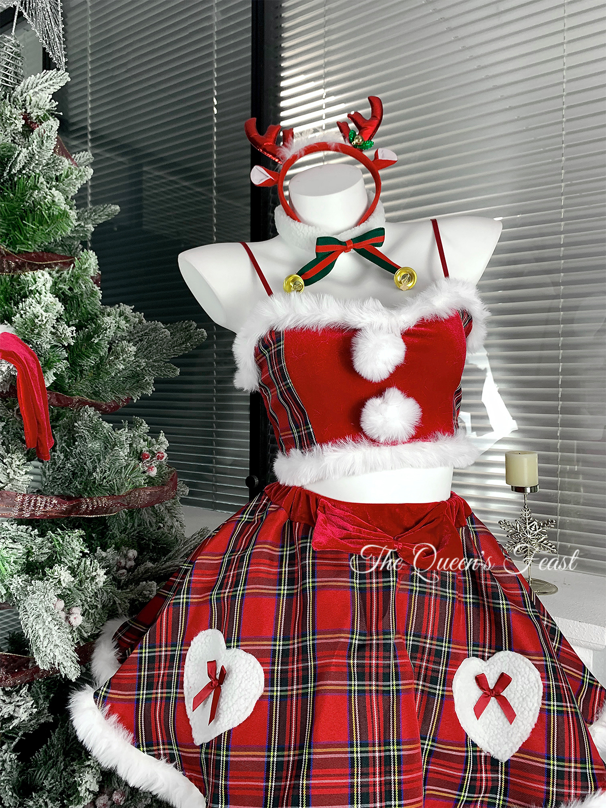 Snow Mountain Deer | Christmas Dress Checkered Velvet Set