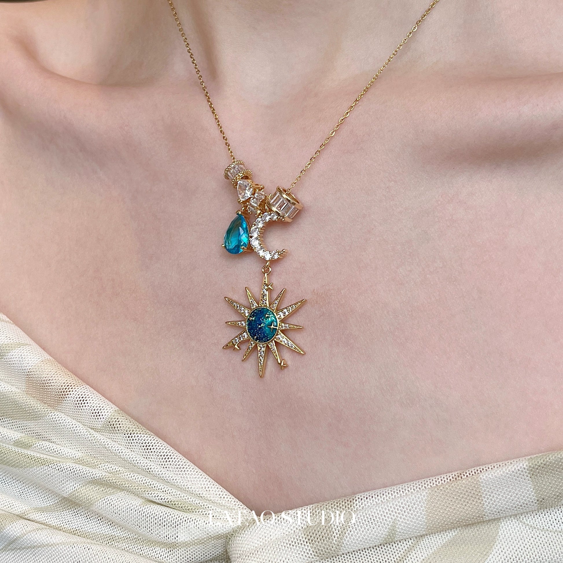 Sora Blue Sun Moon Zircon Necklace