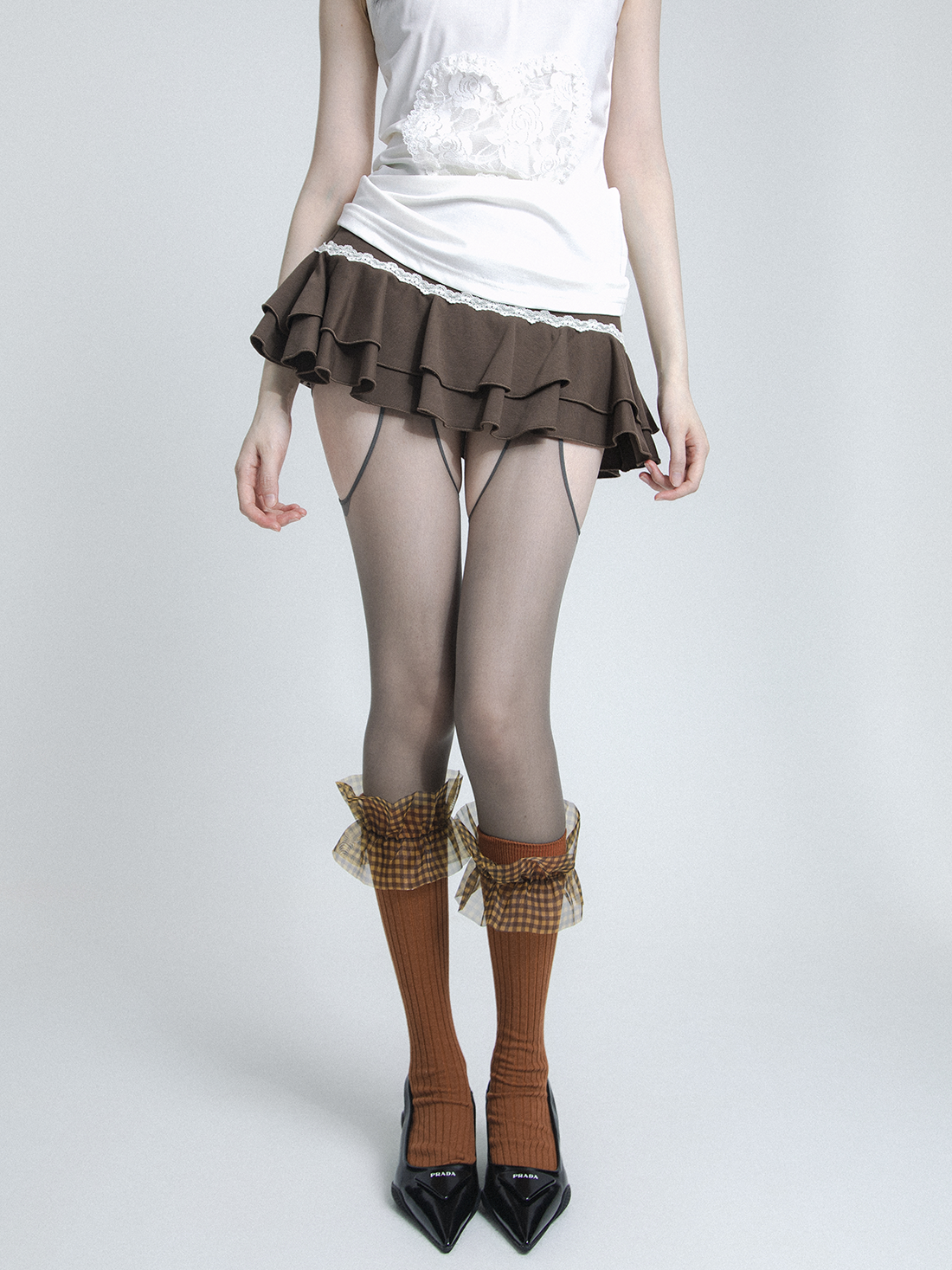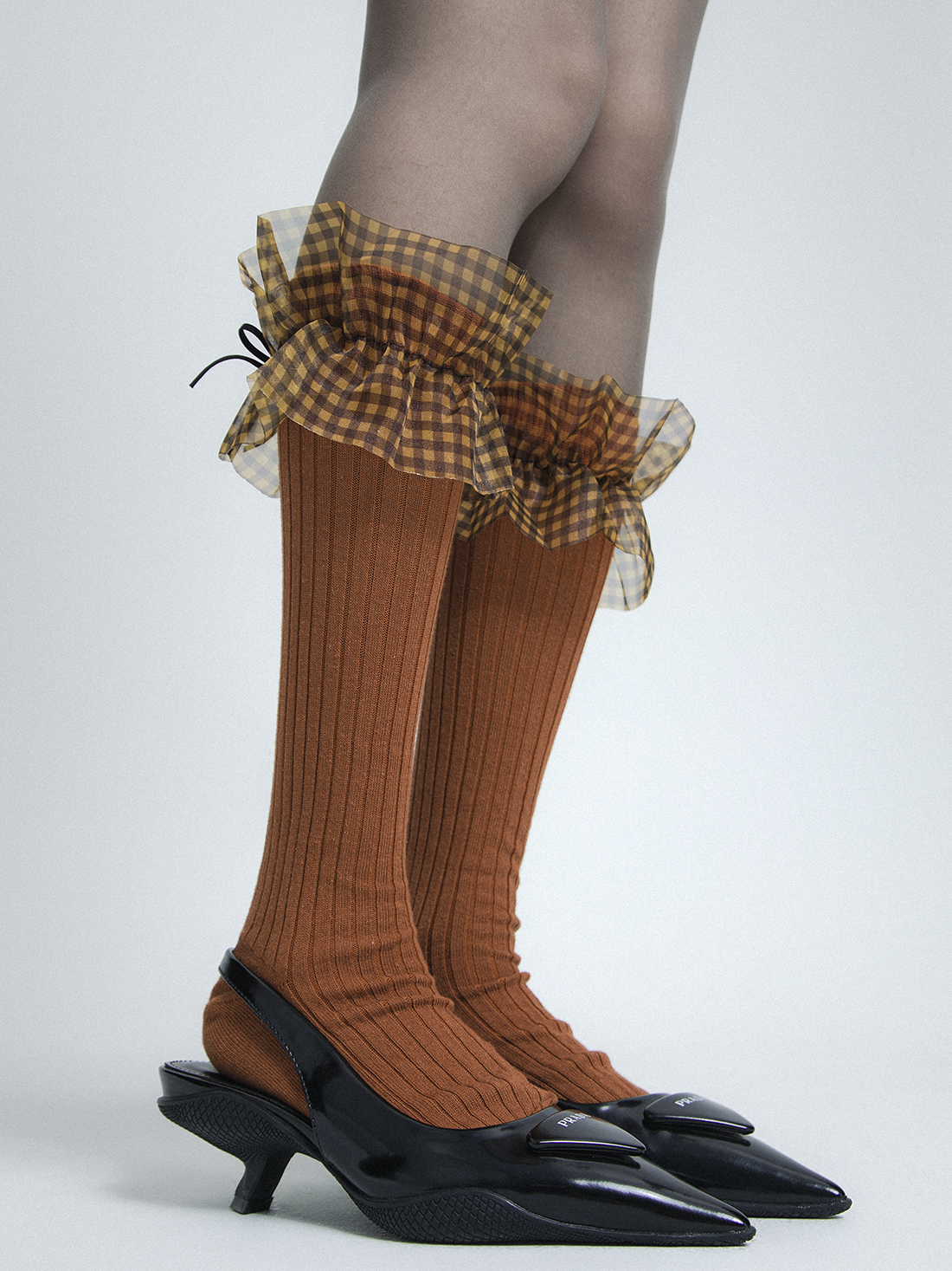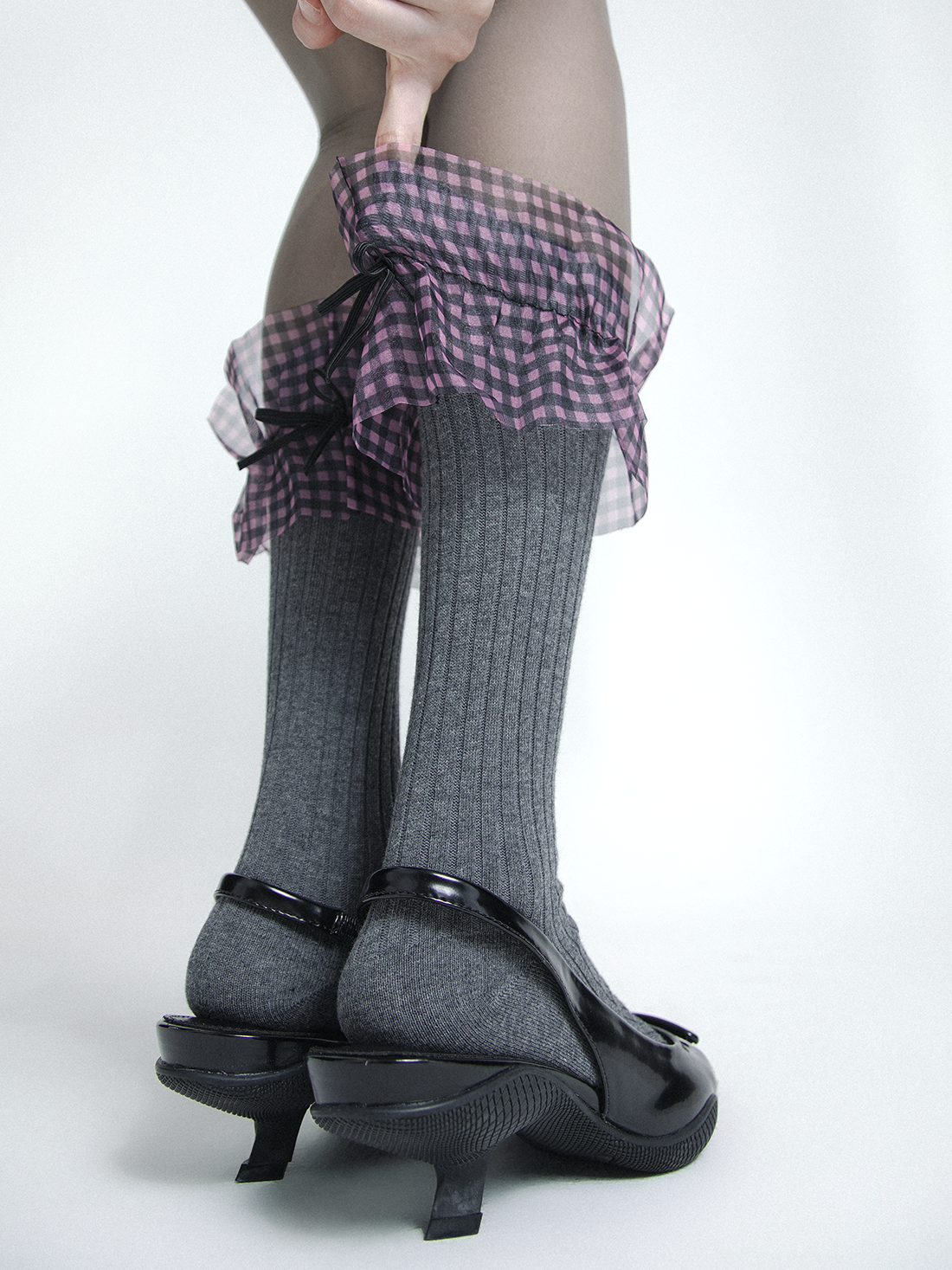 plaid mesh lace bow socks