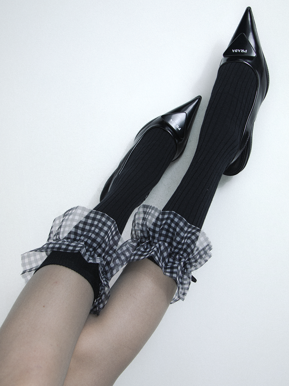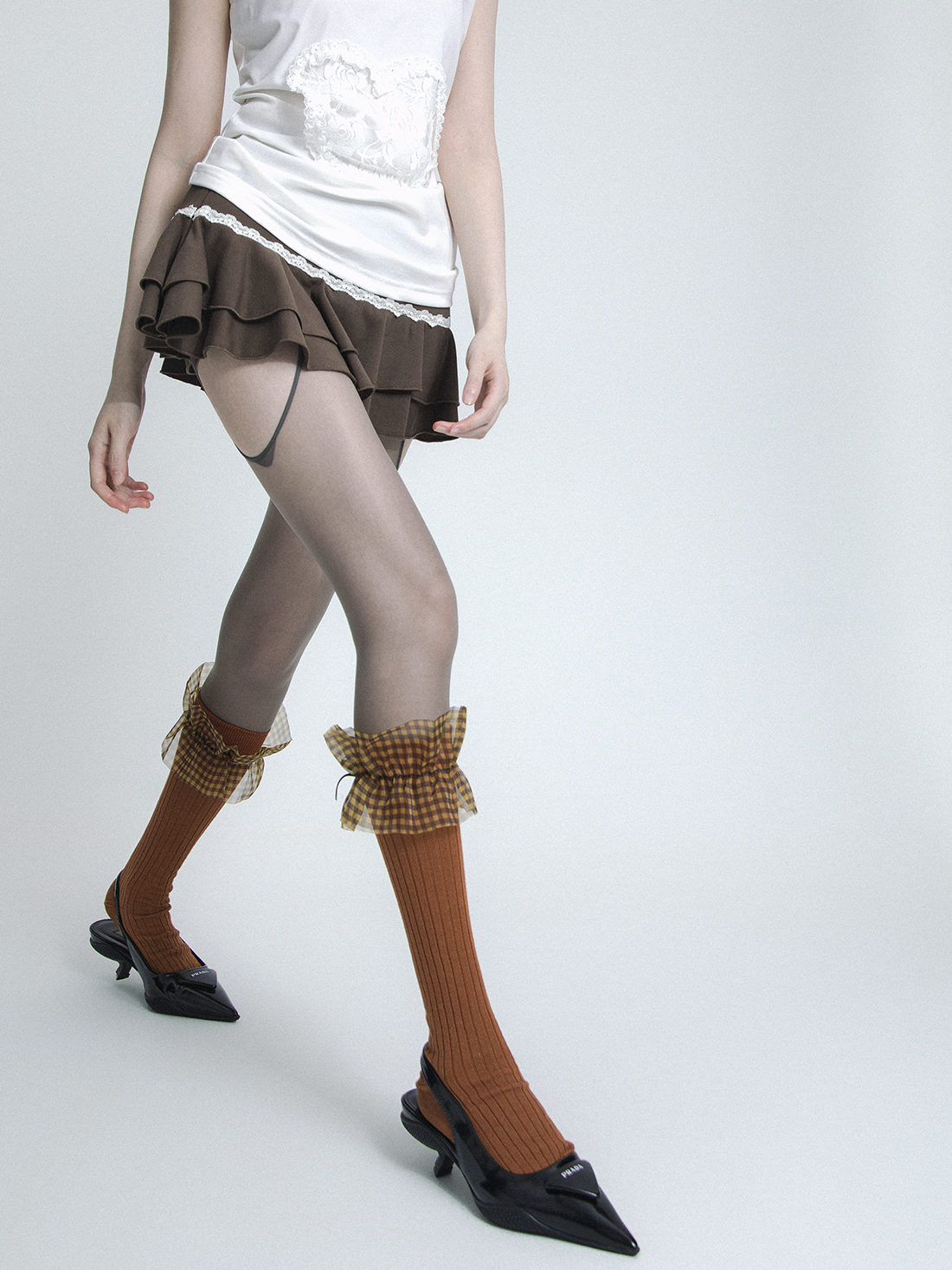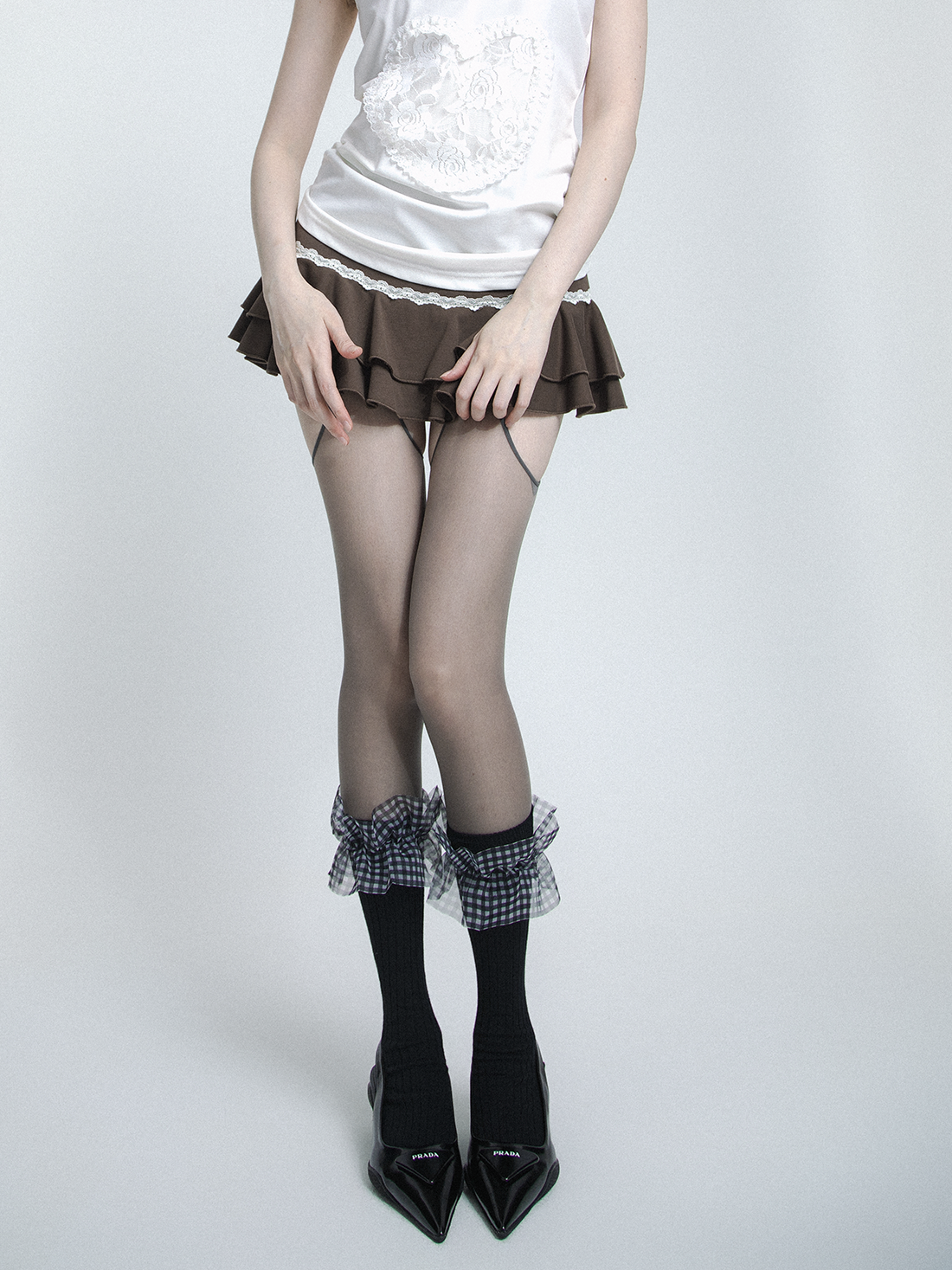 plaid mesh lace bow socks