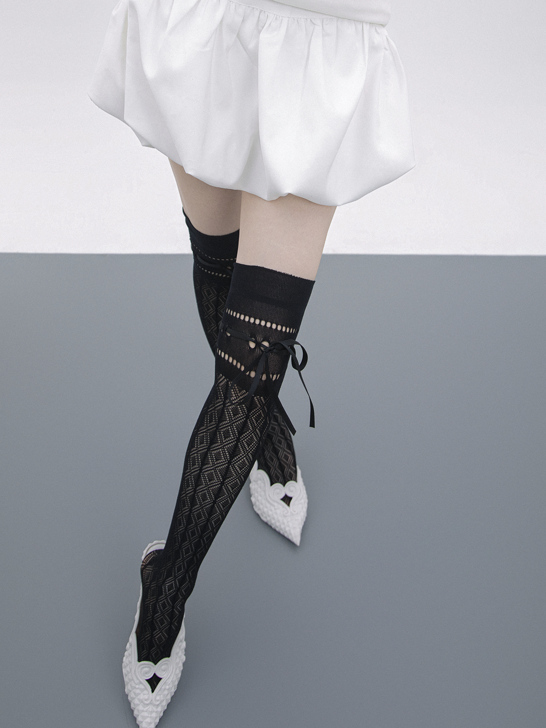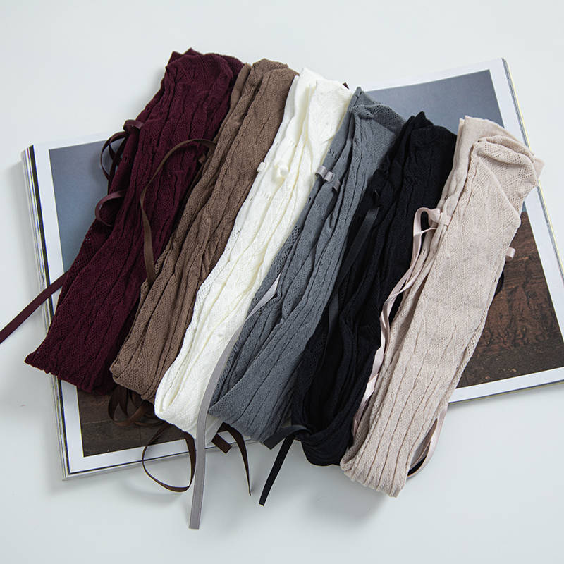 Lace Hollow Bow Ribbon Stockings