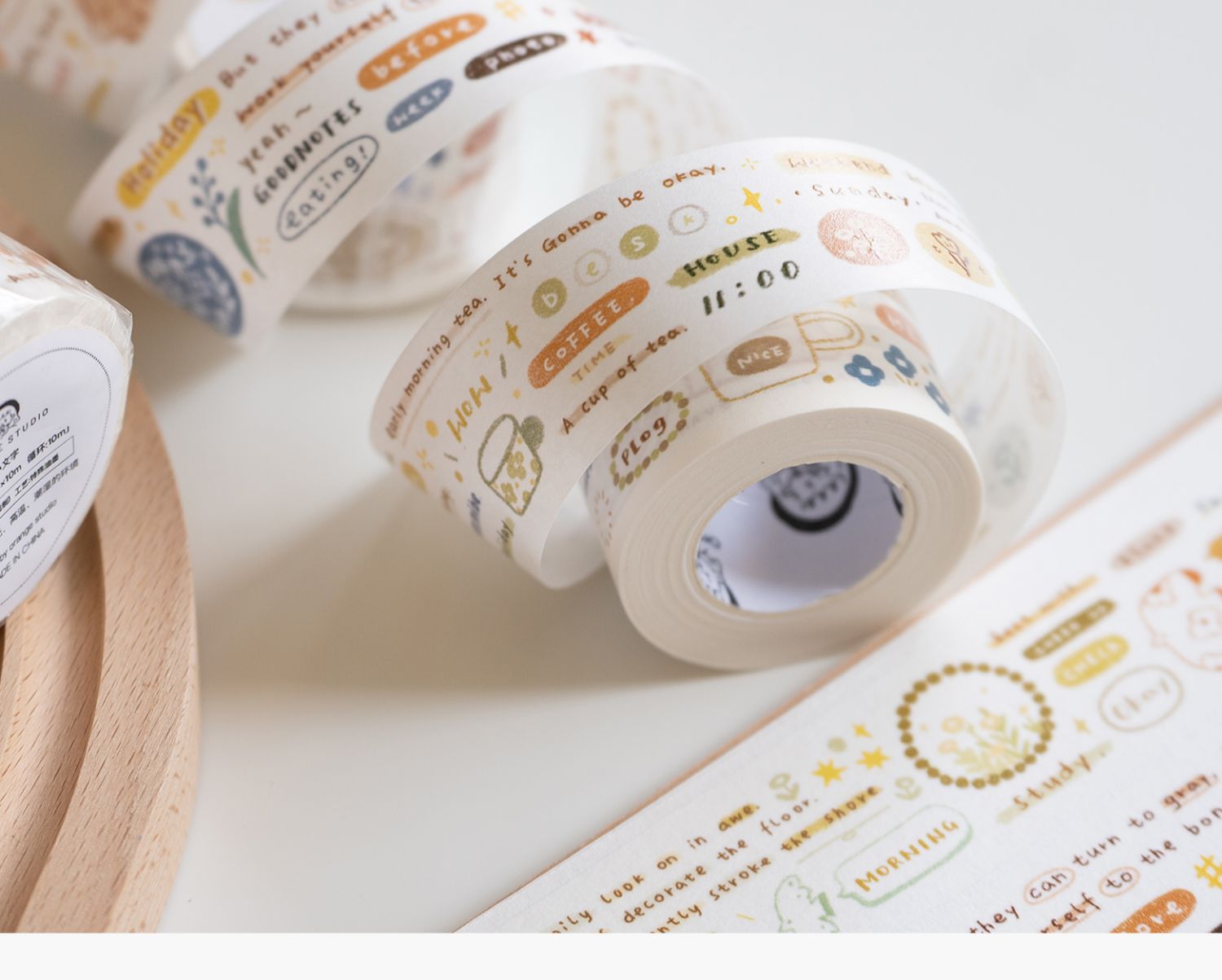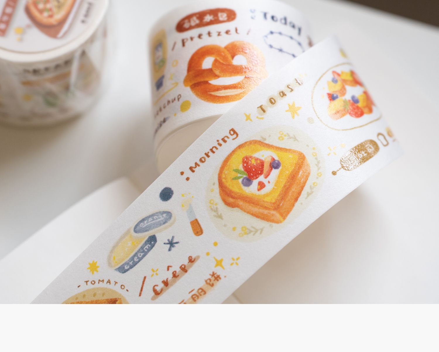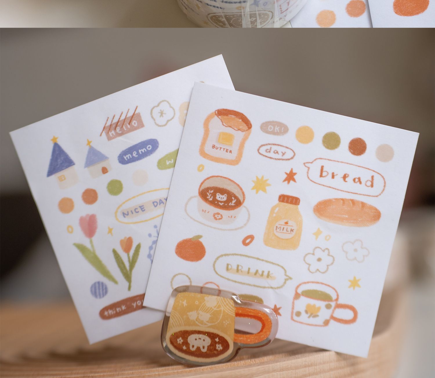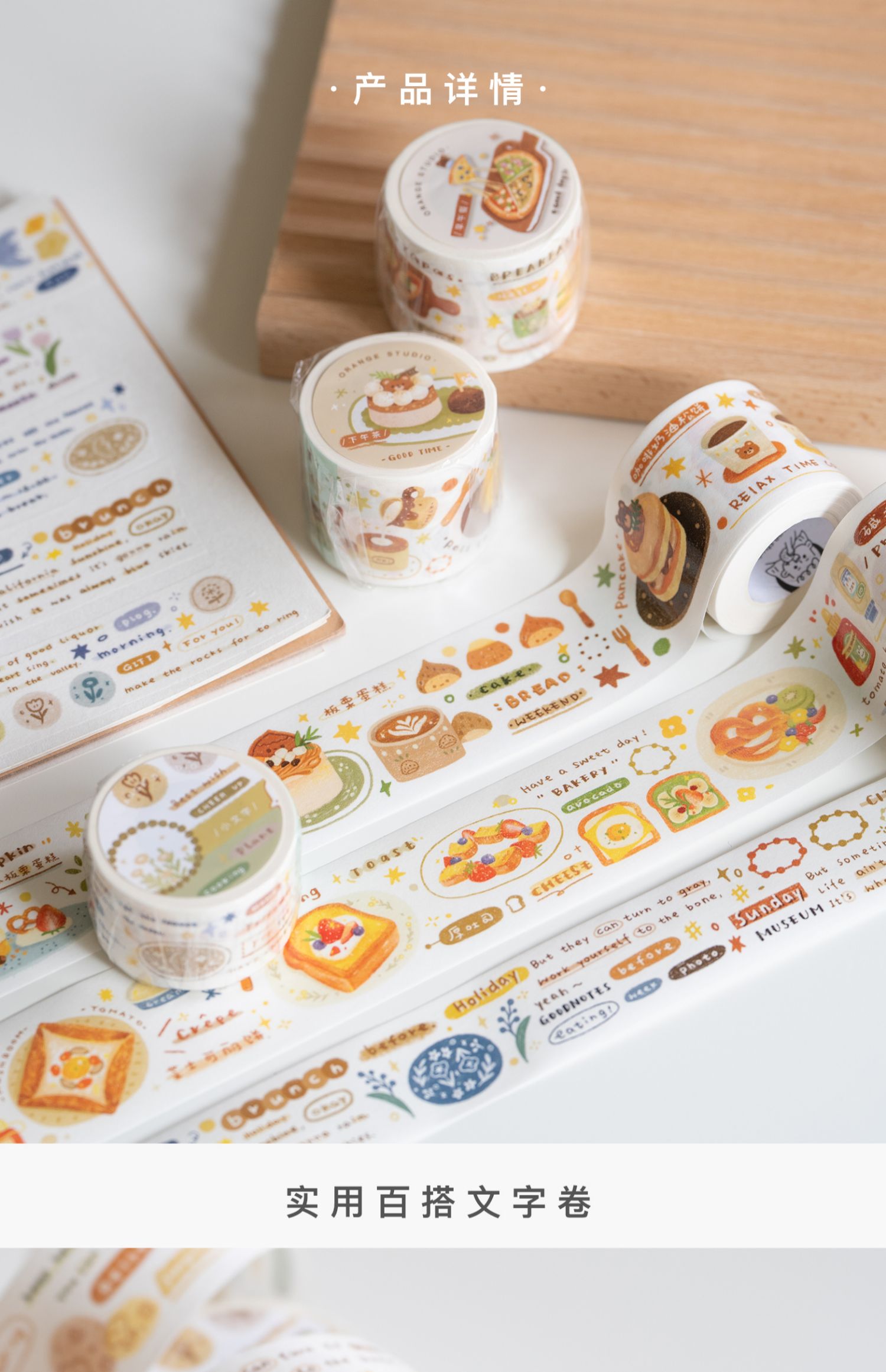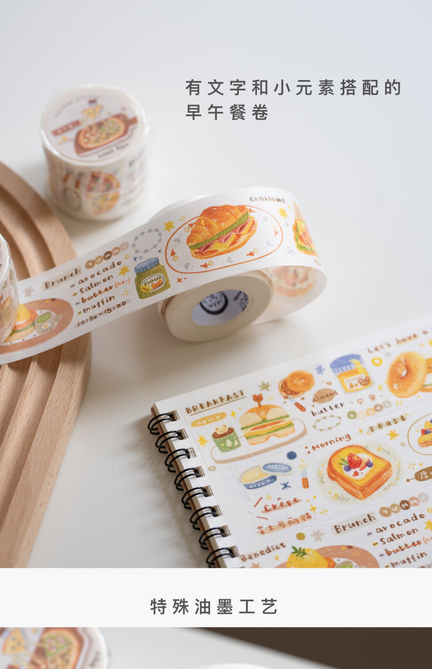 Text breakfast, afternoon tea, paper tape, ink stickers