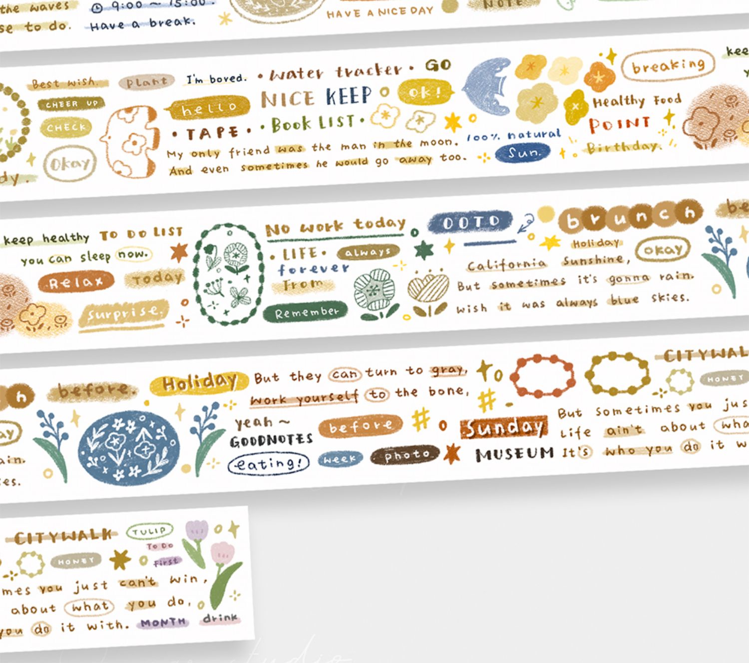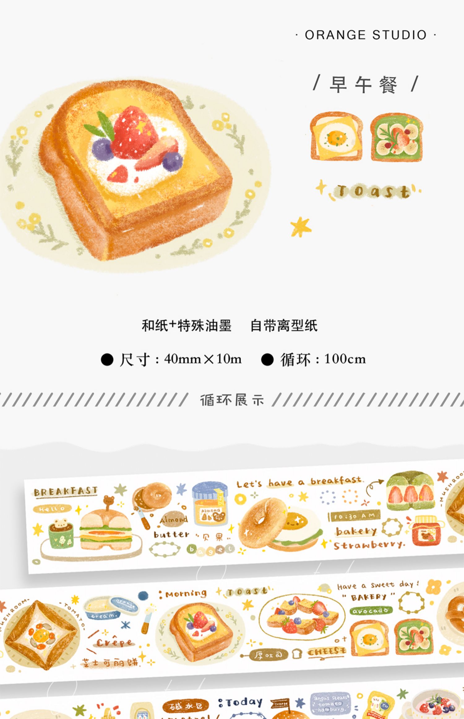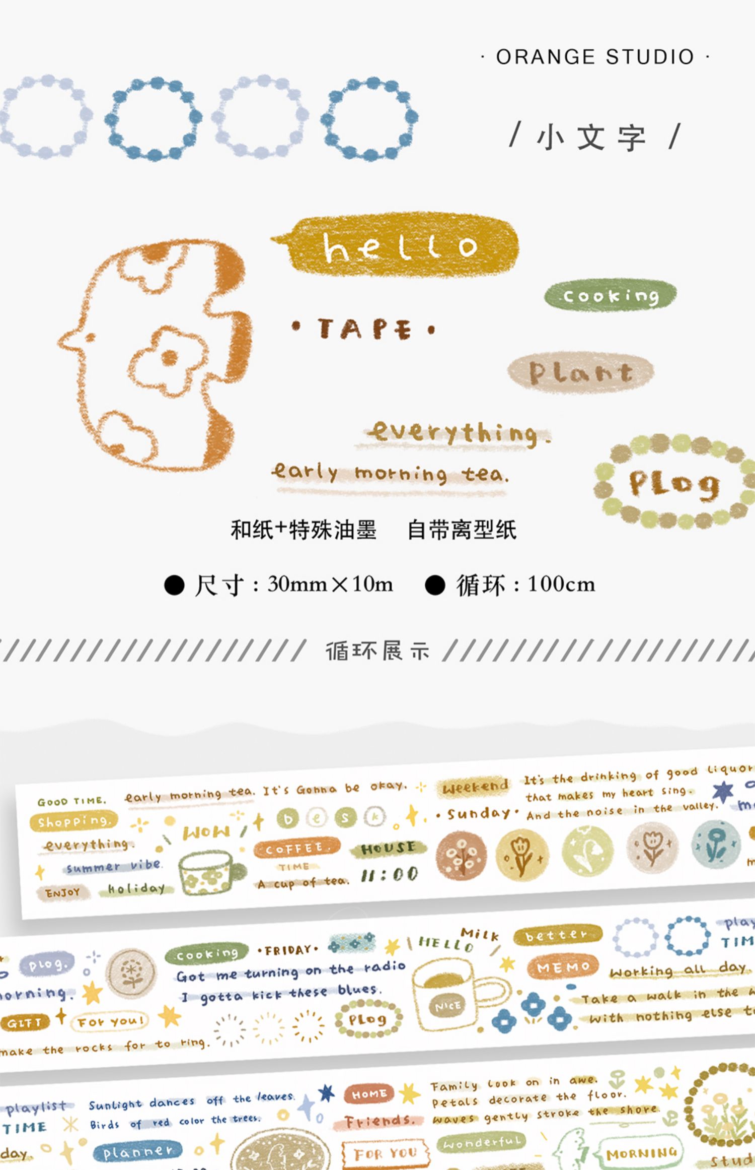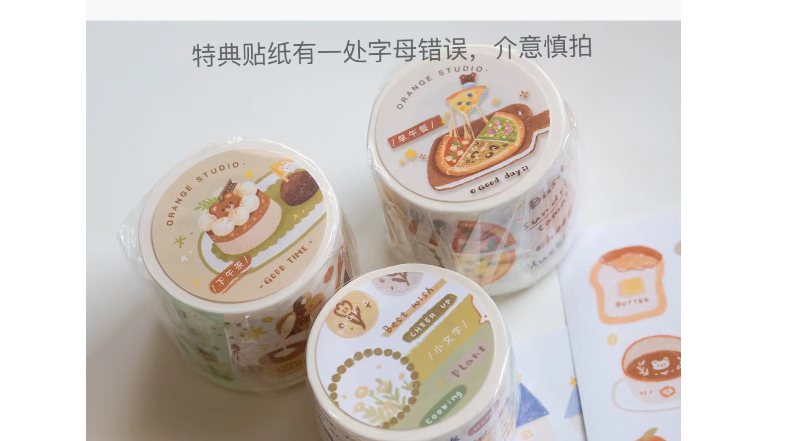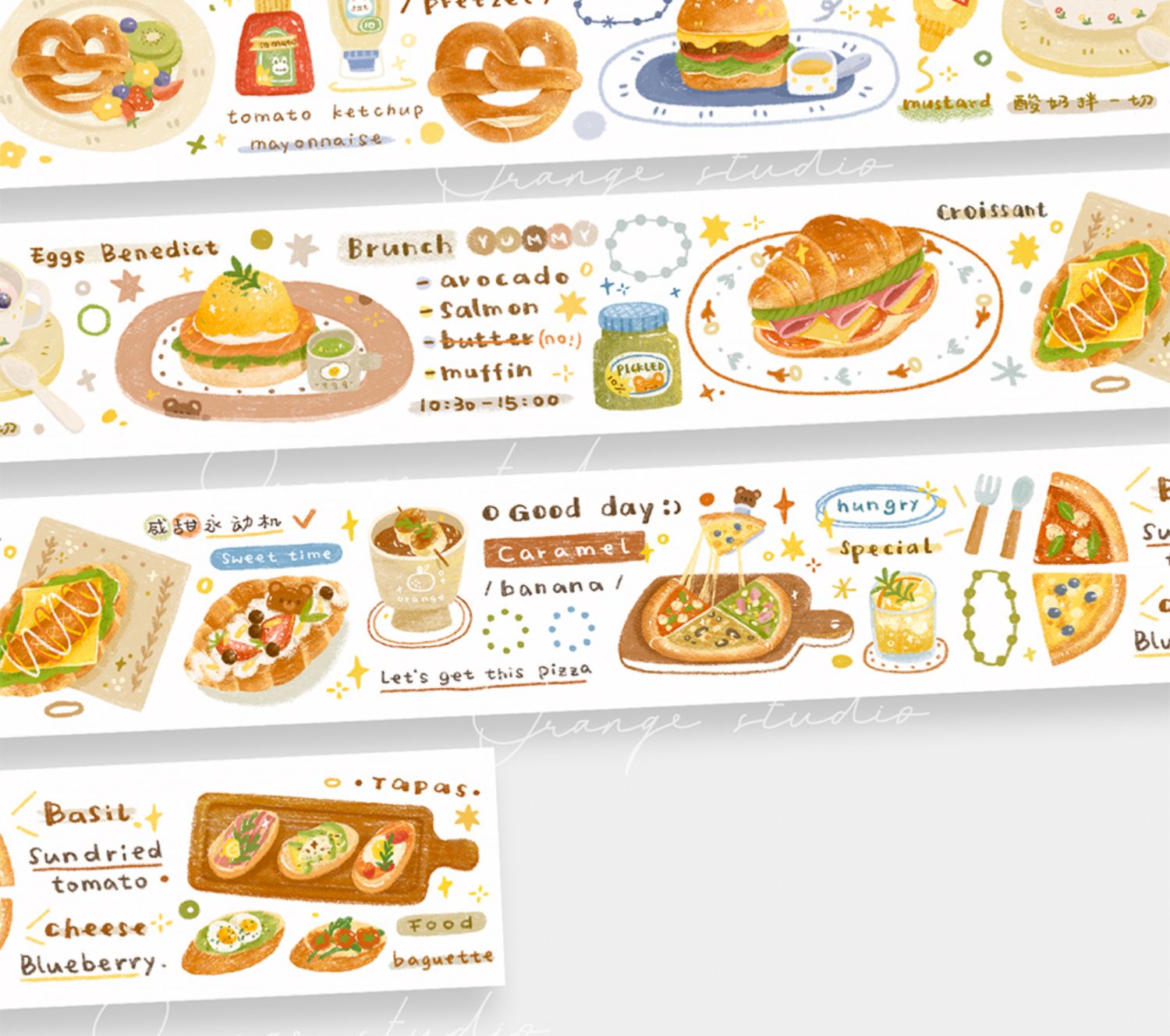Text breakfast, afternoon tea, paper tape, ink stickers