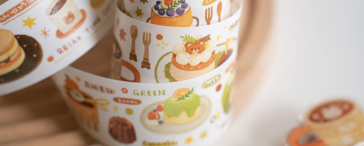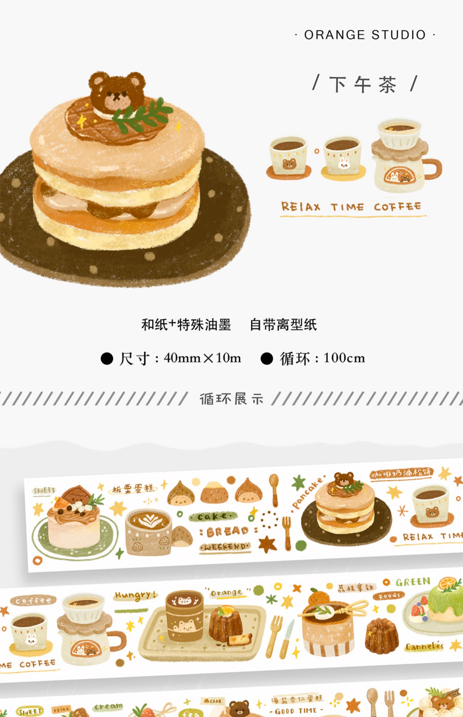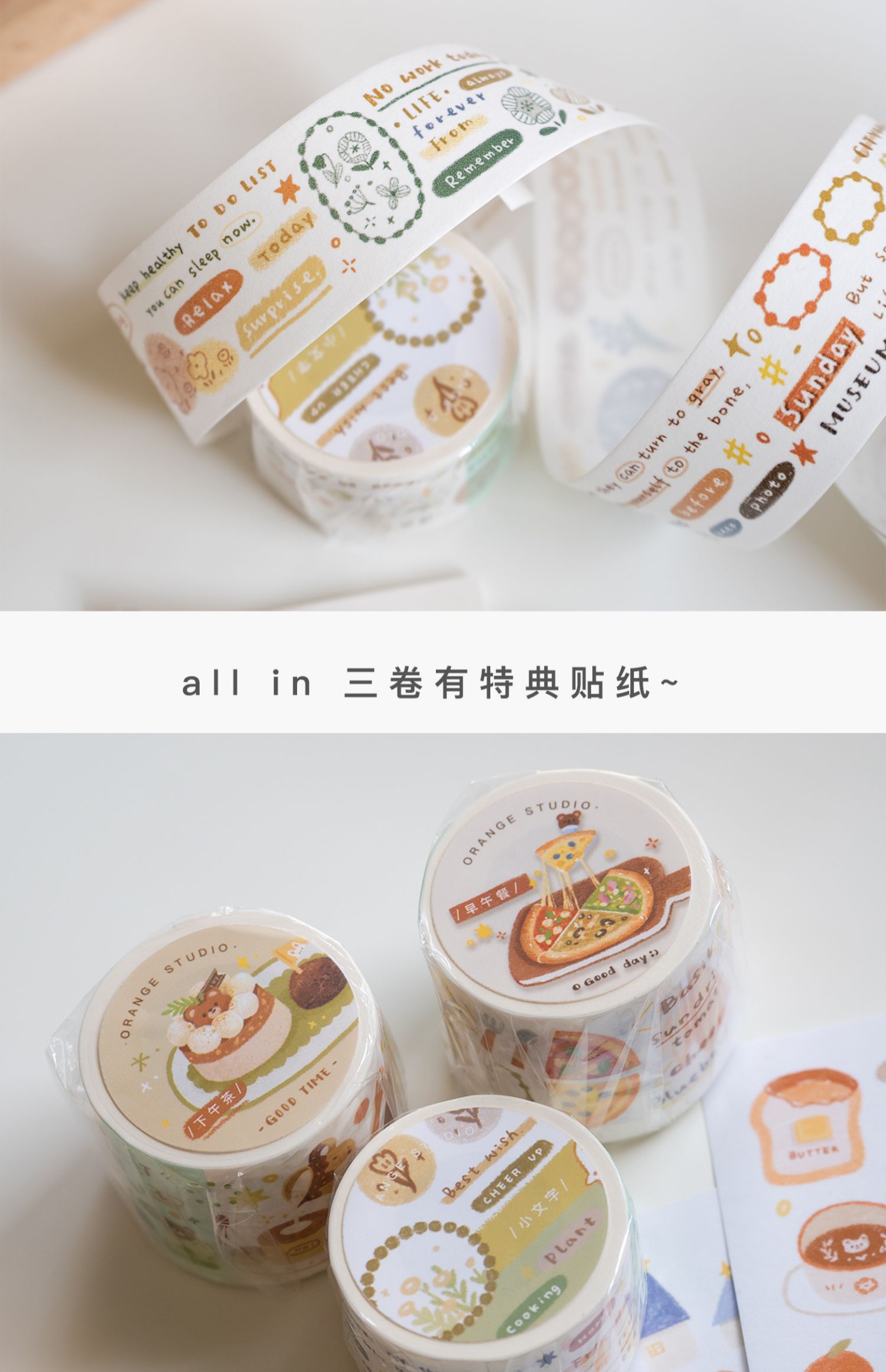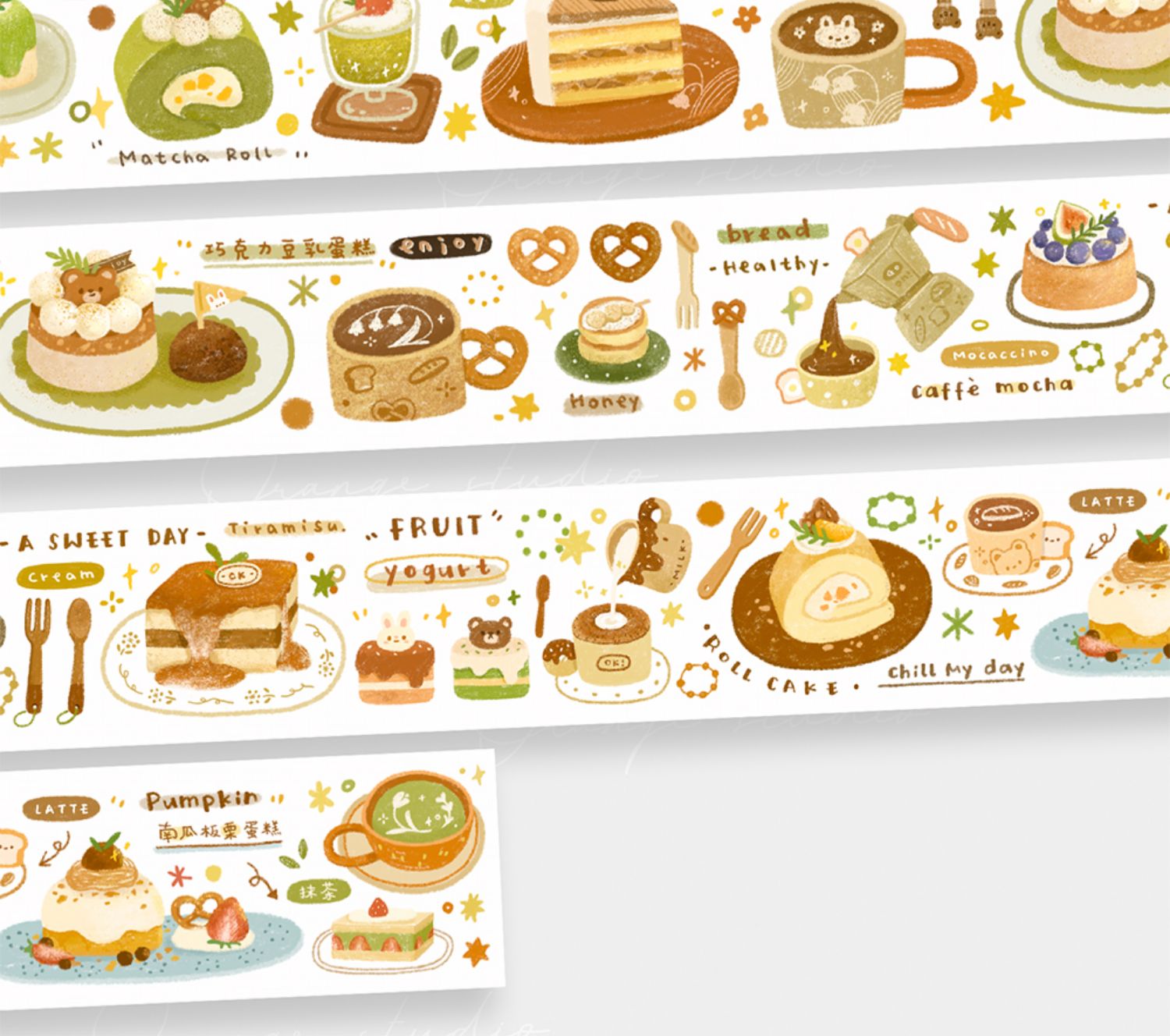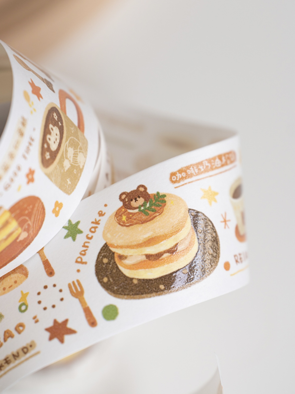 Text breakfast, afternoon tea, paper tape, ink stickers