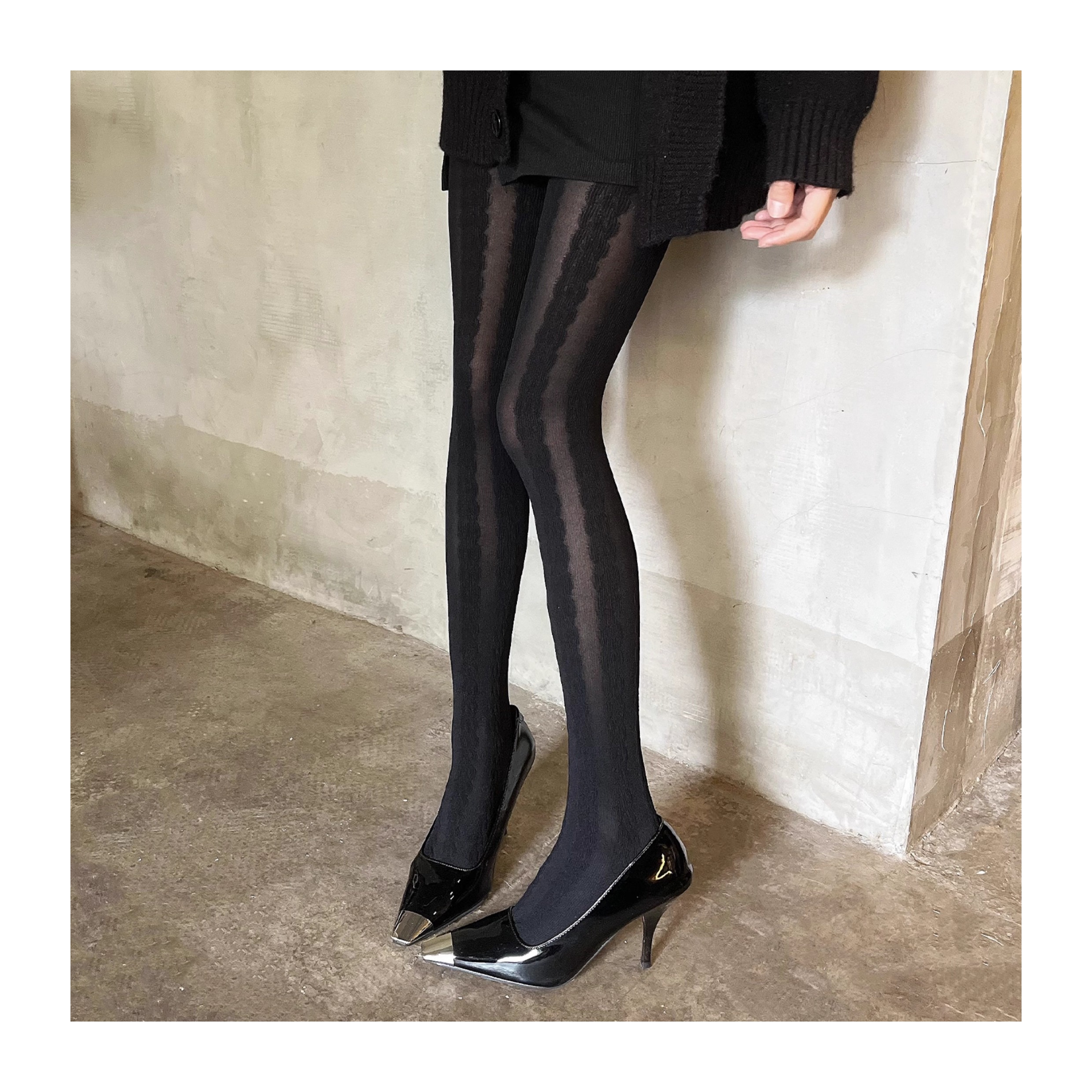 Thin pantyhose with vertical stripes