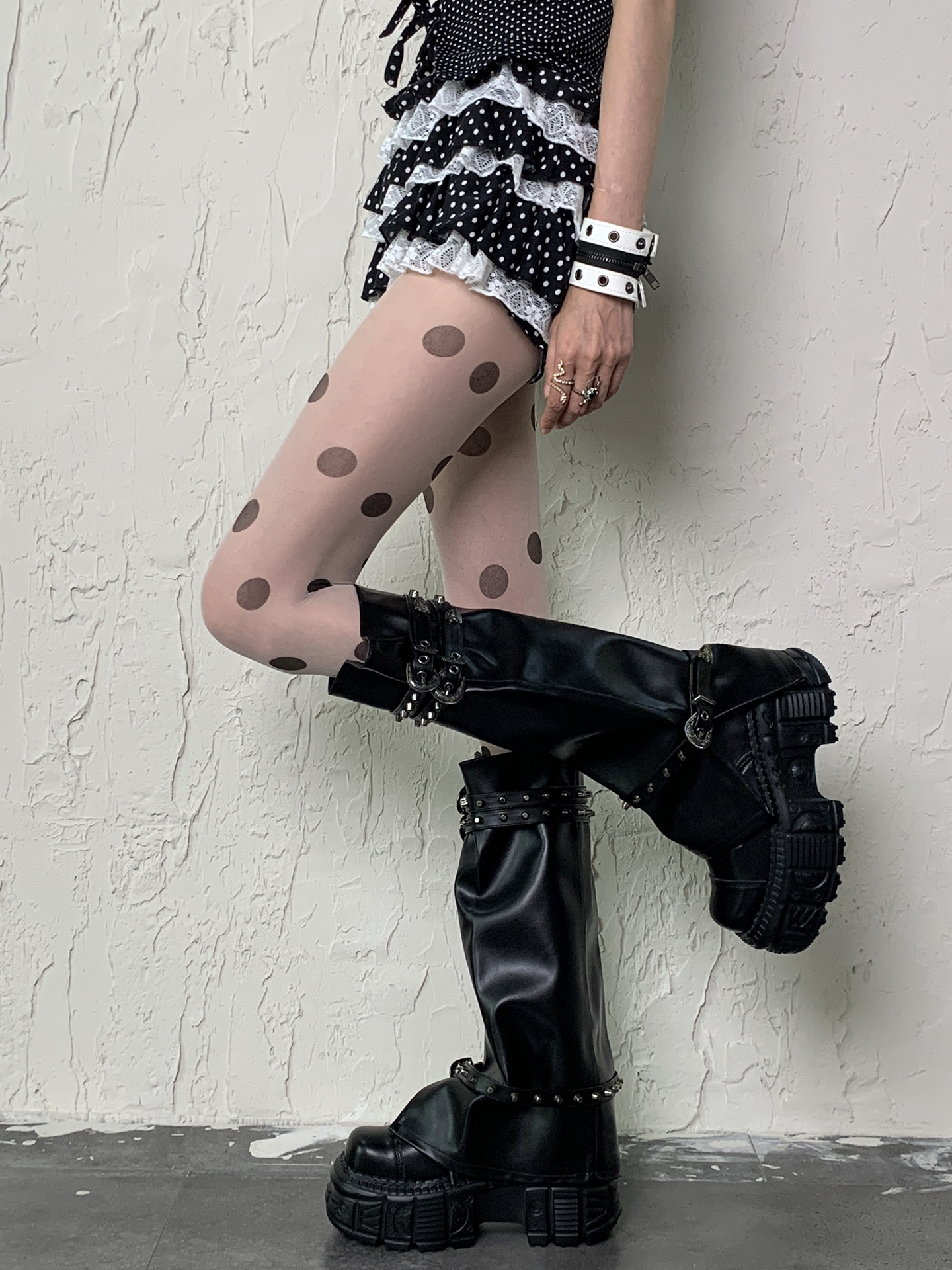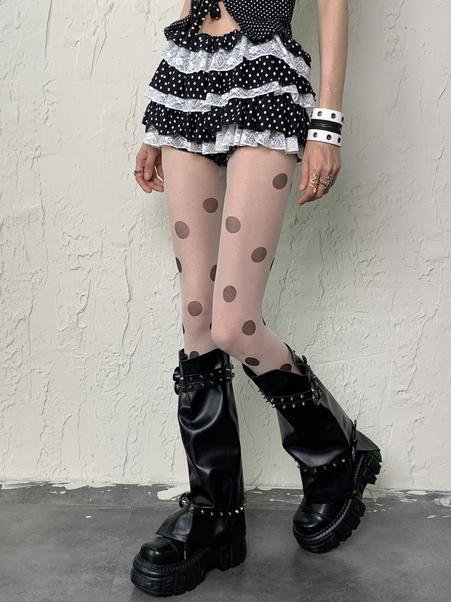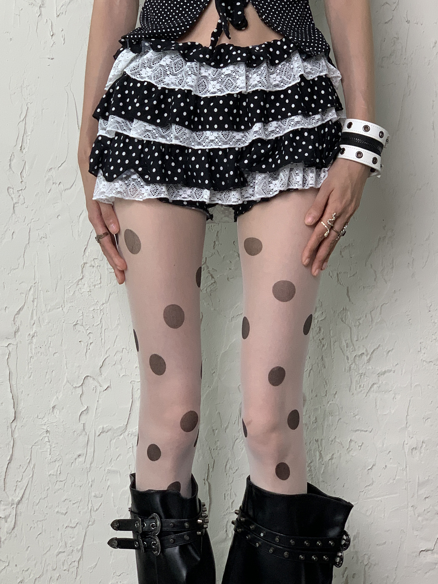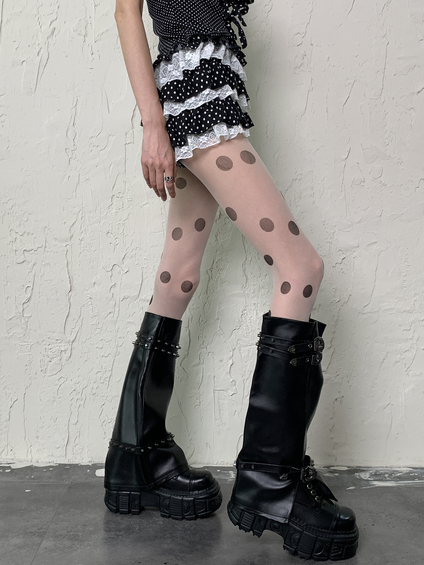 White background large polka dot stockings