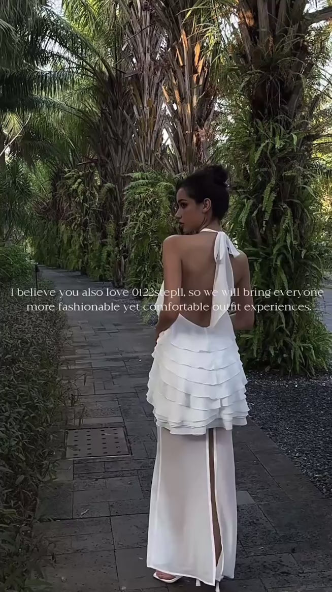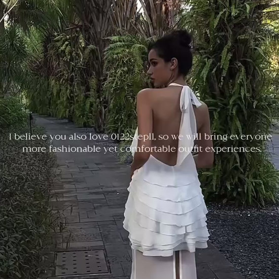 • Multiple layers of ruffled details crafted with elaborate workmanship overlay the body of the top.