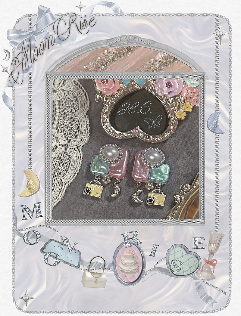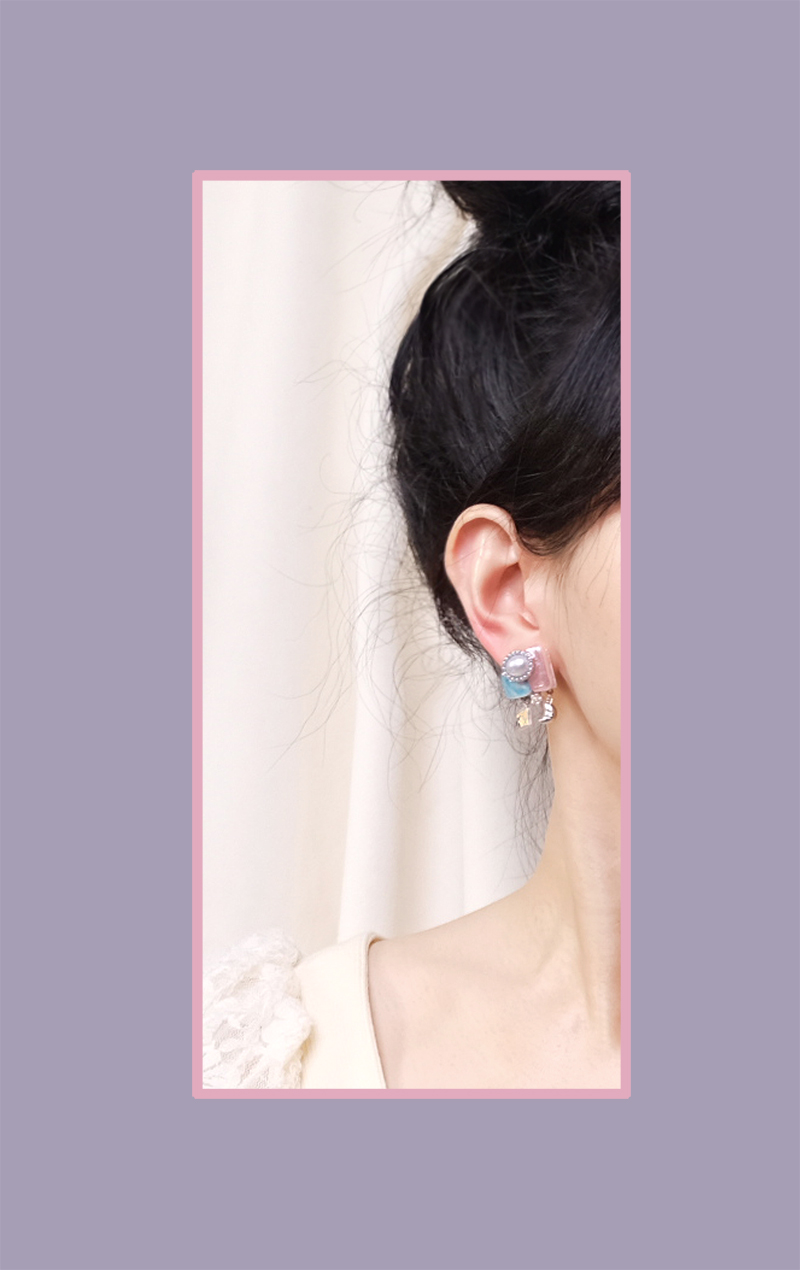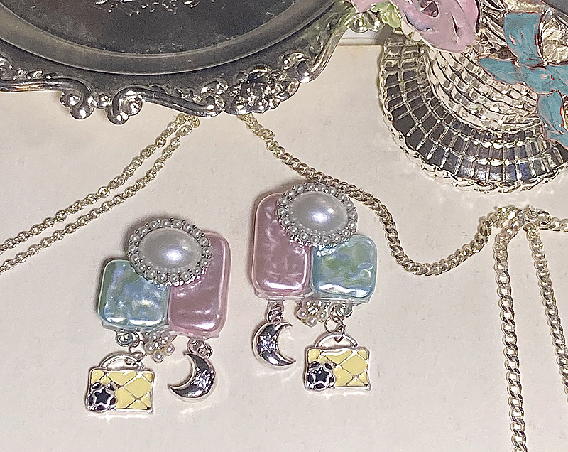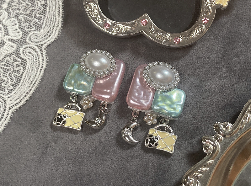 *Yuesheng Department Store *~Moon and handbag~Water ripple sparkling pearl luster geometric beauty earrings