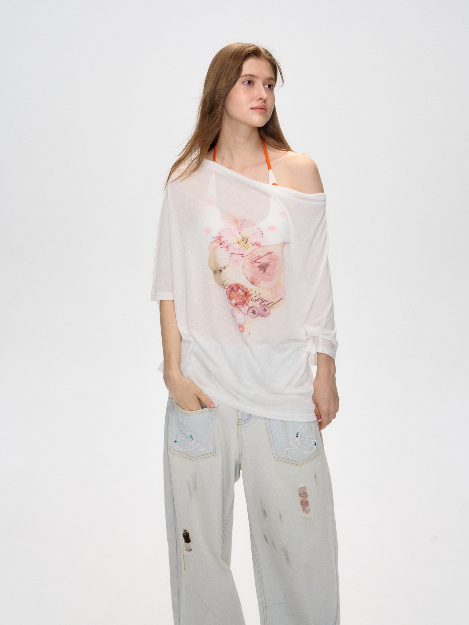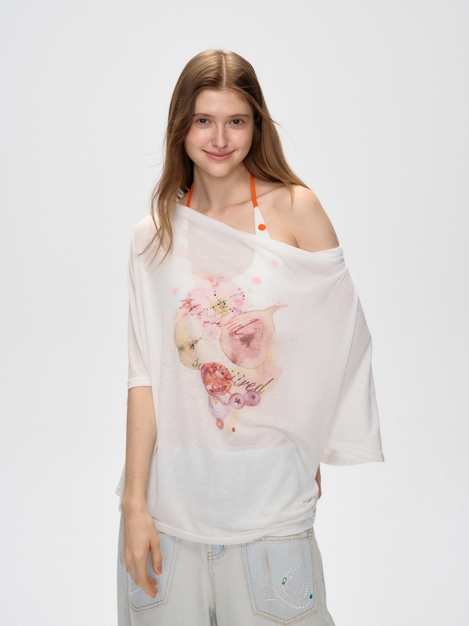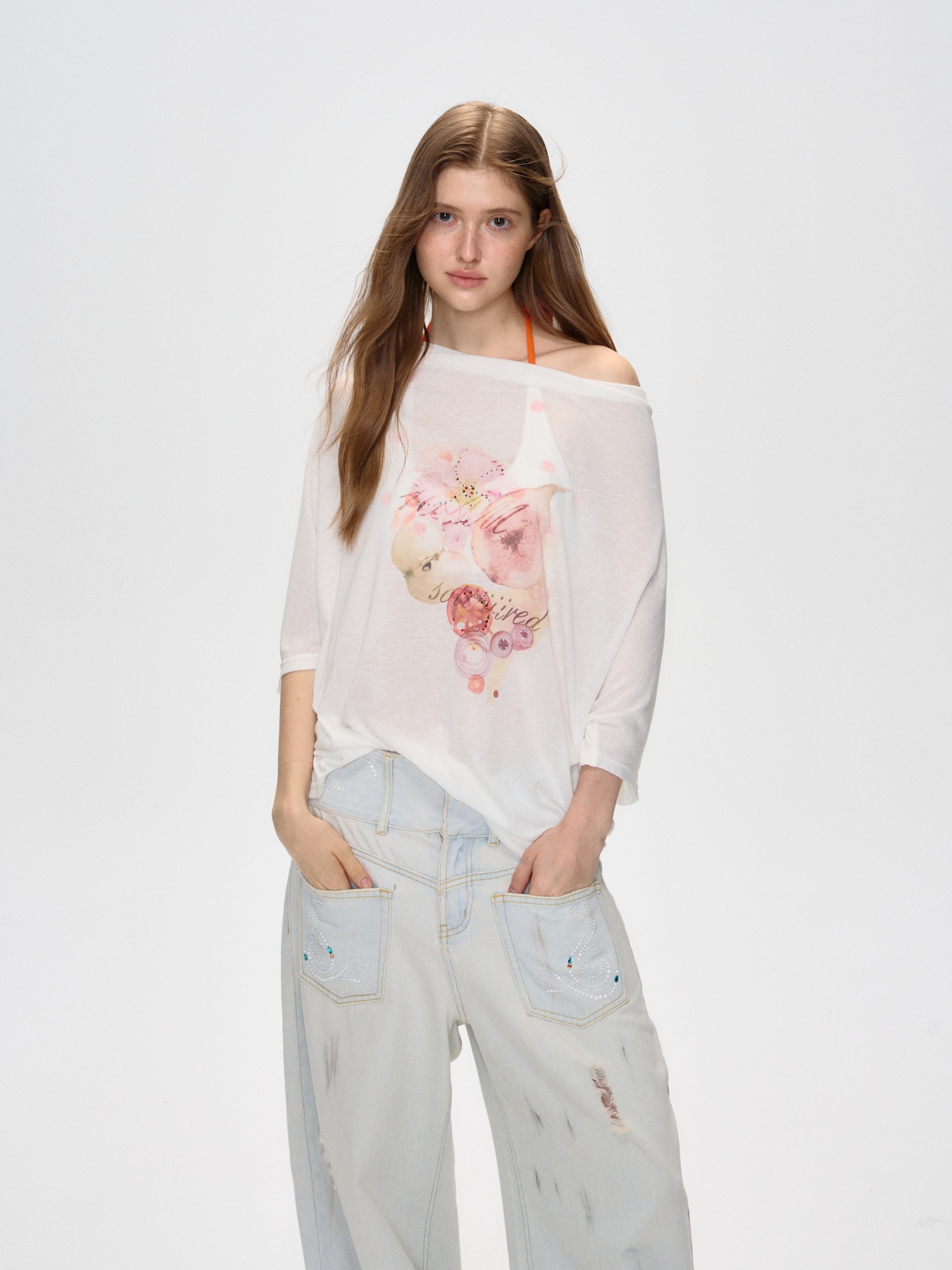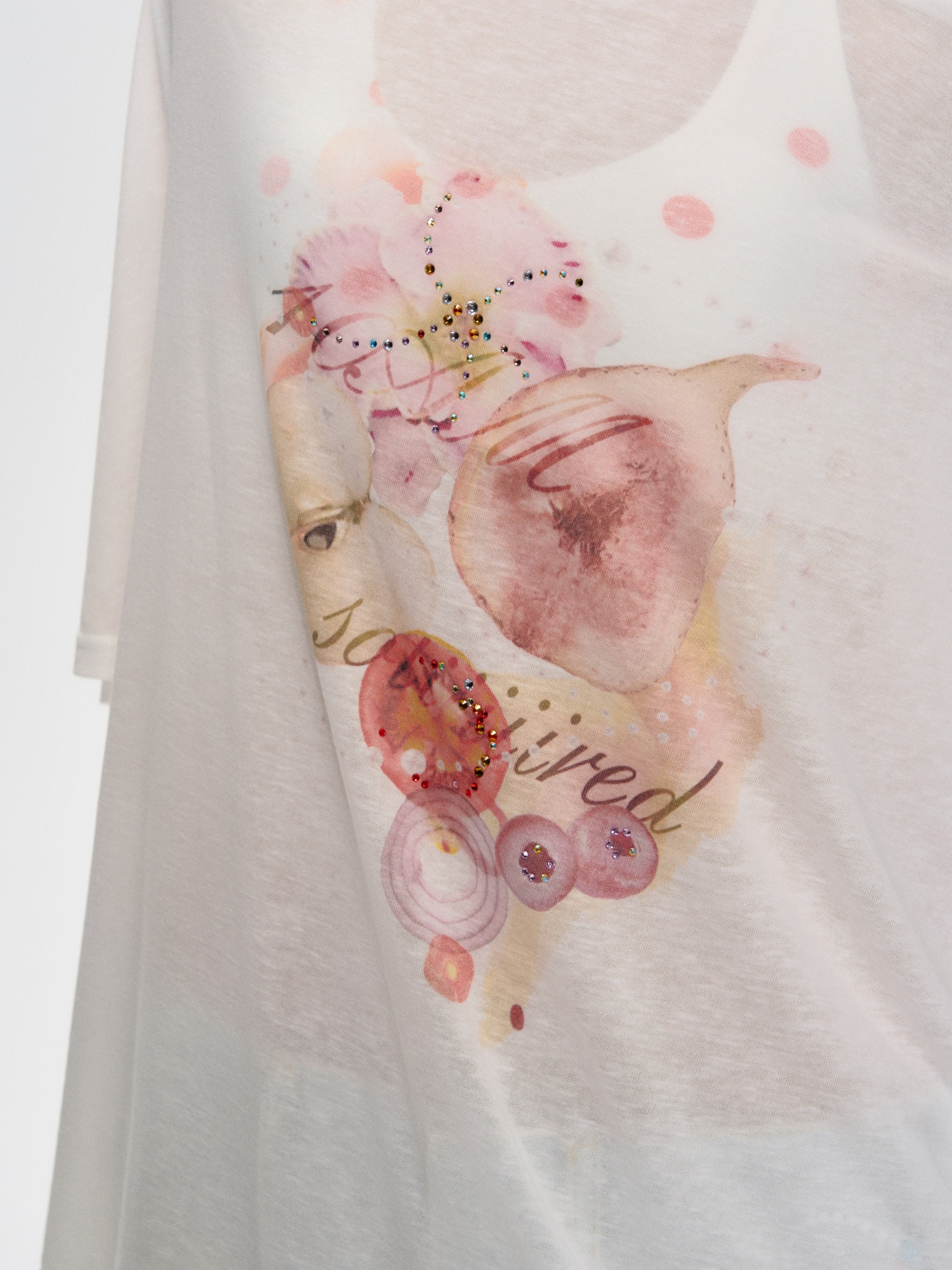 Lyocell Tencel Printed Rhinestone Top - Elbow Sleeve