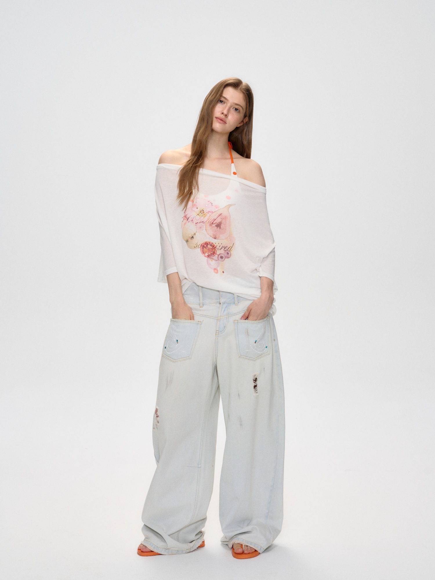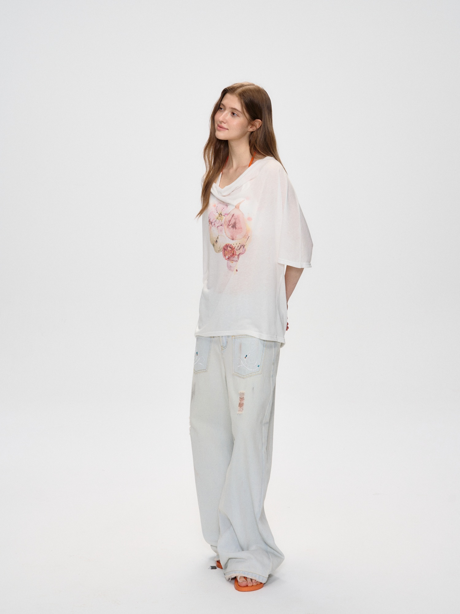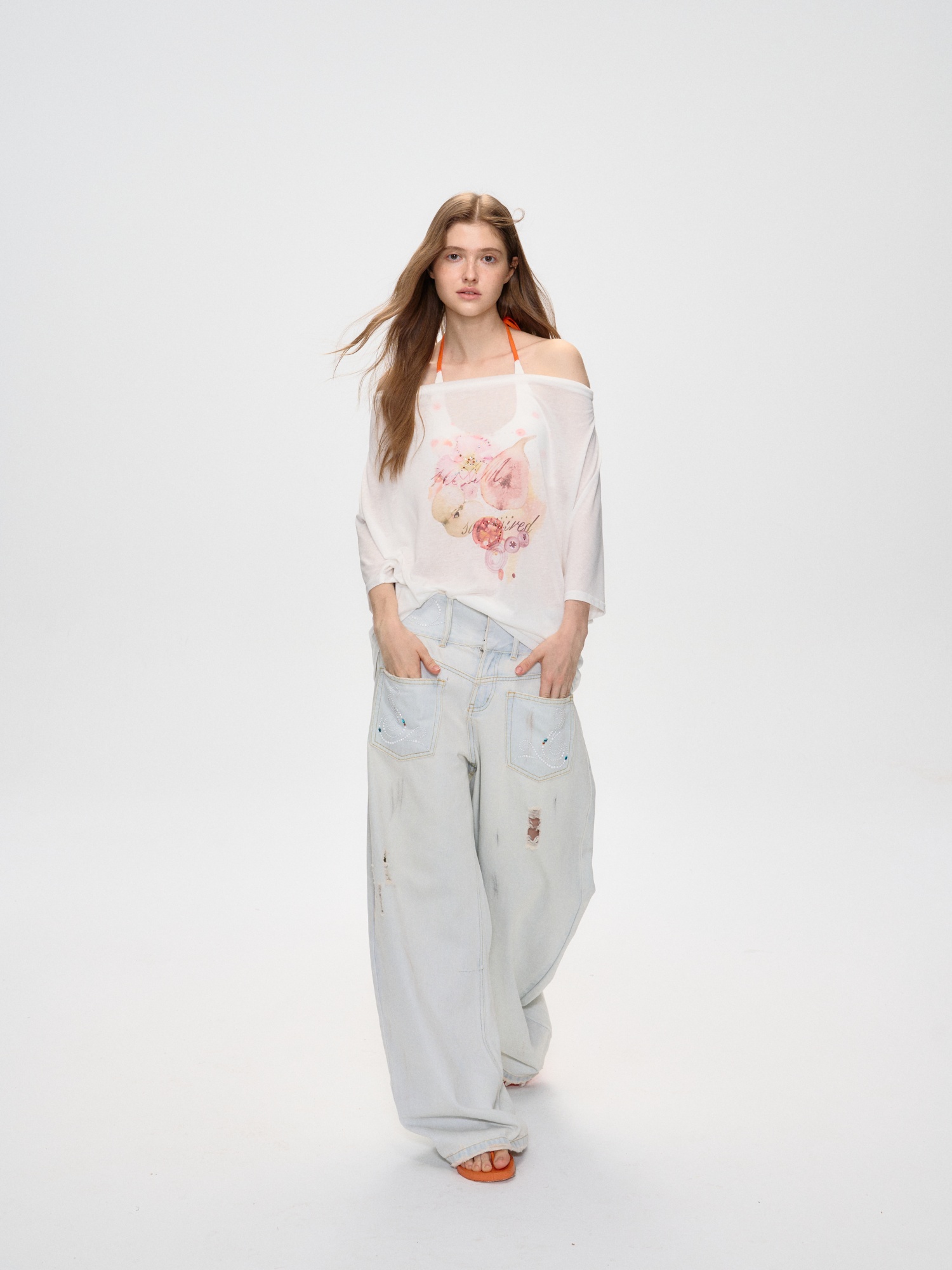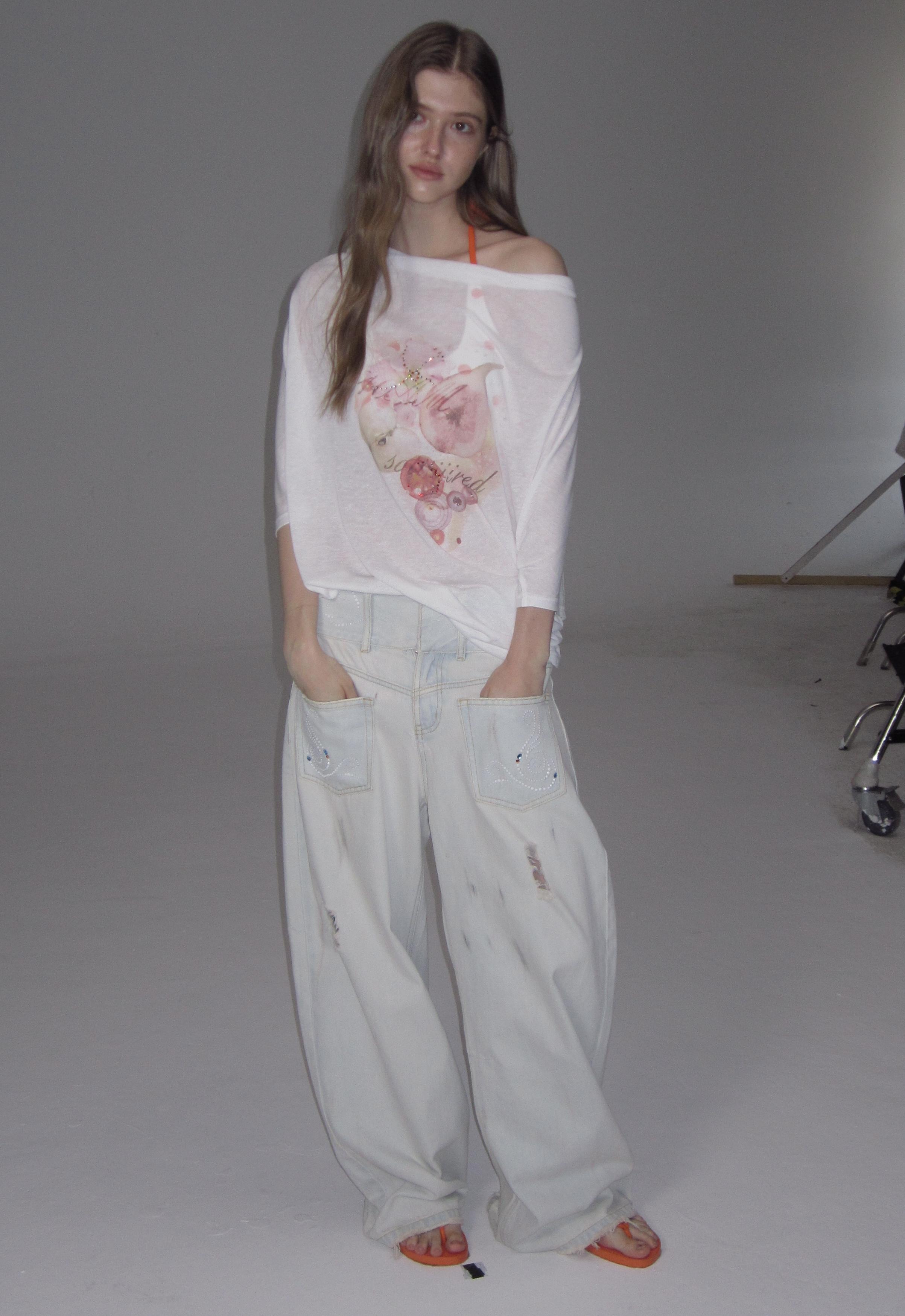 Lyocell Tencel Printed Rhinestone Top - Elbow Sleeve