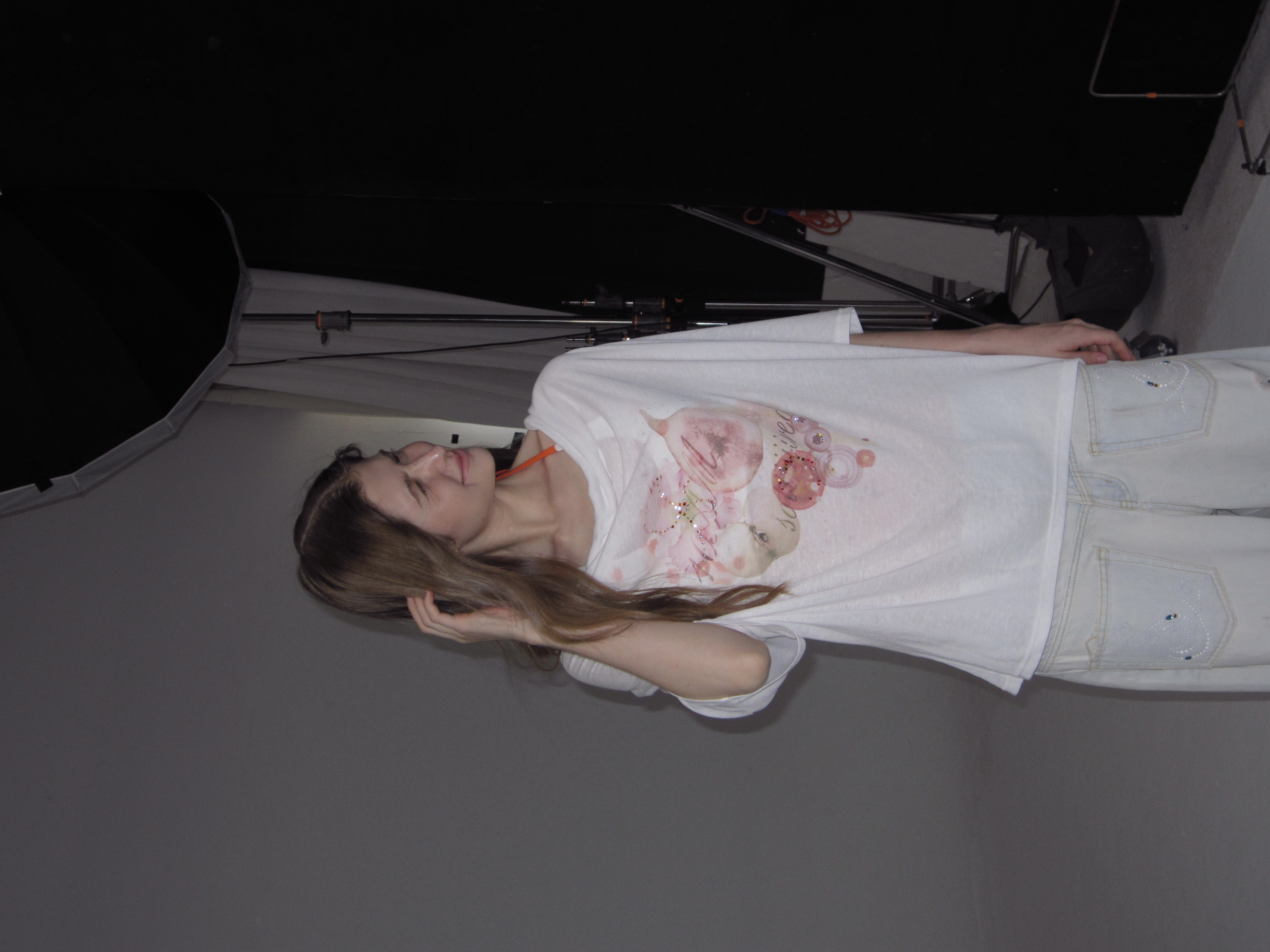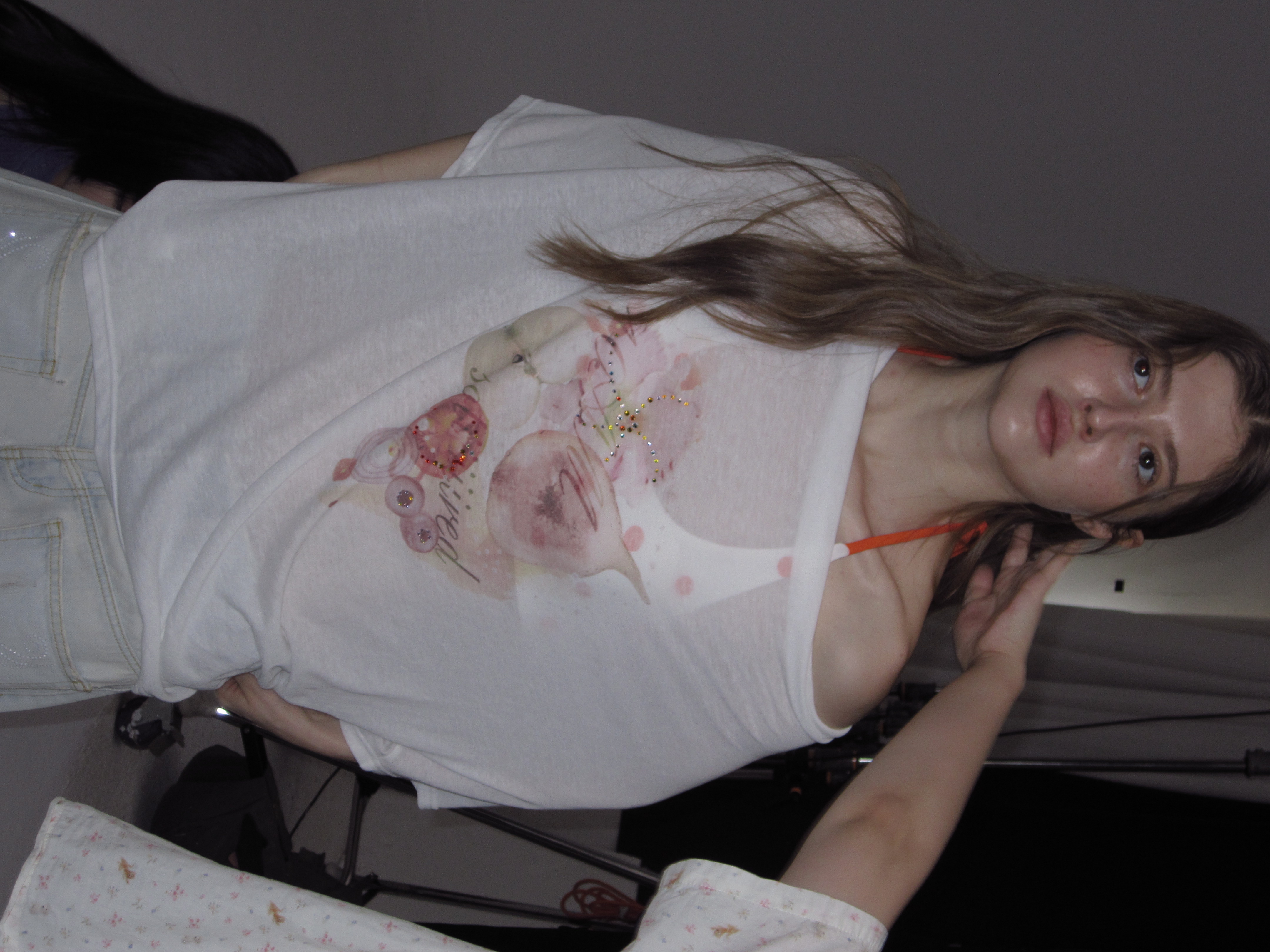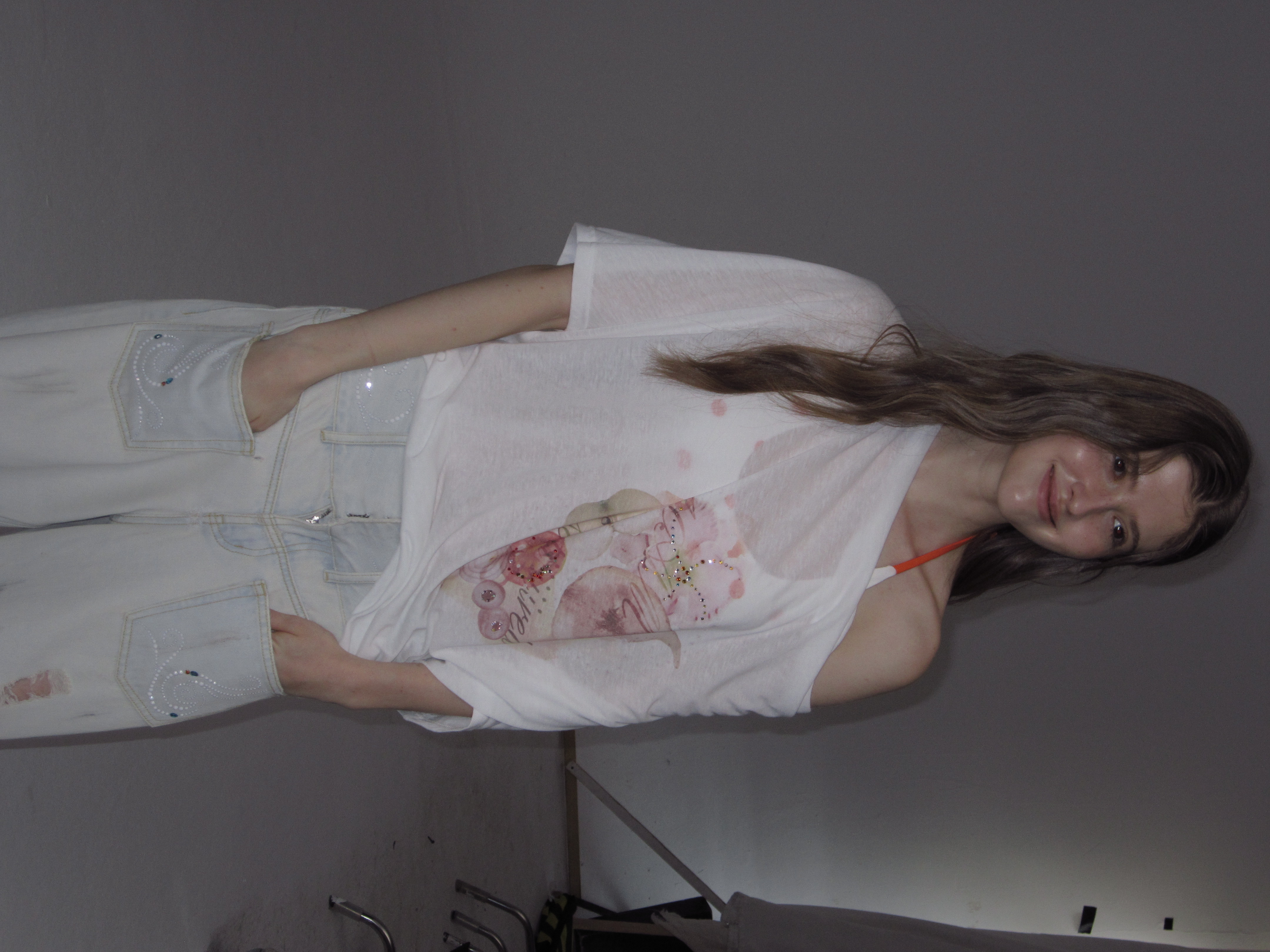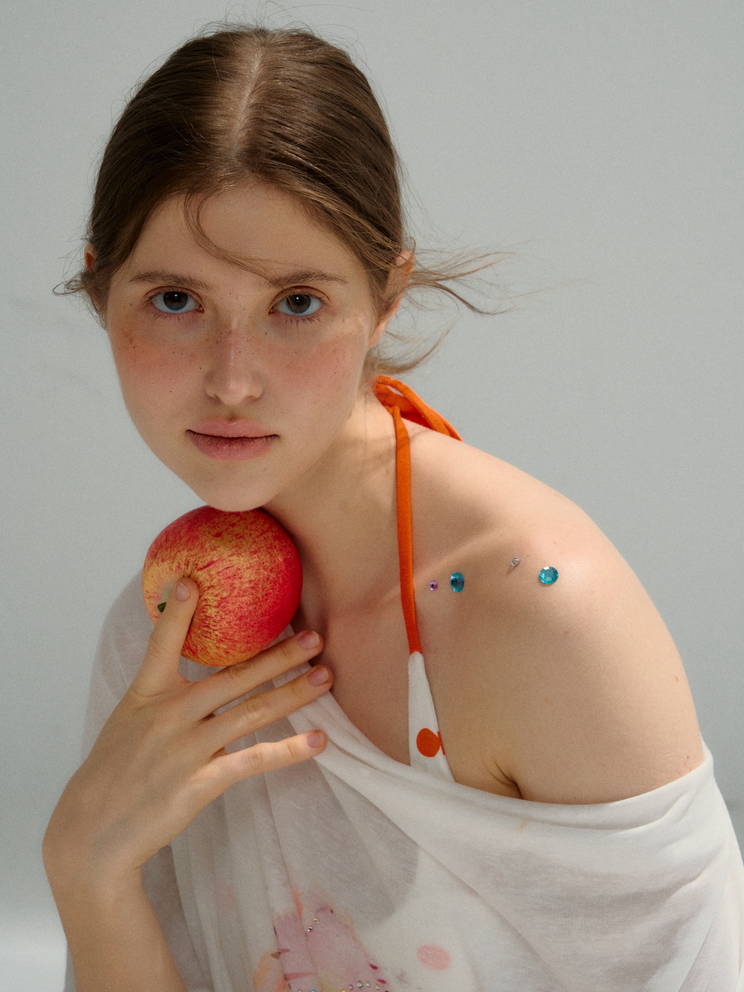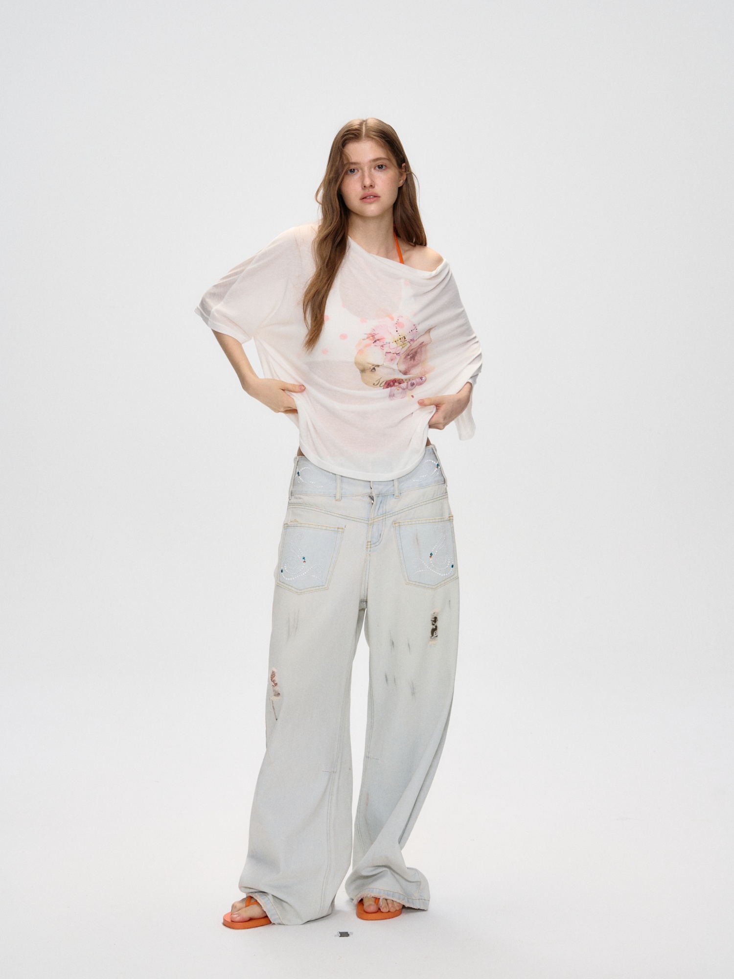 Lyocell Tencel Printed Rhinestone Top - Elbow Sleeve