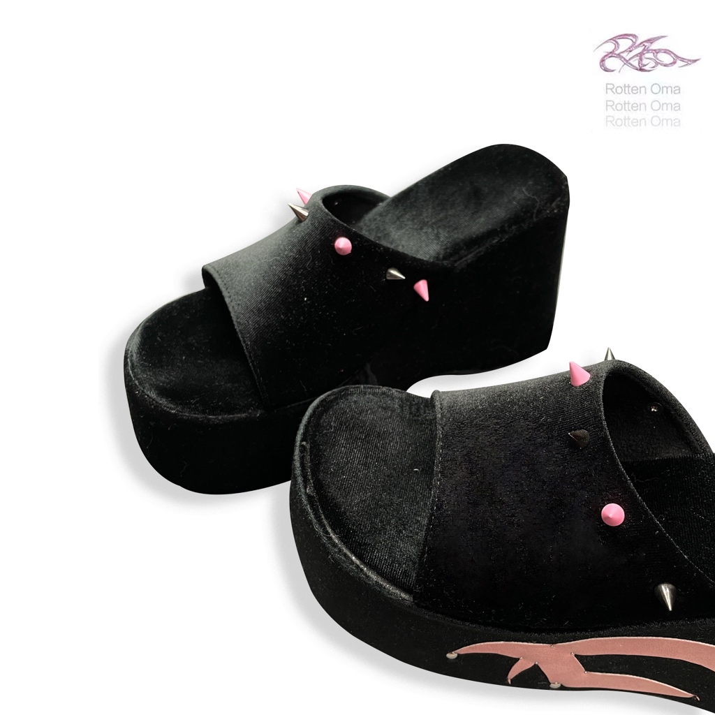 Black Sand Thorn Totem Splicing Suede Thick Bottom Slippers