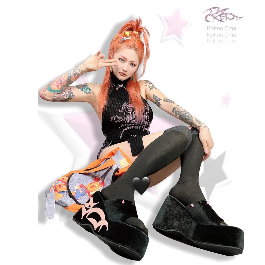 Black Sand Thorn Totem Splicing Suede Thick Bottom Slippers