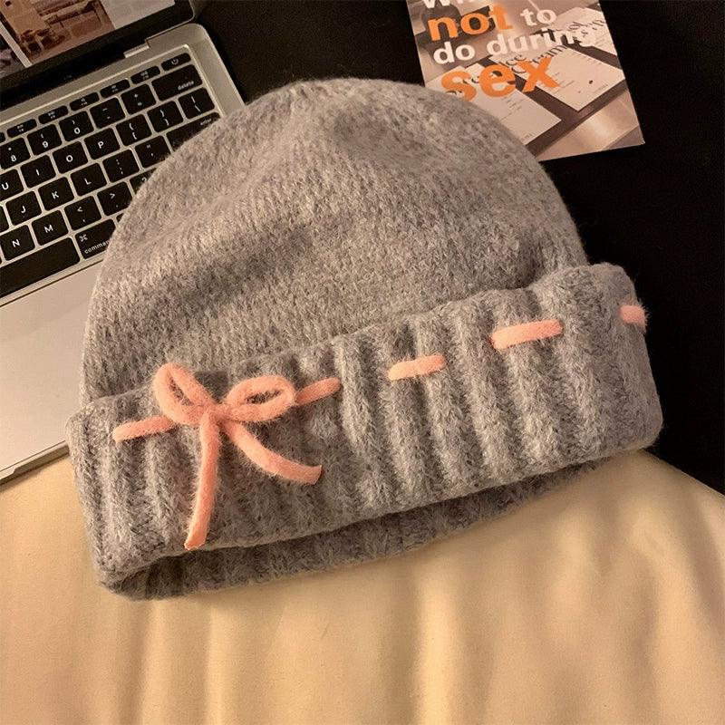 Bow red knitted hat