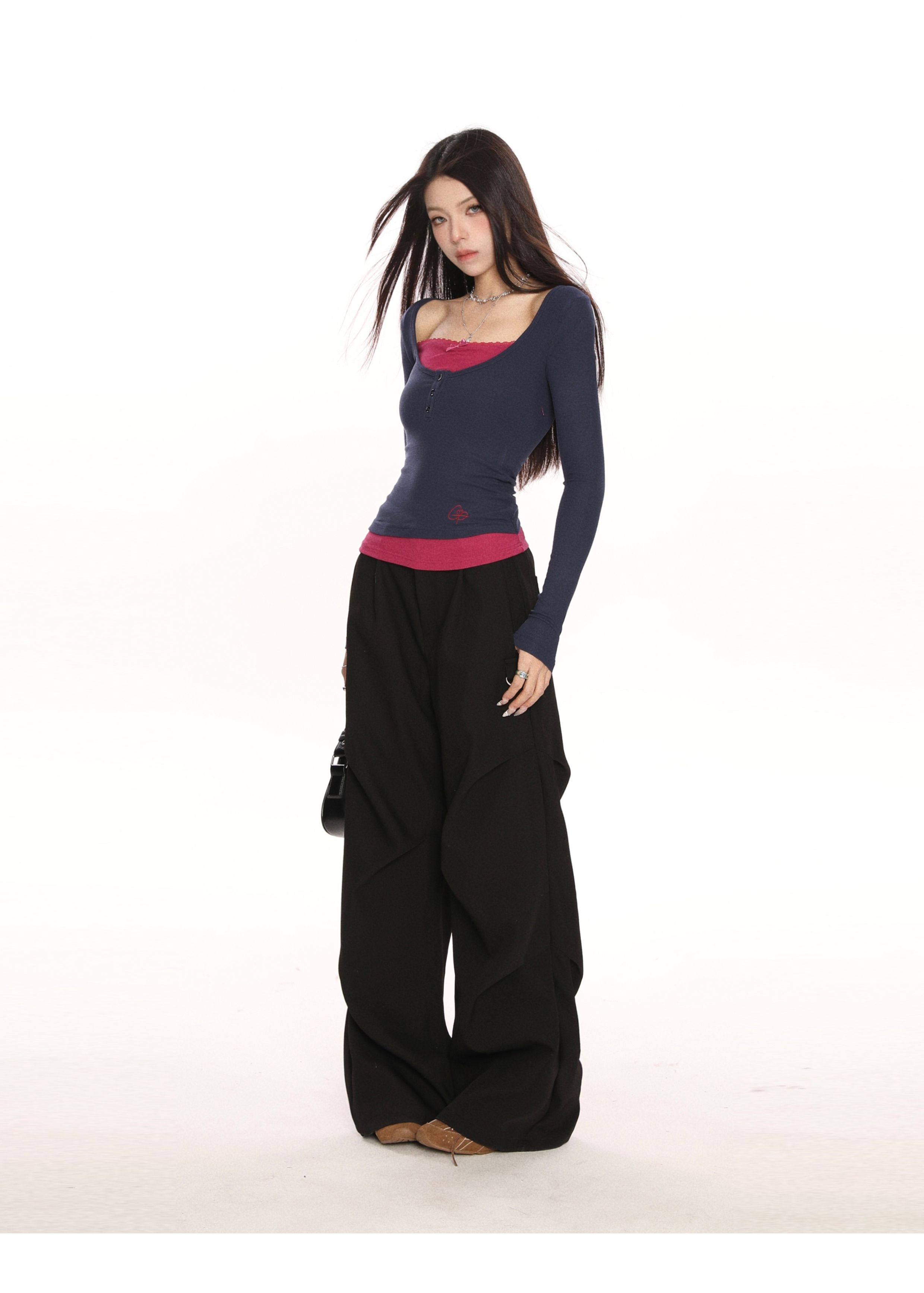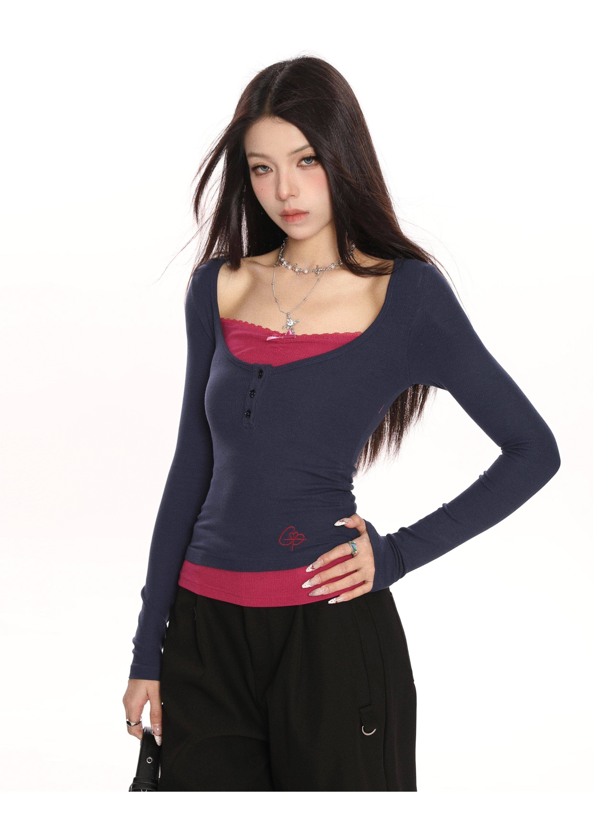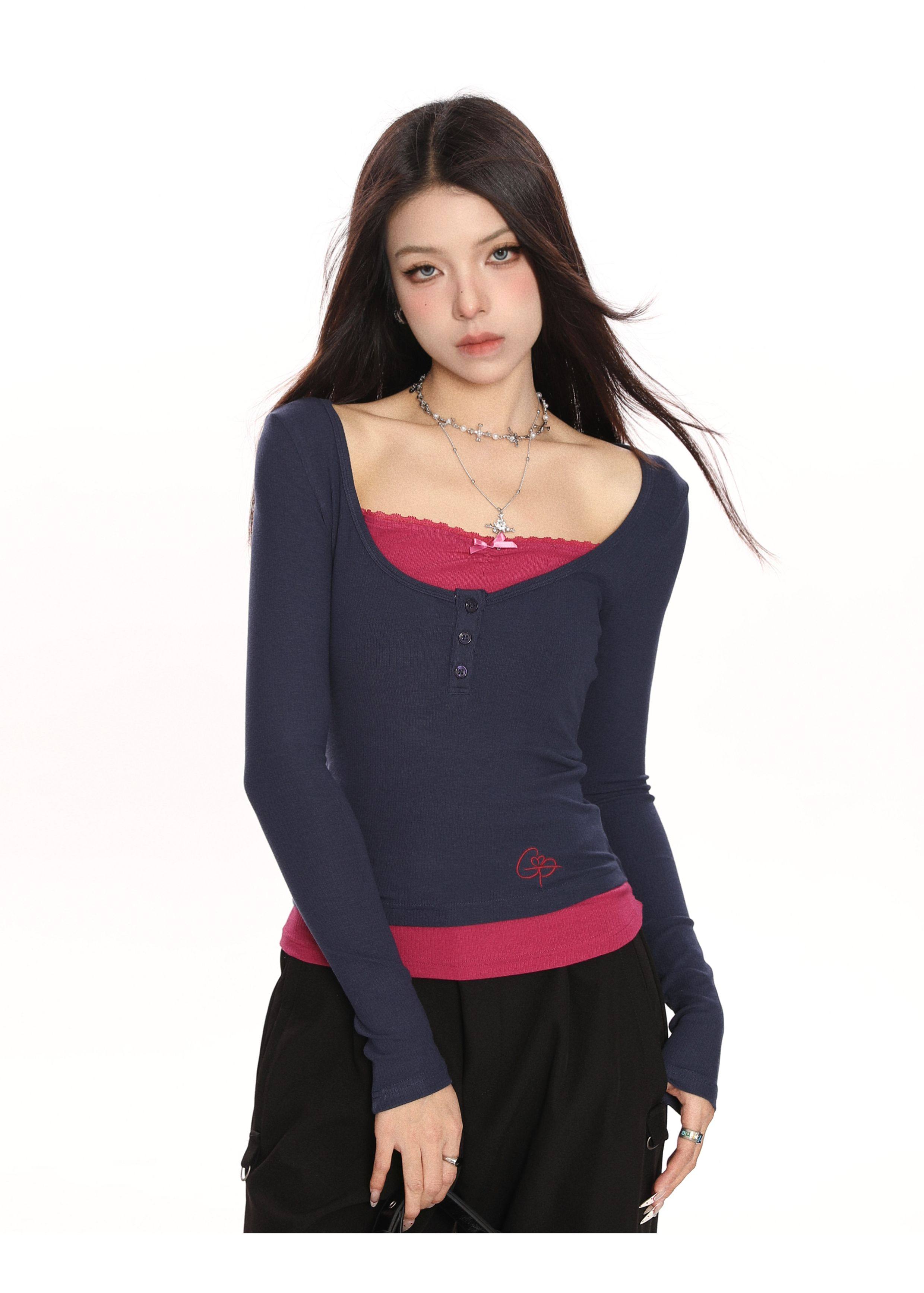 Coquette Long Sleeve Tee Layered Ribbed Top