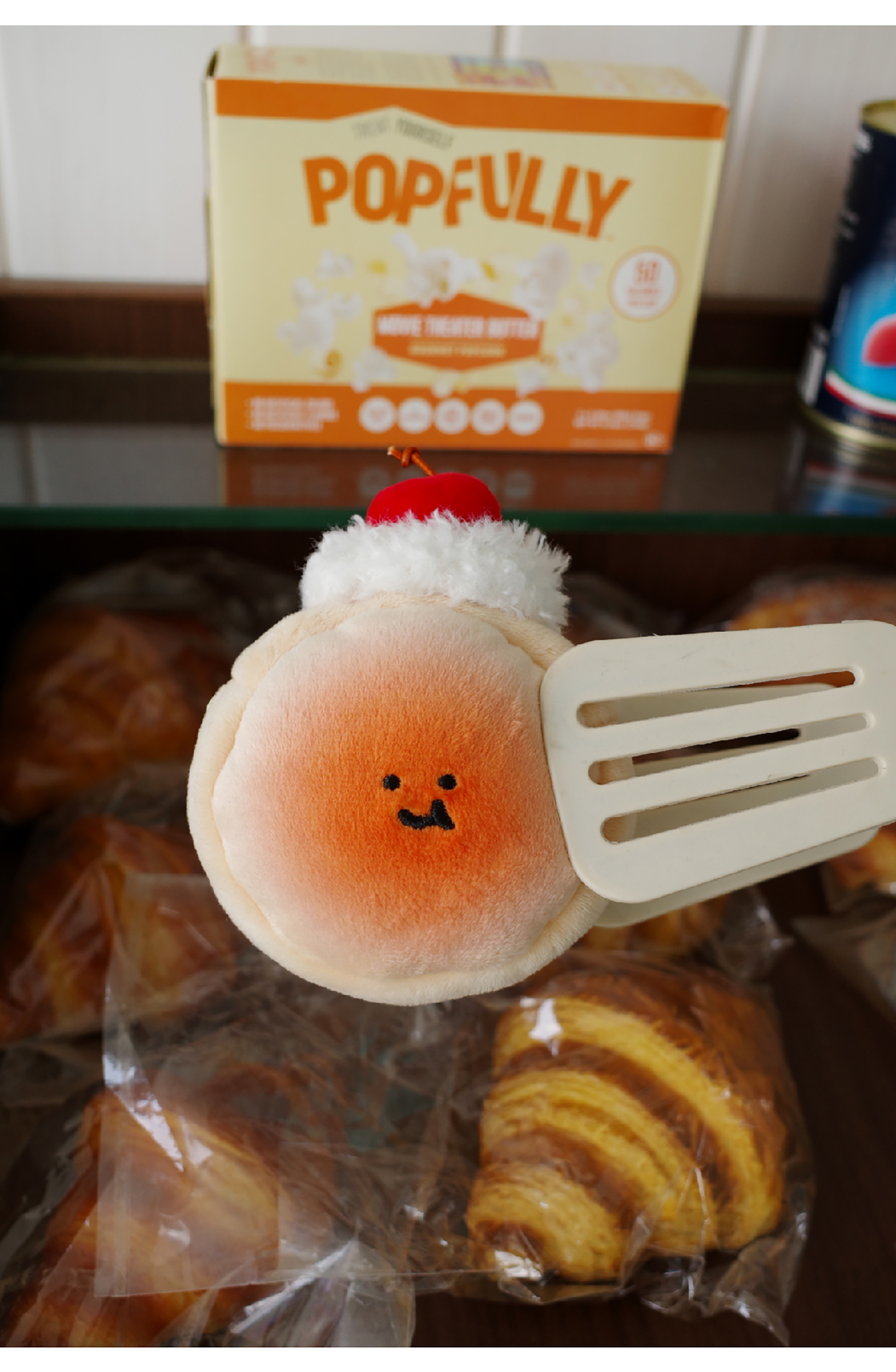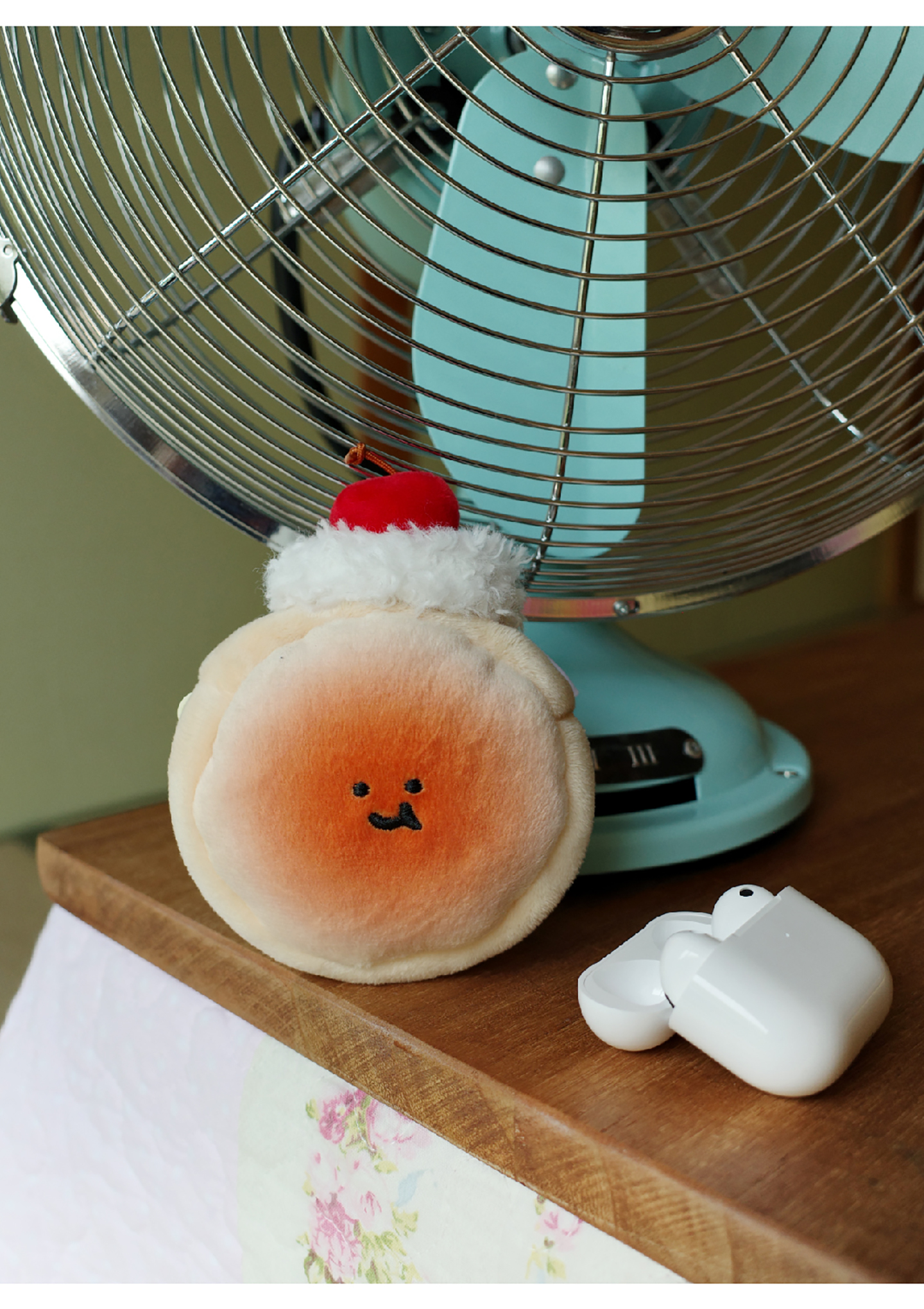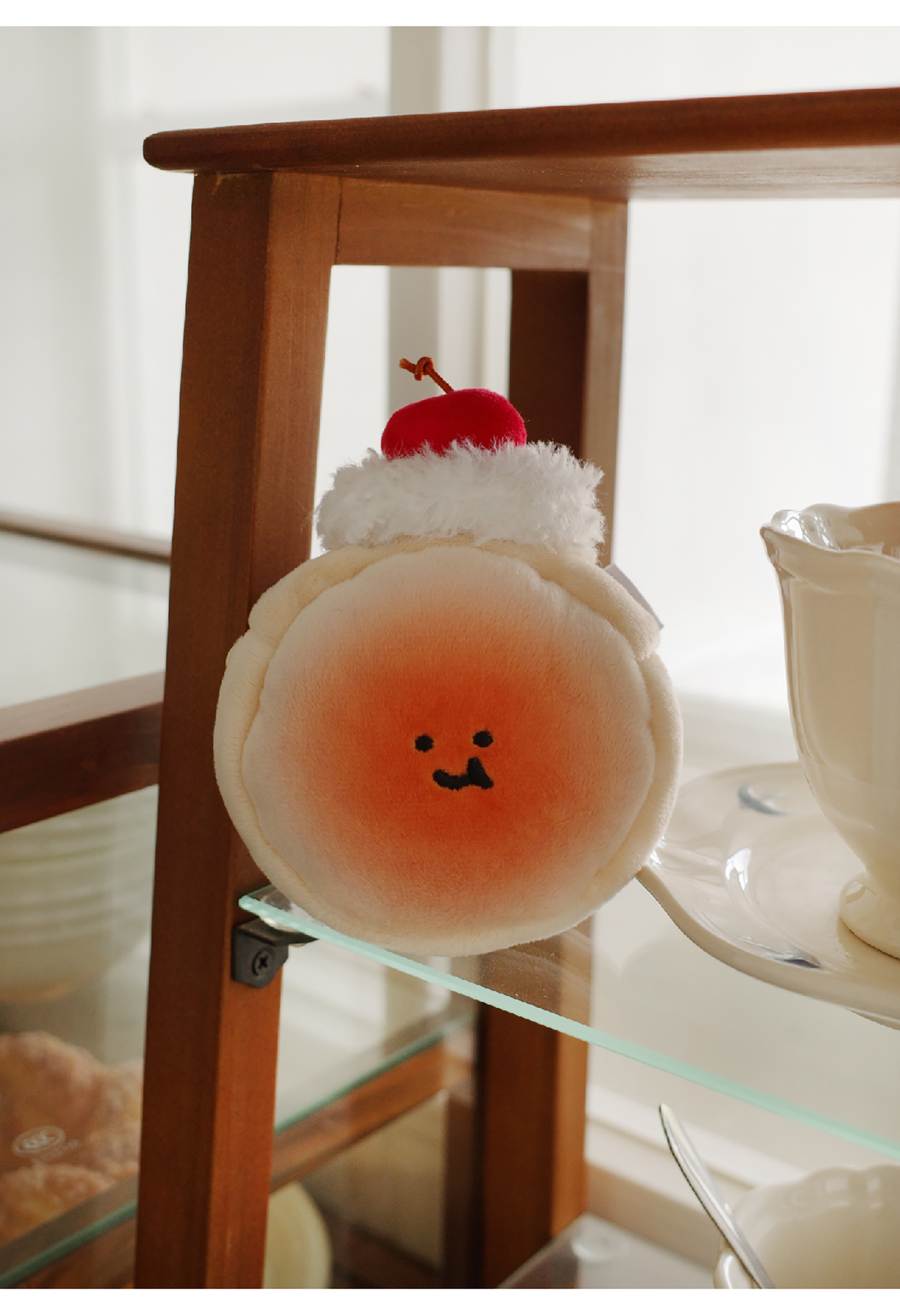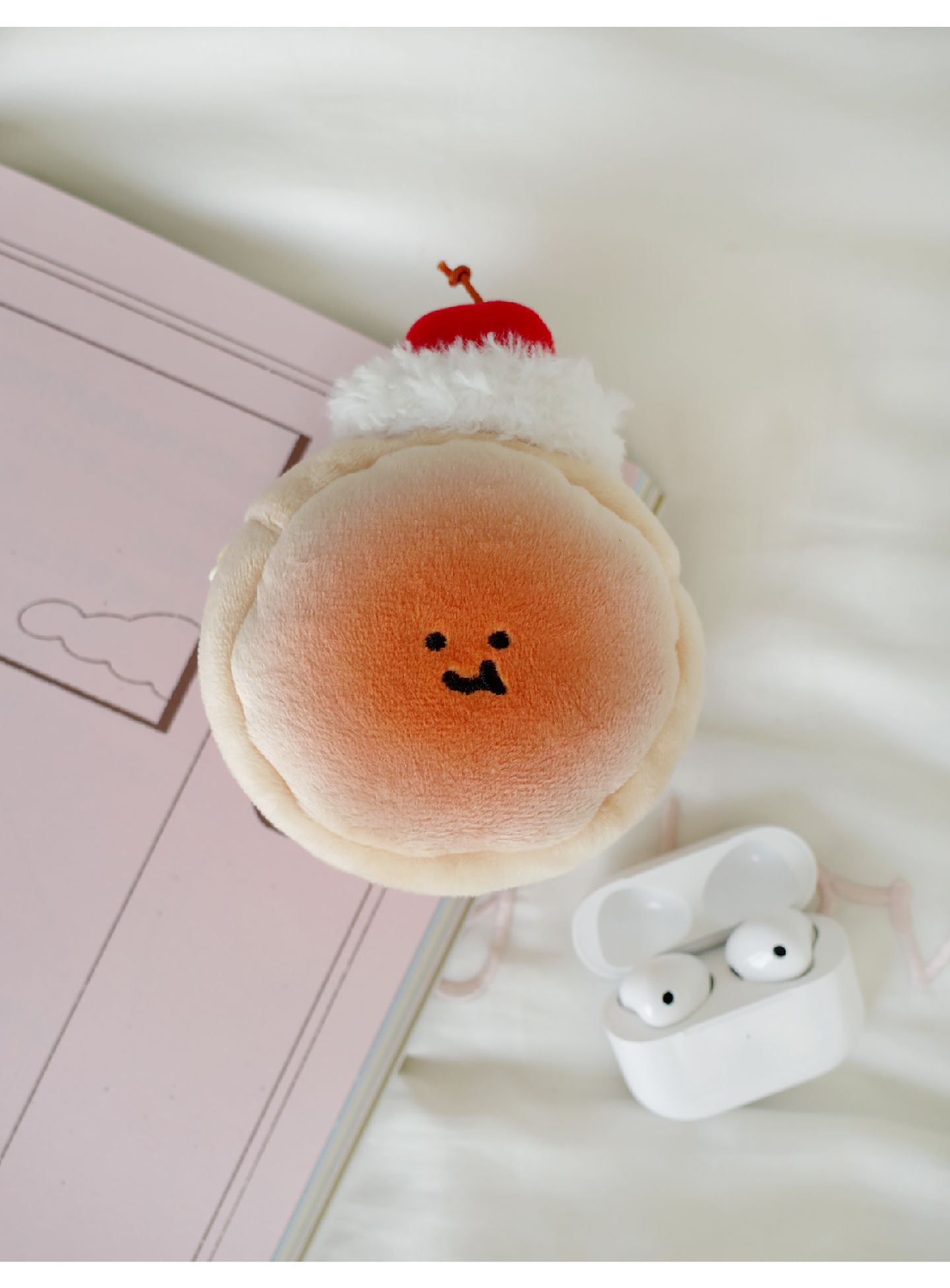 Cream Cherry Bread Plush Earphone Bag Wallet Charm