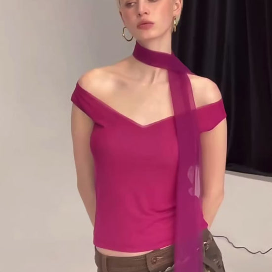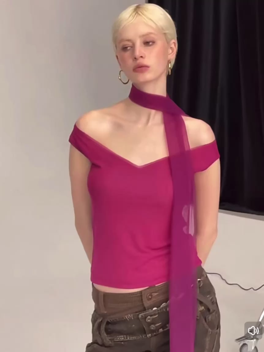 V-neck with scarfs mesh top pink