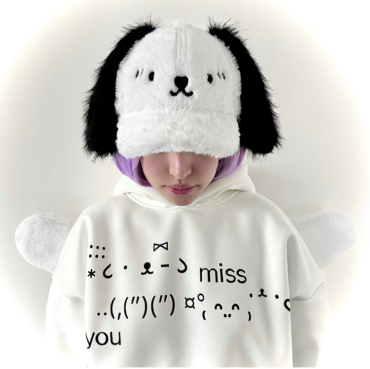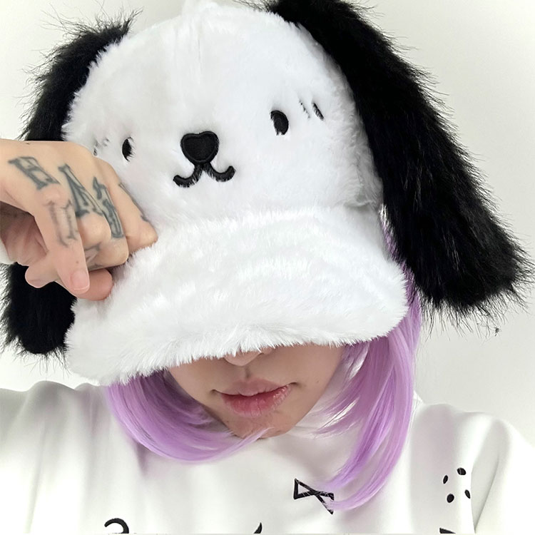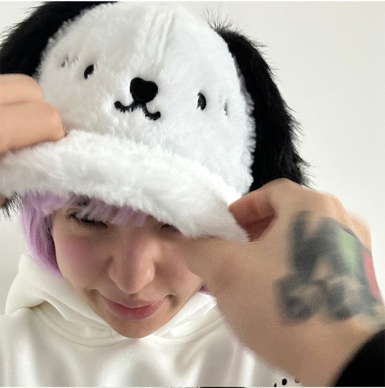 plush hat smiling puppy hat