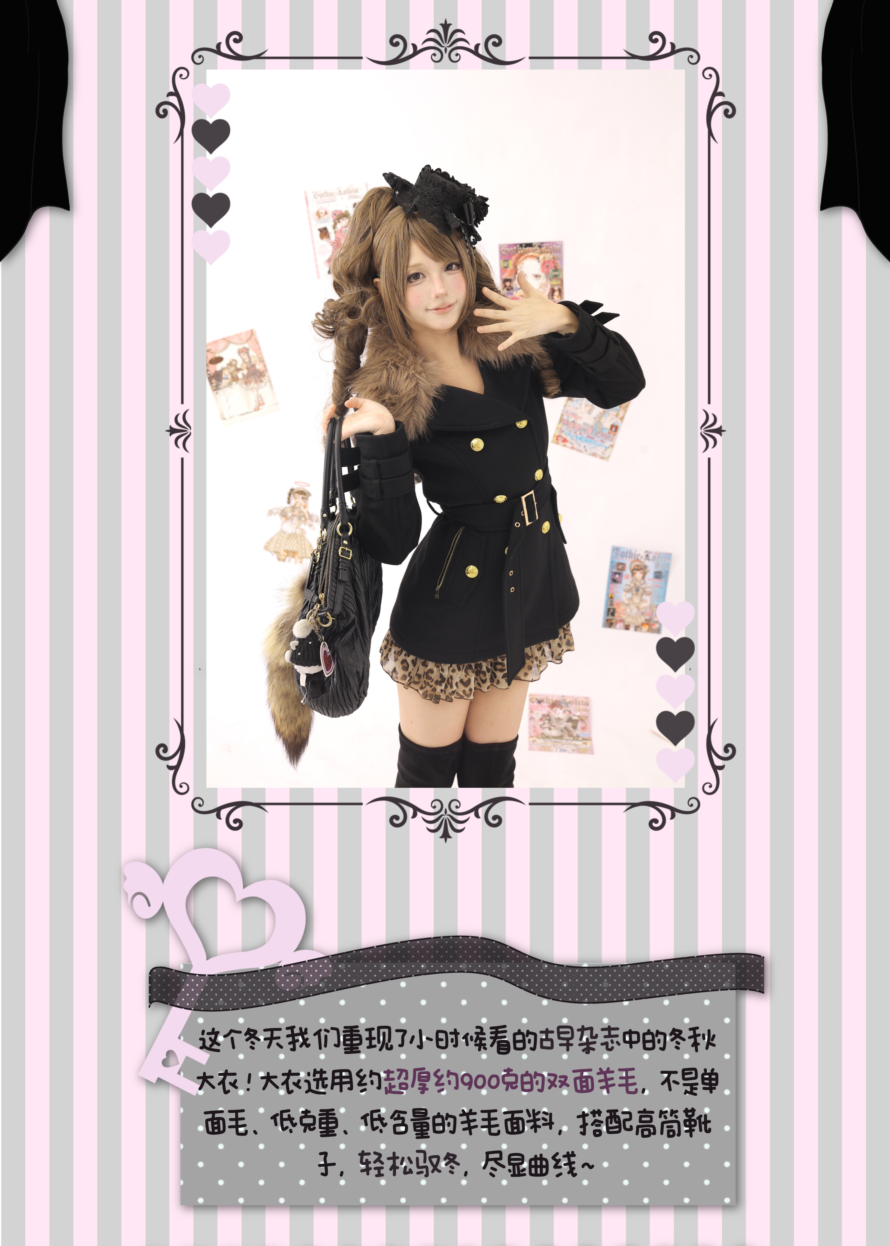 This winter, we've recreated the iconic autumn-winter coat from the vintage magazines we loved as children! The coat is made from a wool blend fabric containing approximately 30% wool, with a weight that exceeds the original version by about 900 grams. It's not a single-layer wool fabric. This high-weight, high-texture material is a substantial wool blend, perfectly paired with high-top boots.