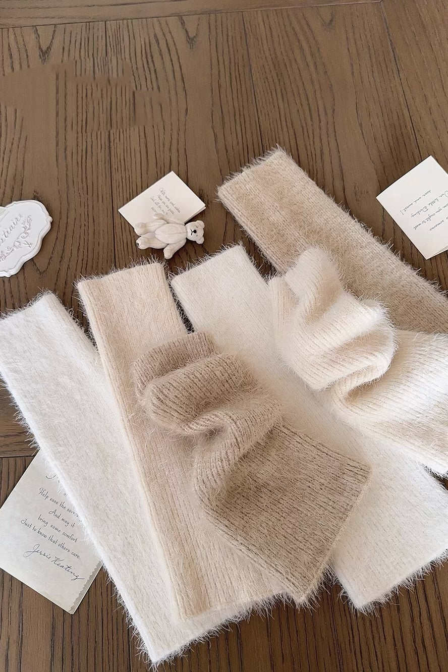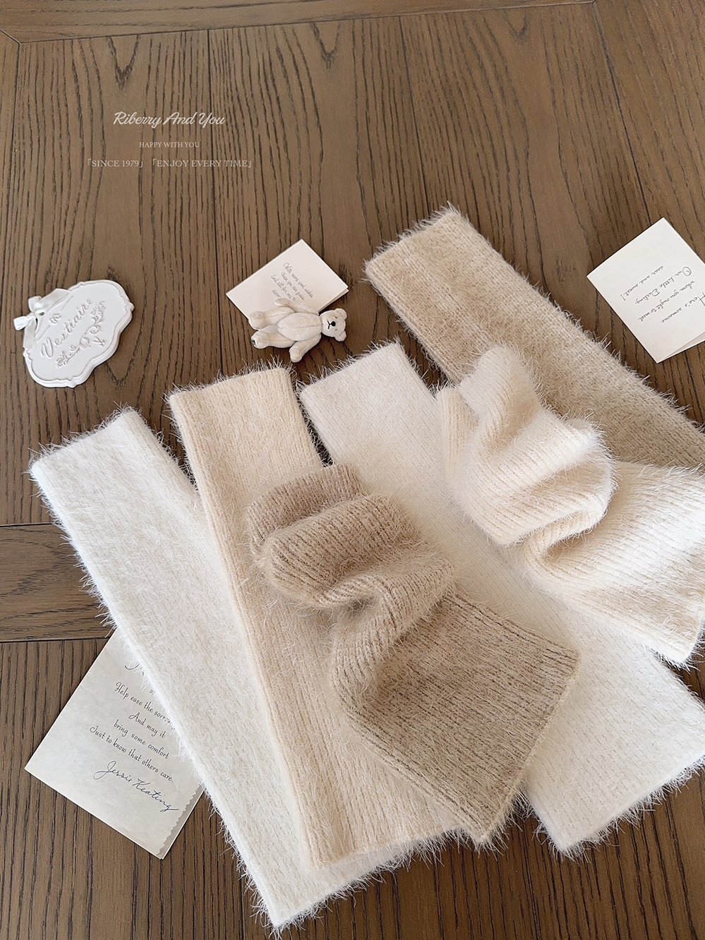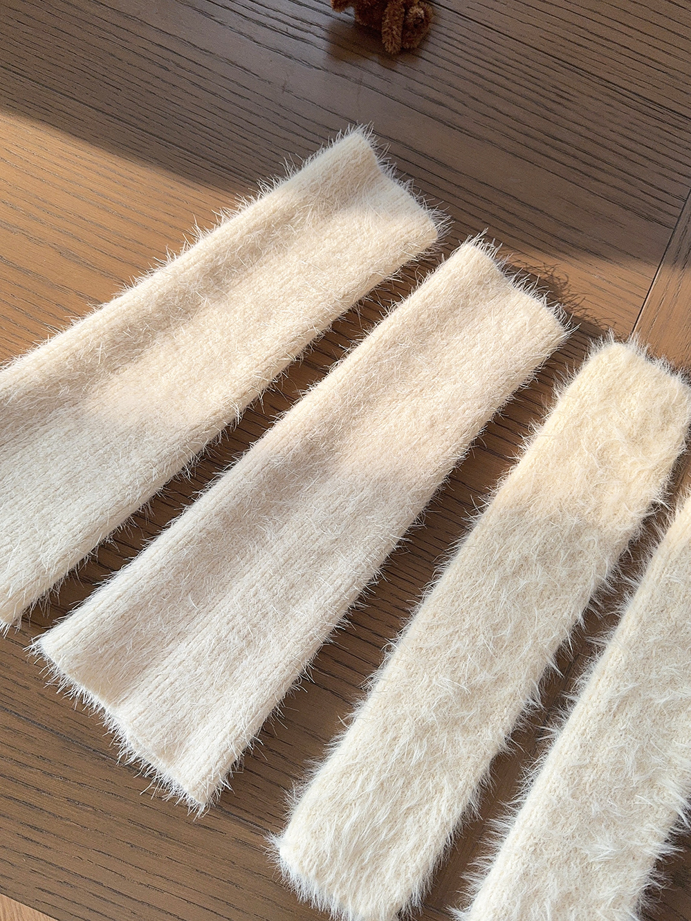Feather yarn, furry needles, knitted pile socks, leg warm