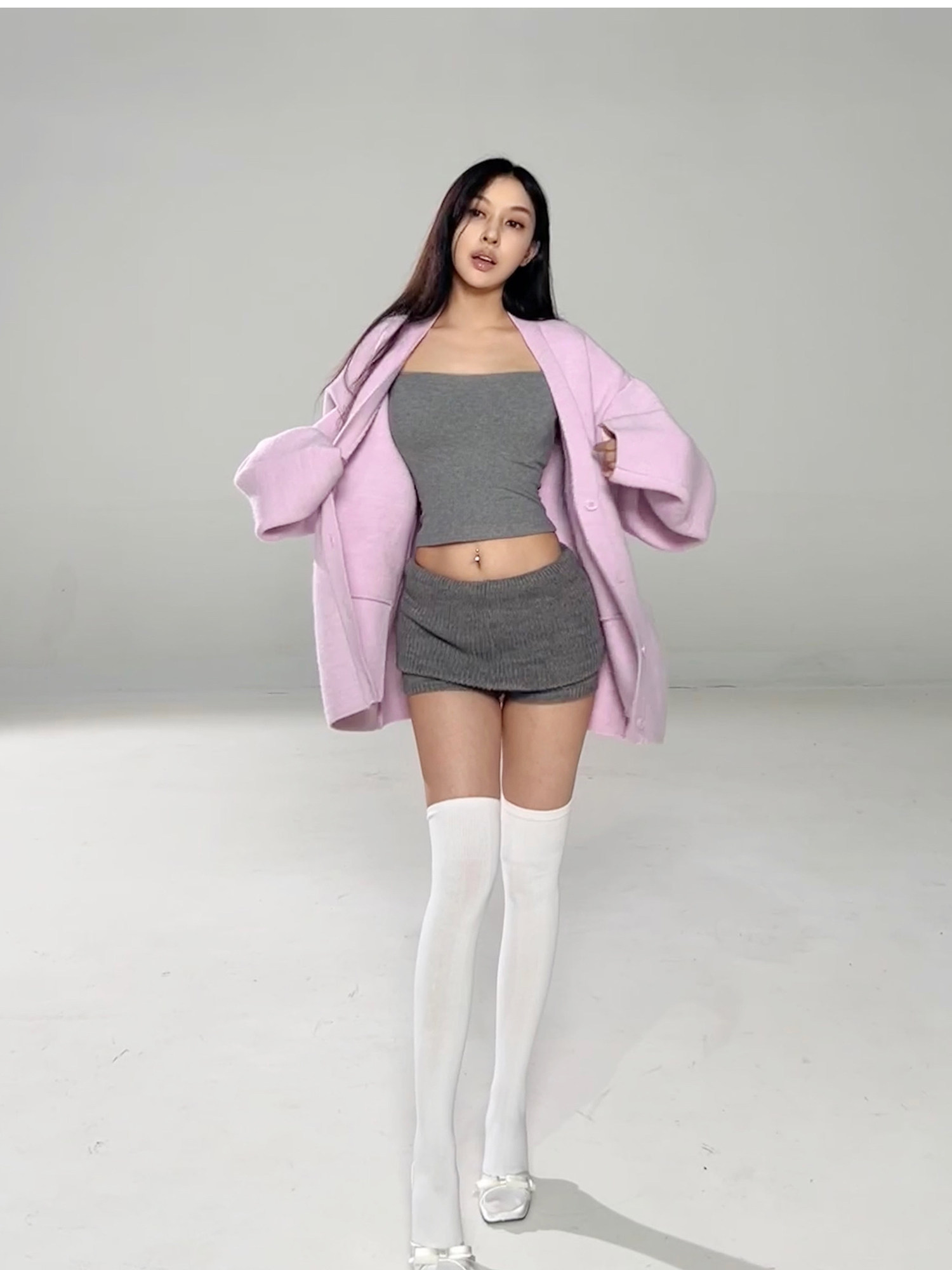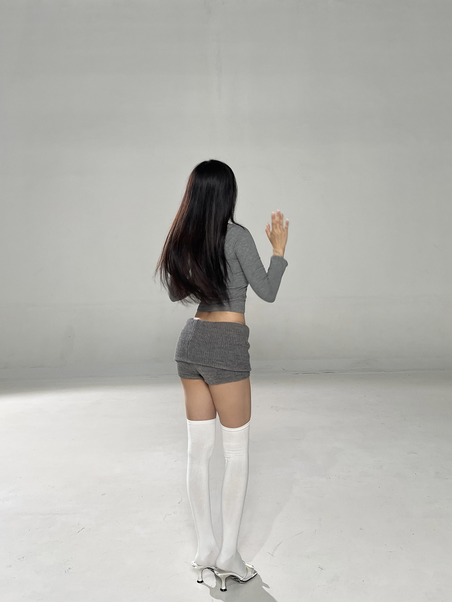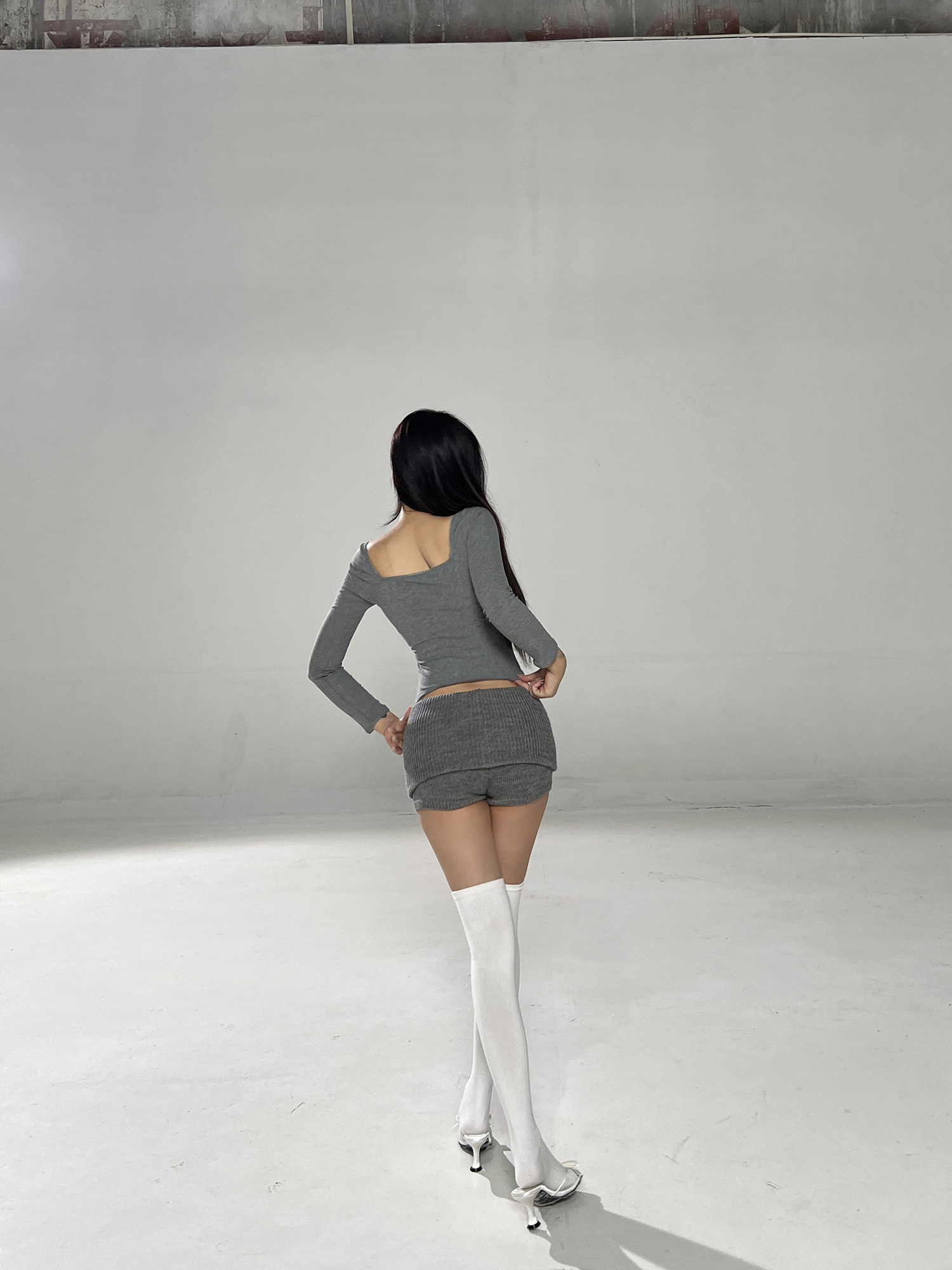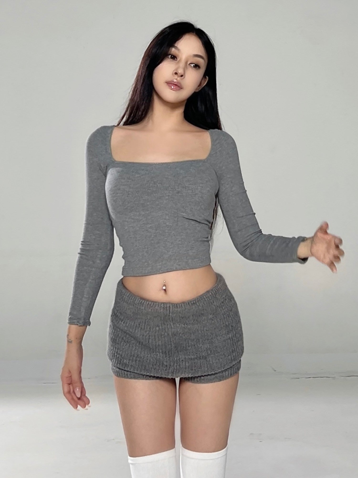 Main colors: Gray square neck long sleeve T in stock