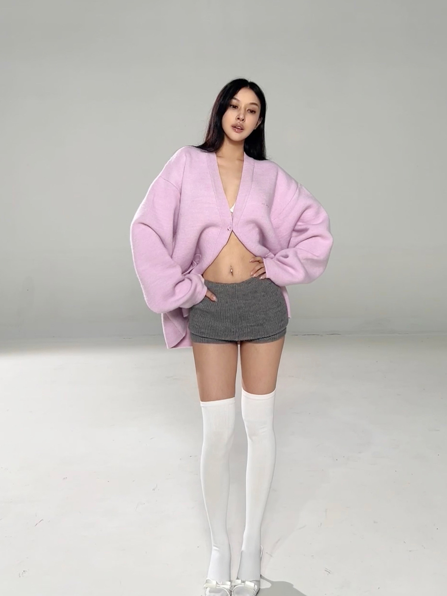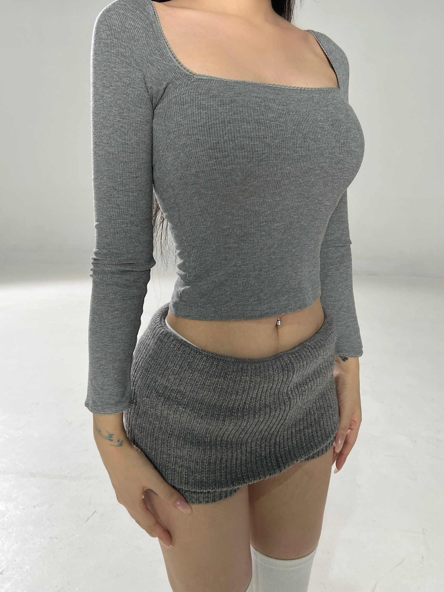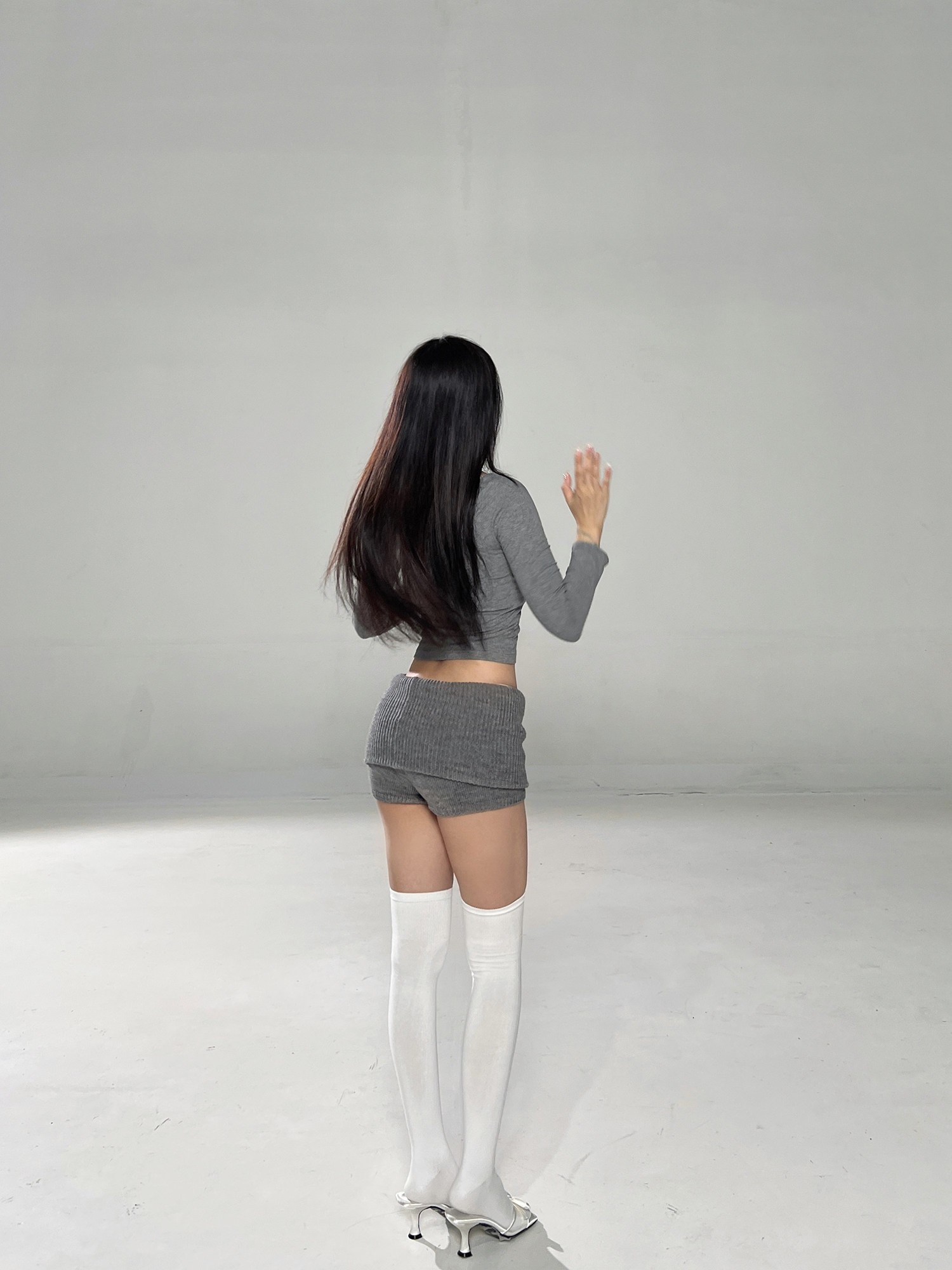 Color classification: Flower Grey Cuffed Knit Shorts (Upgraded) In stock