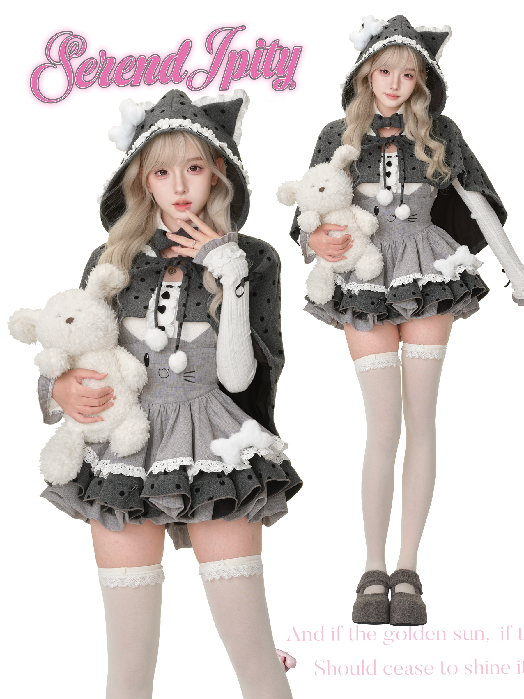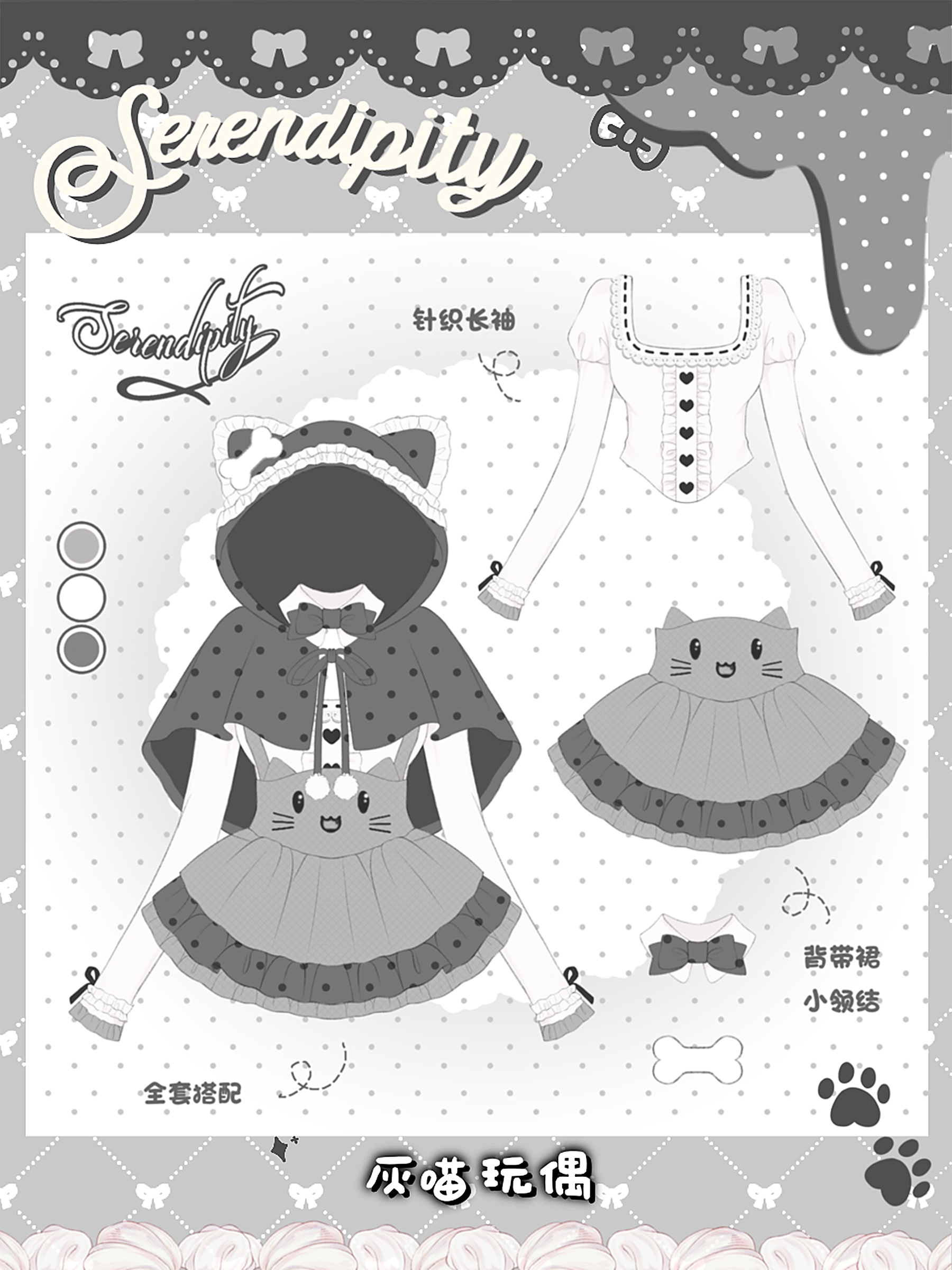 Grey Meow Doll Long Sleeve Comes with Bow Tie Set