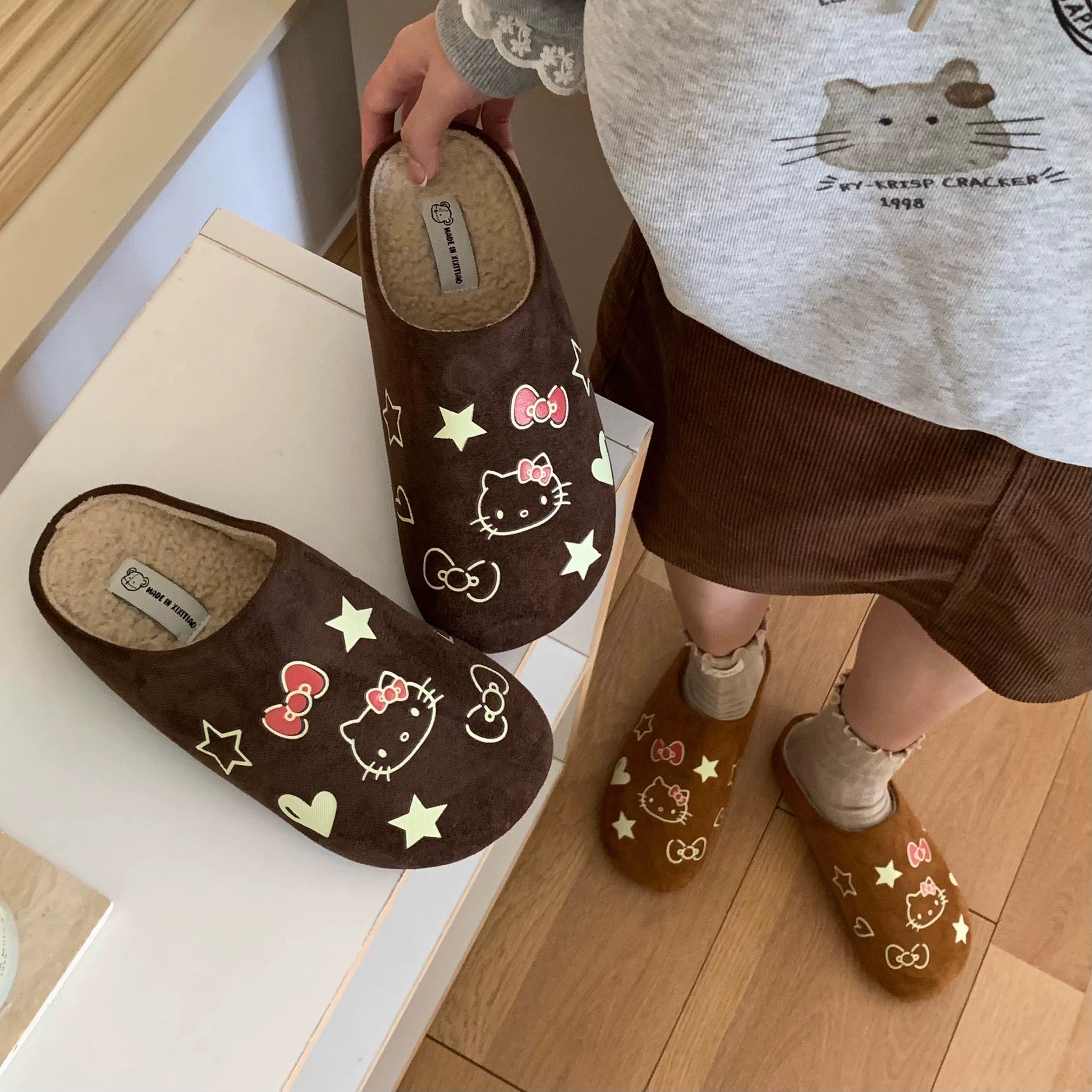 HelloKitty Pocken shoes with plush warm slippers