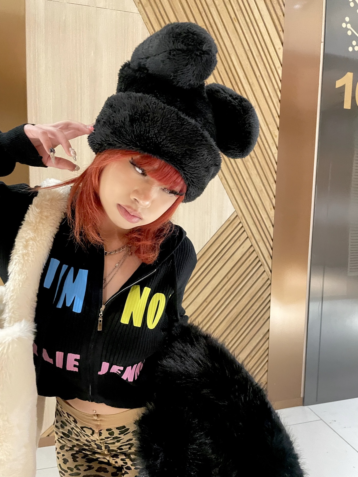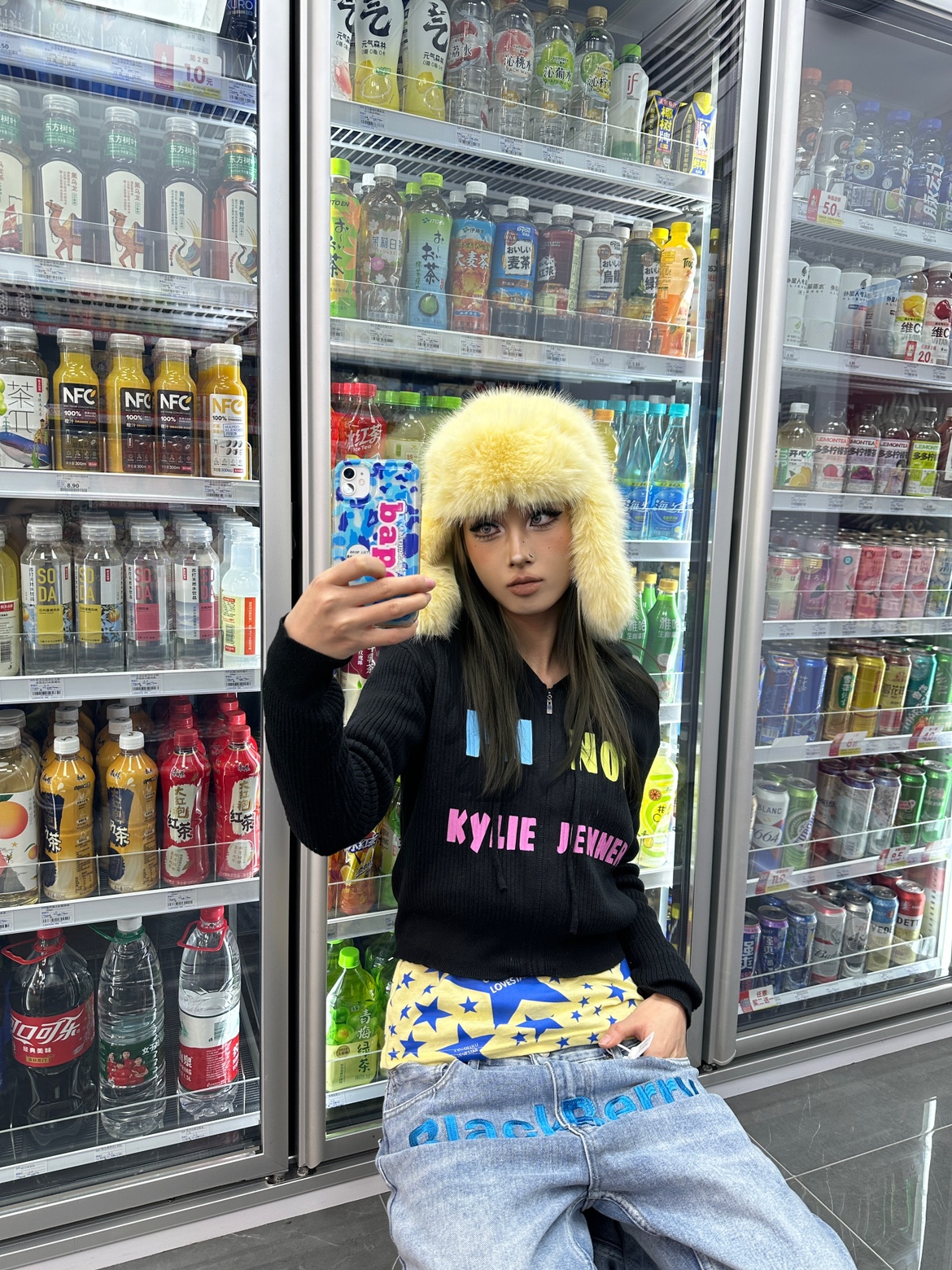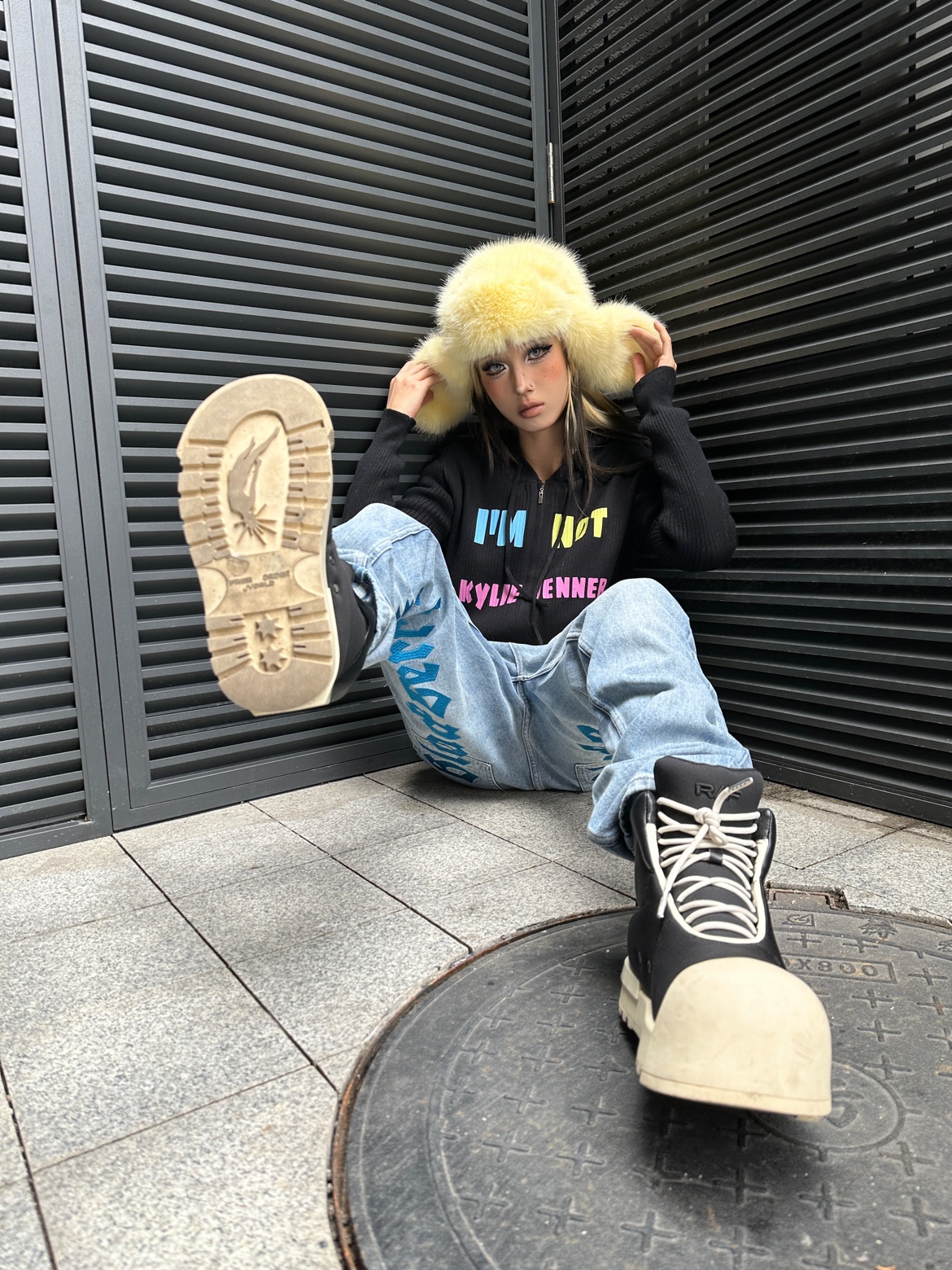 I'm NOT KYLIEJENNER hooded black knitted jacket