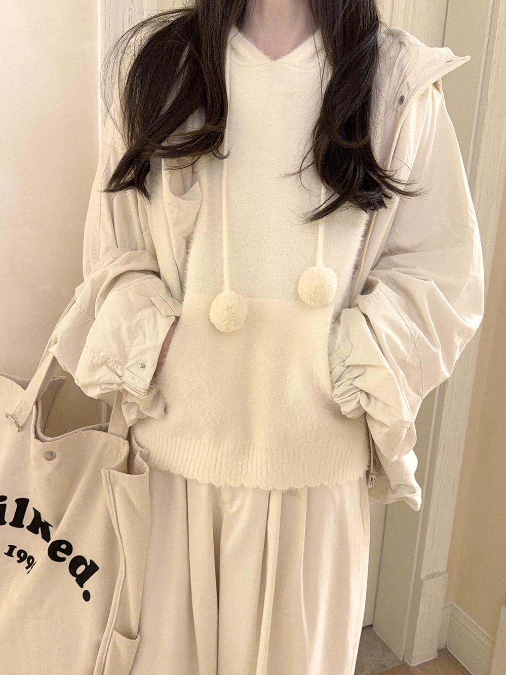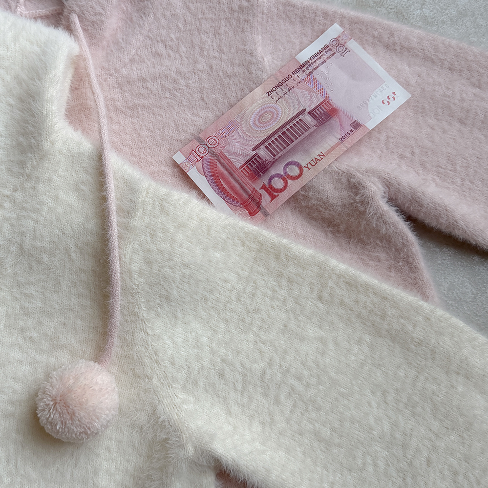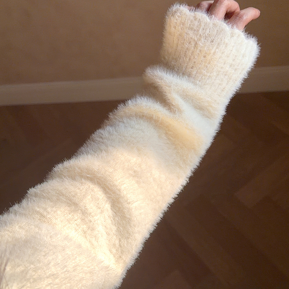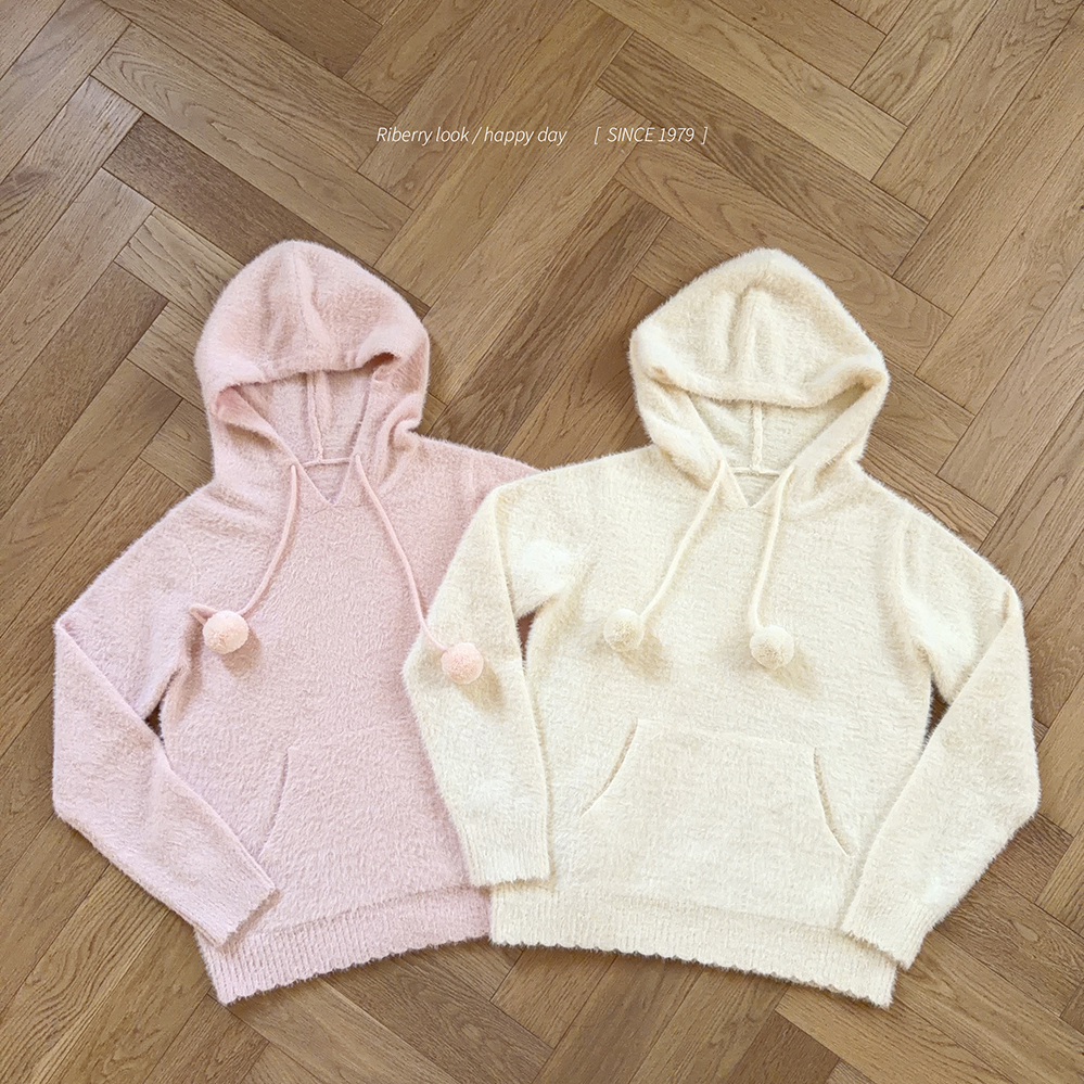 Imitation mink fur hooded knitted sweater