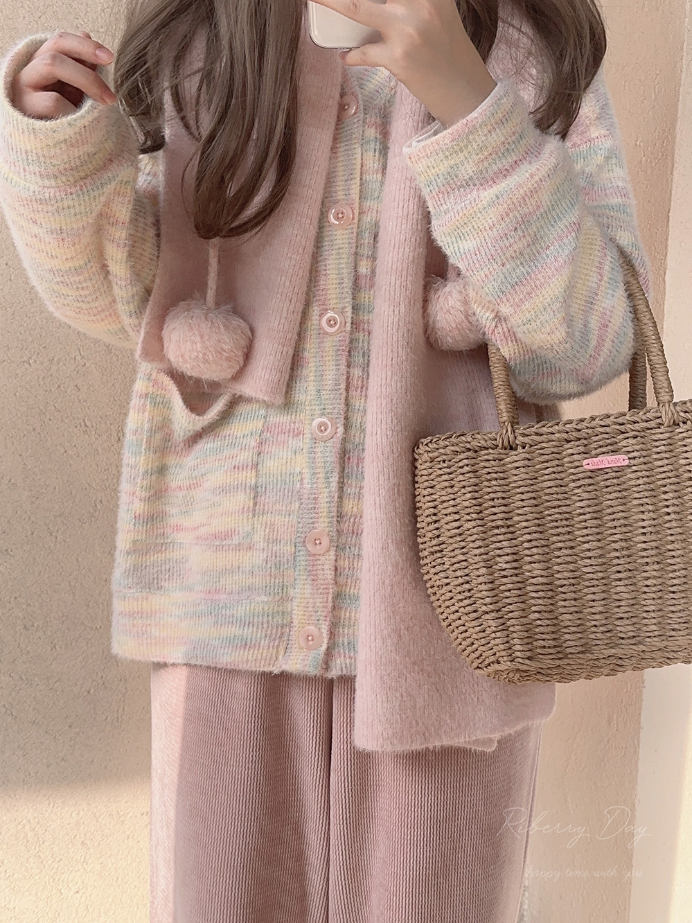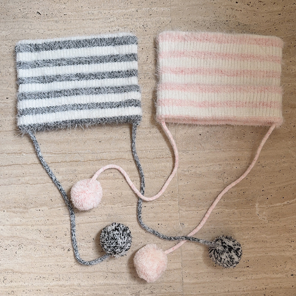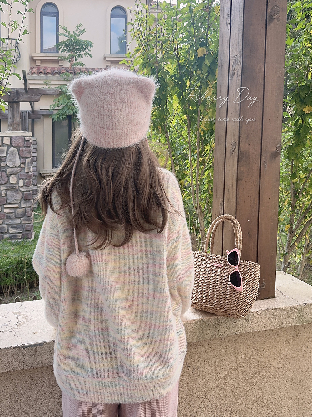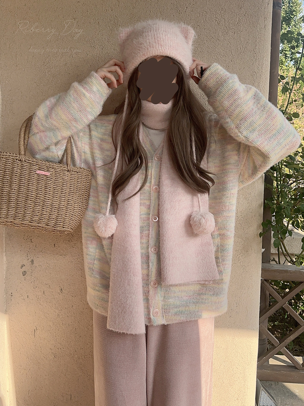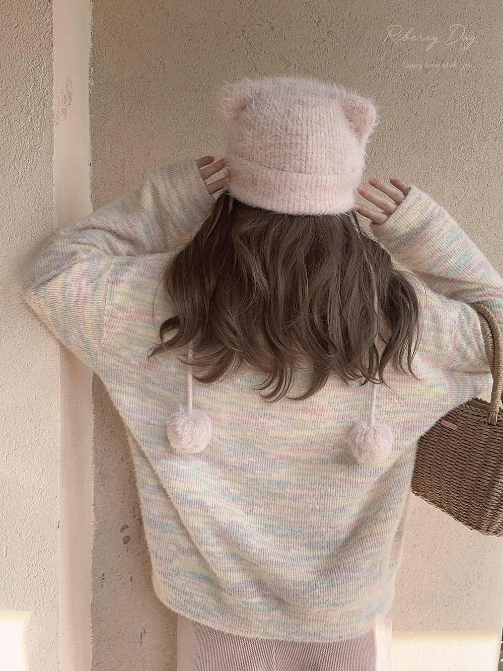 Imitation mink fur soft pink handmade fur ball cat ear hat scarf