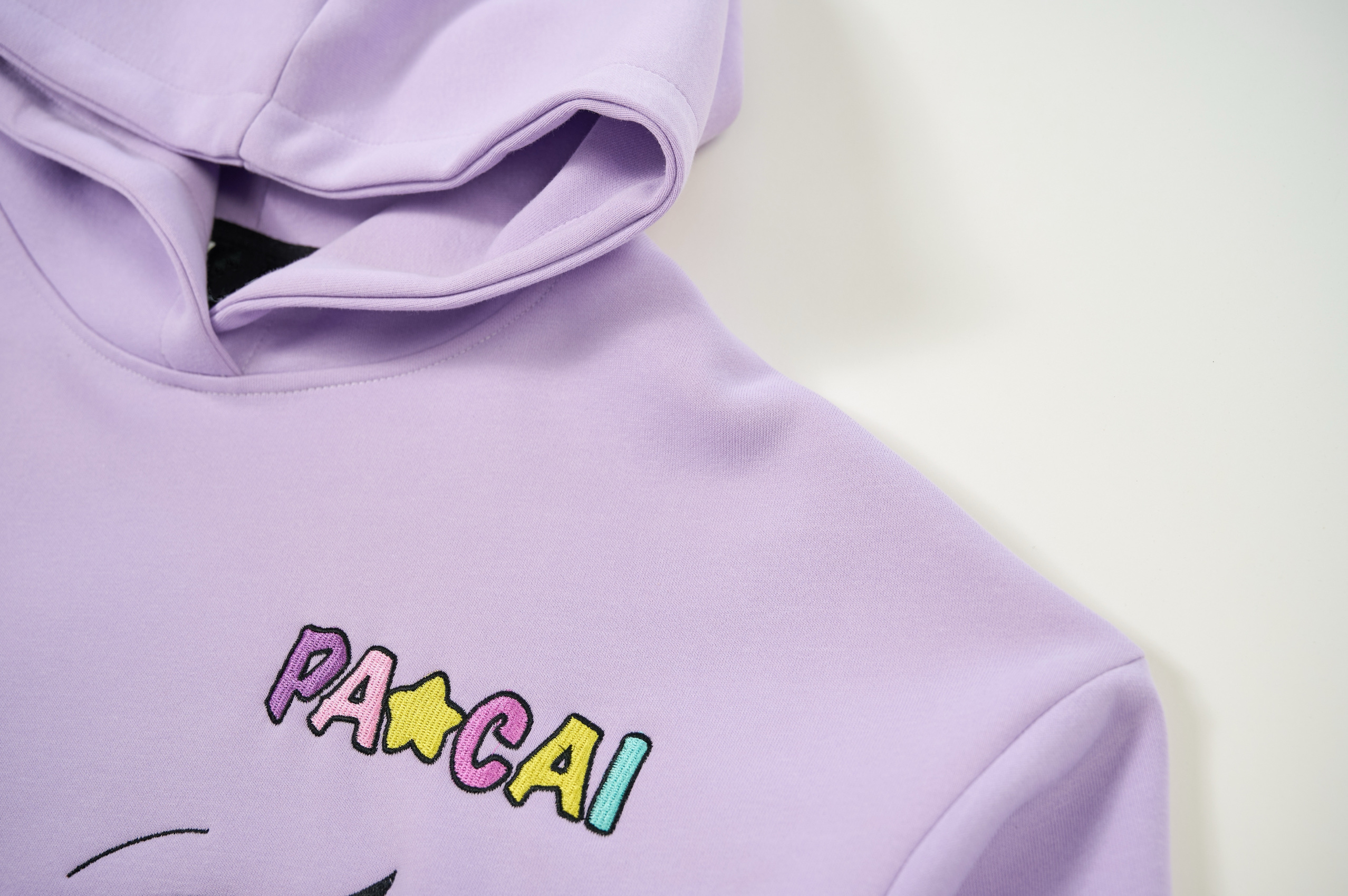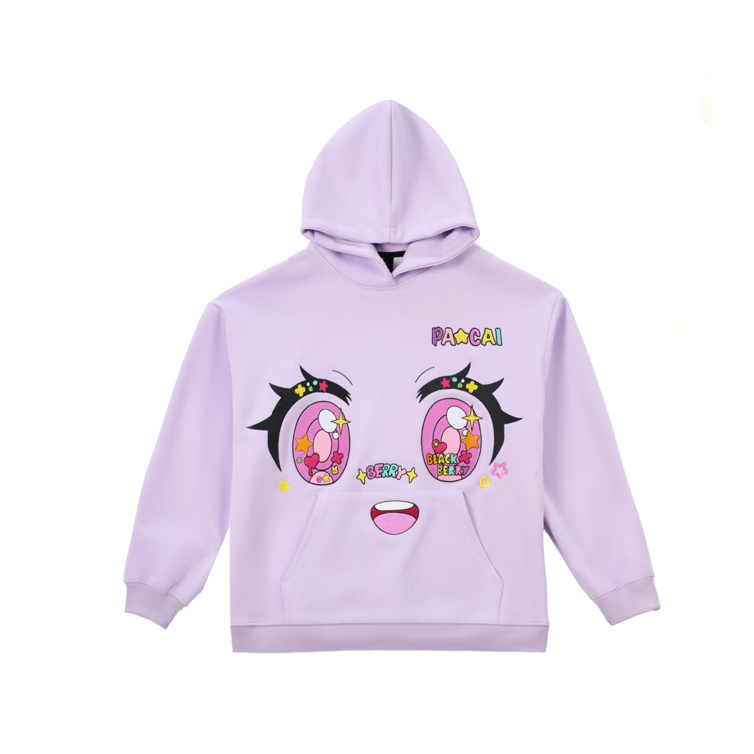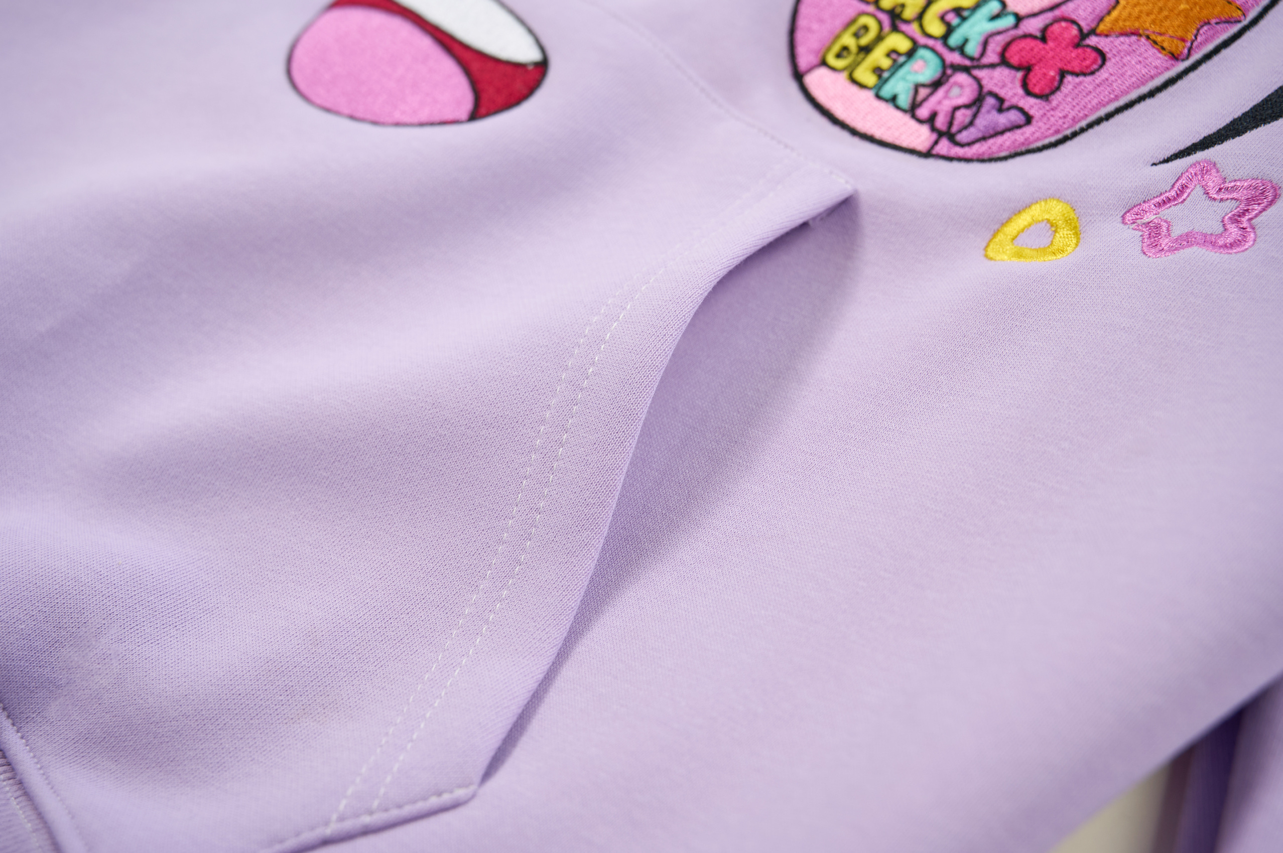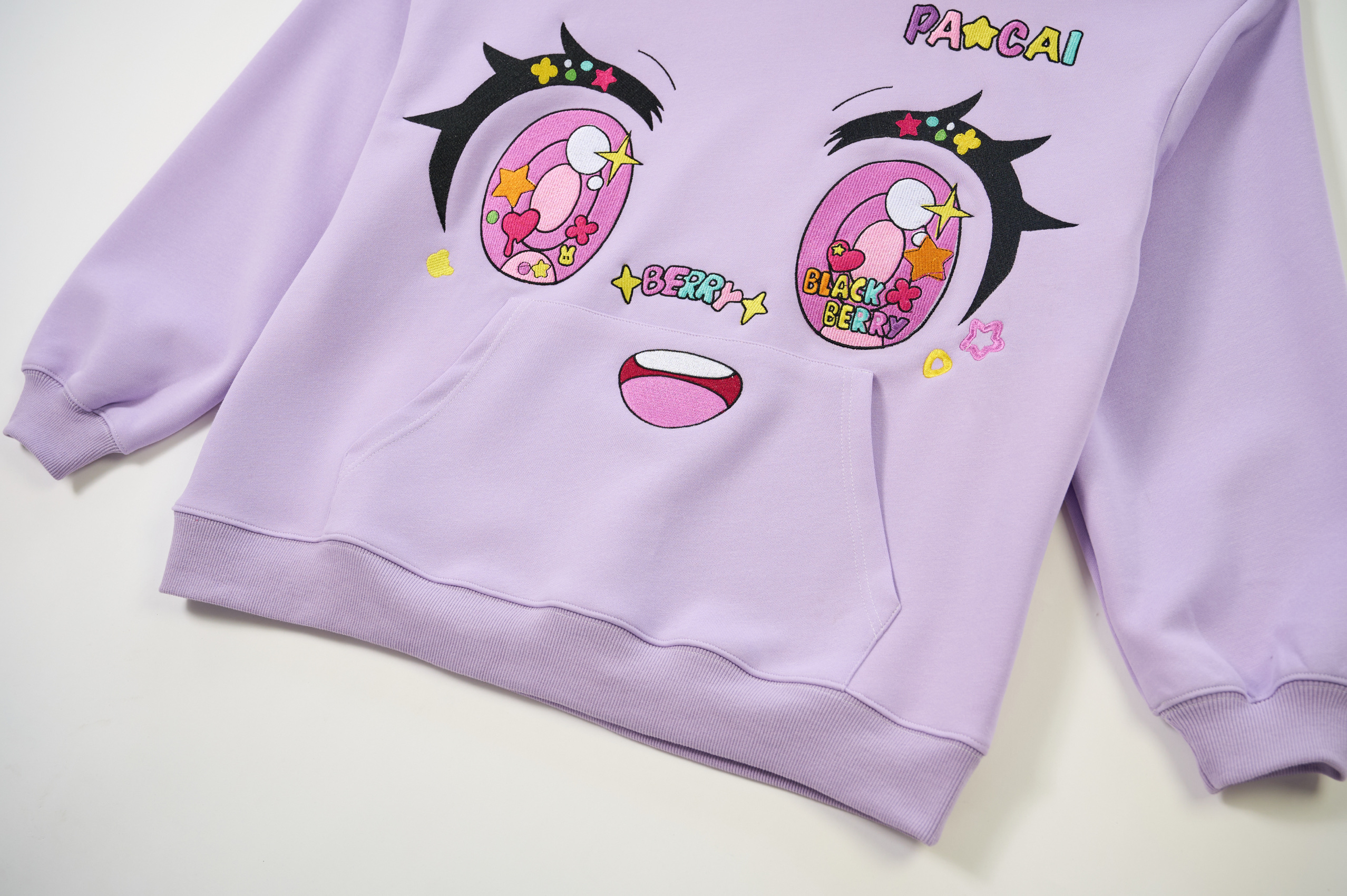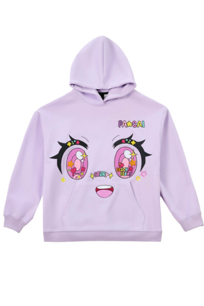 purple comic embroidery emoji sweater