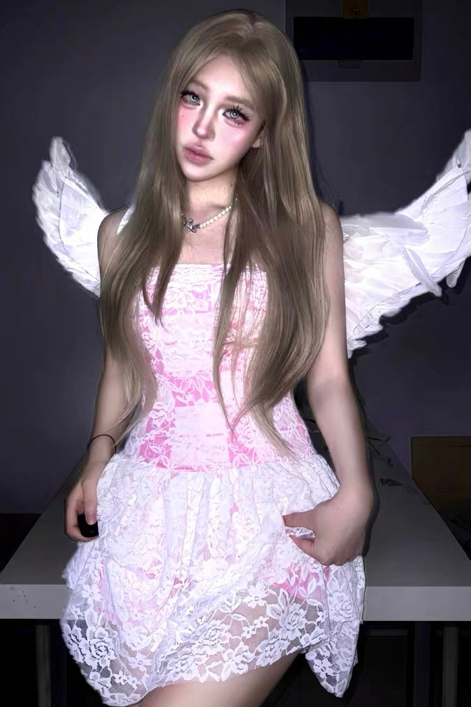 three-layer white lace dress