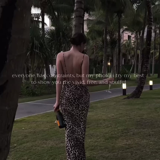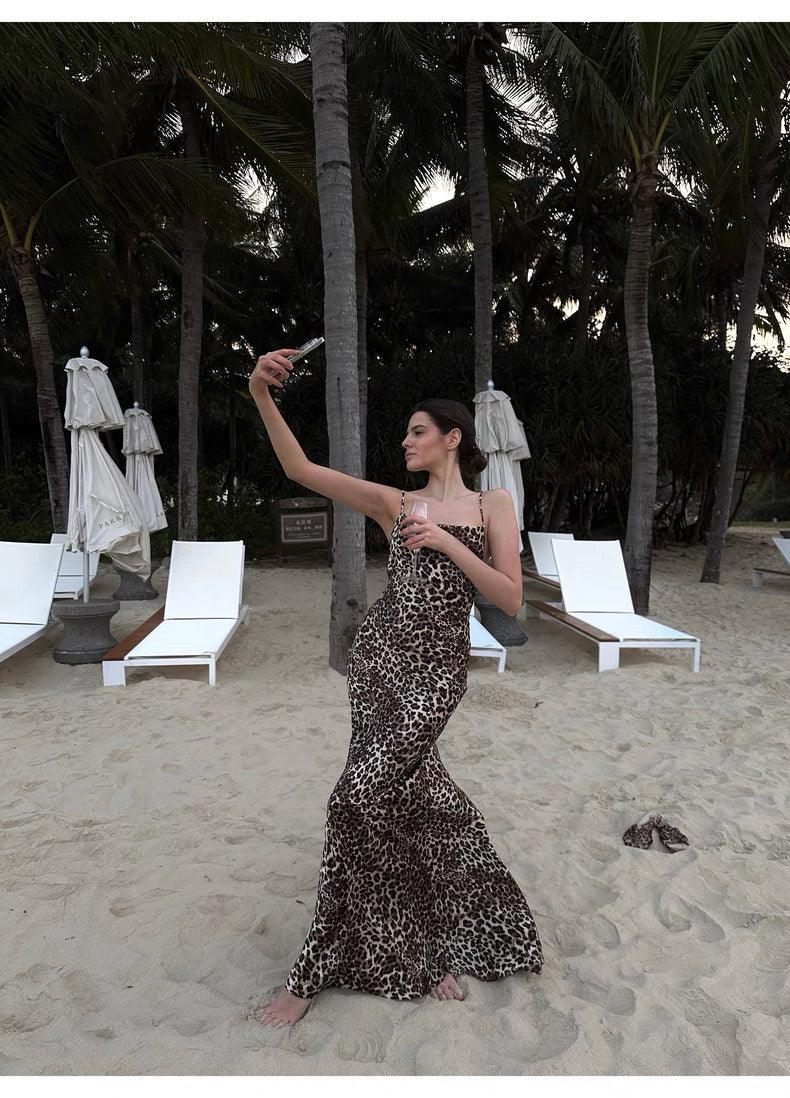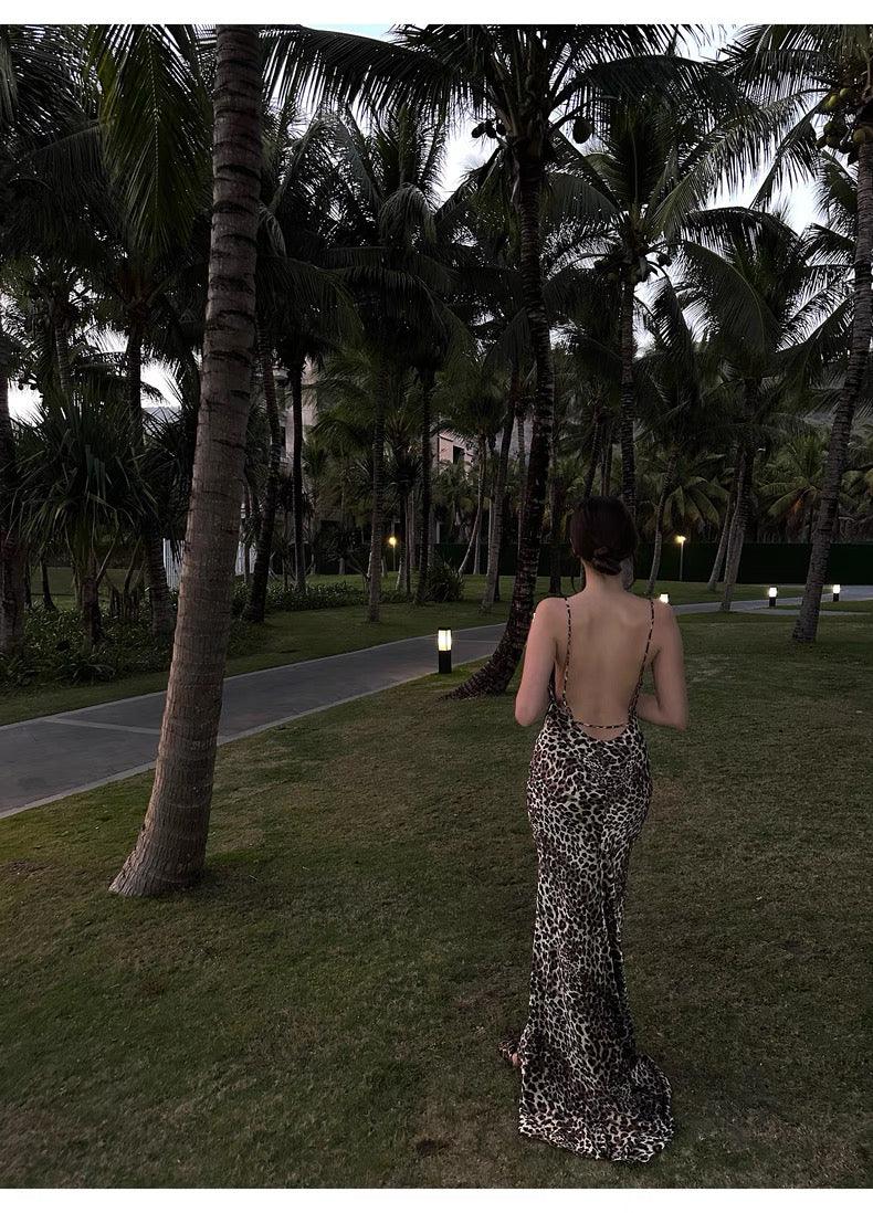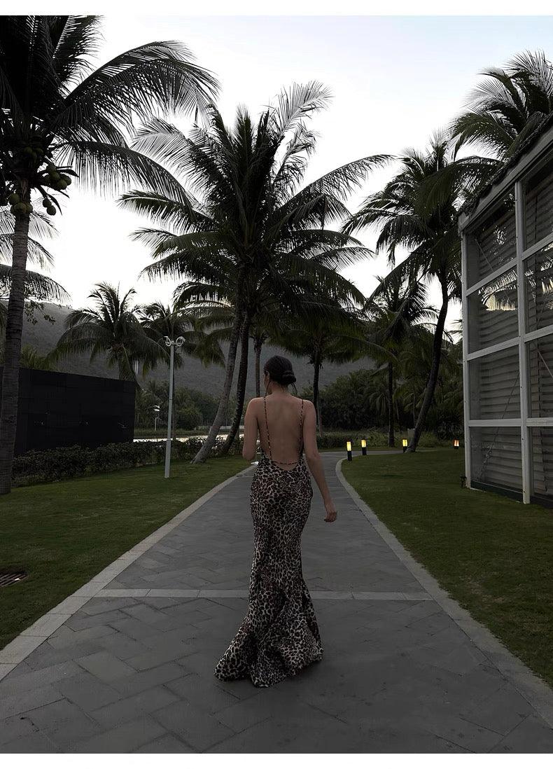 Backless Leopard - Print Spaghetti - Strap Maxi Dress