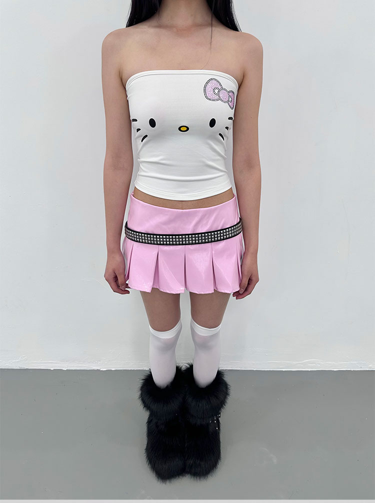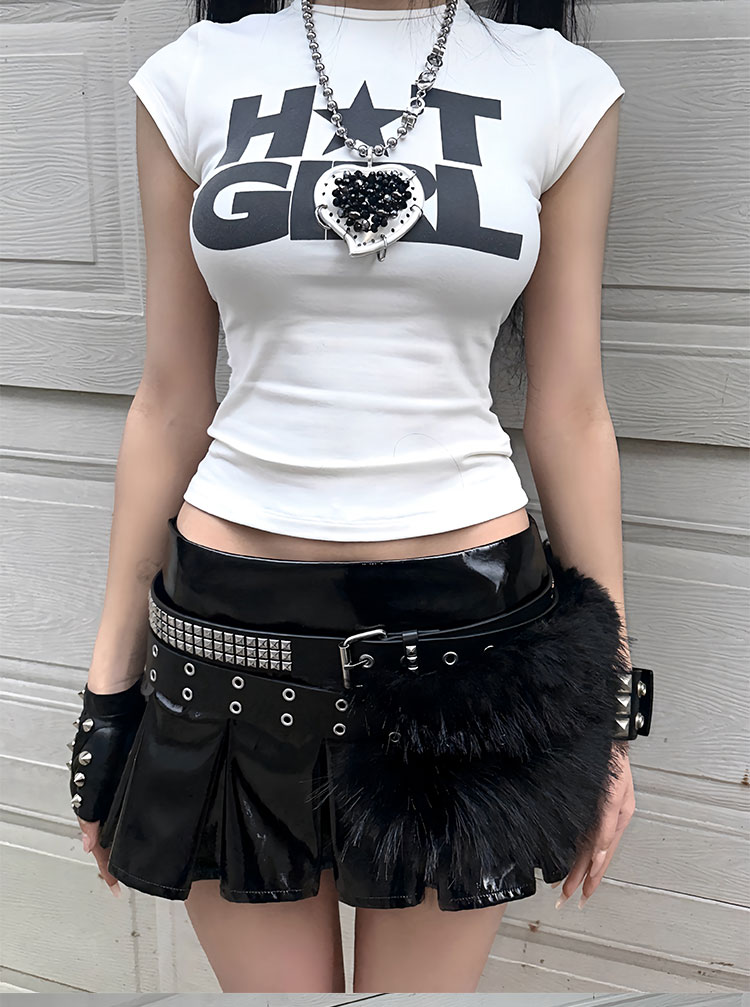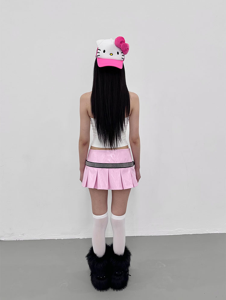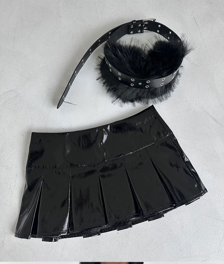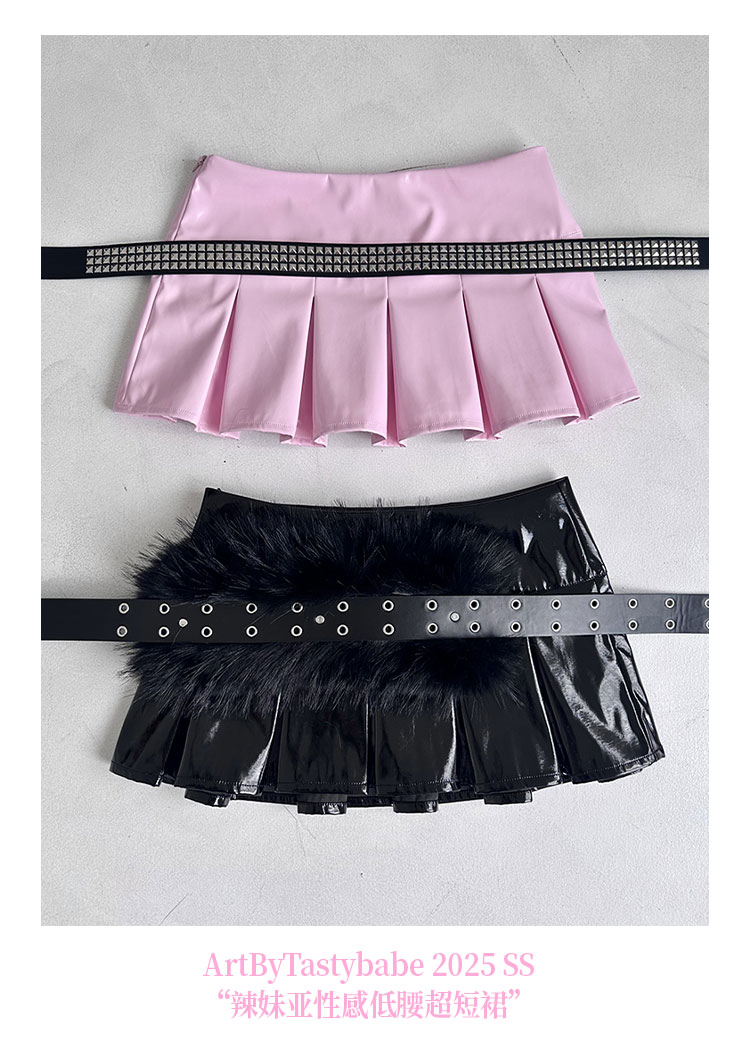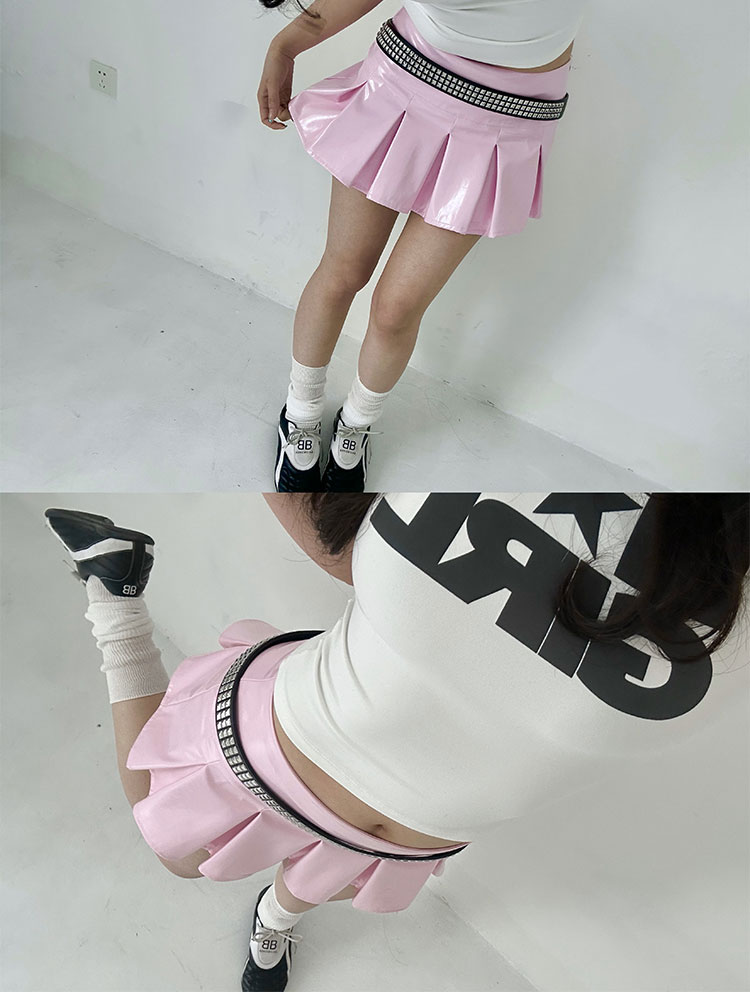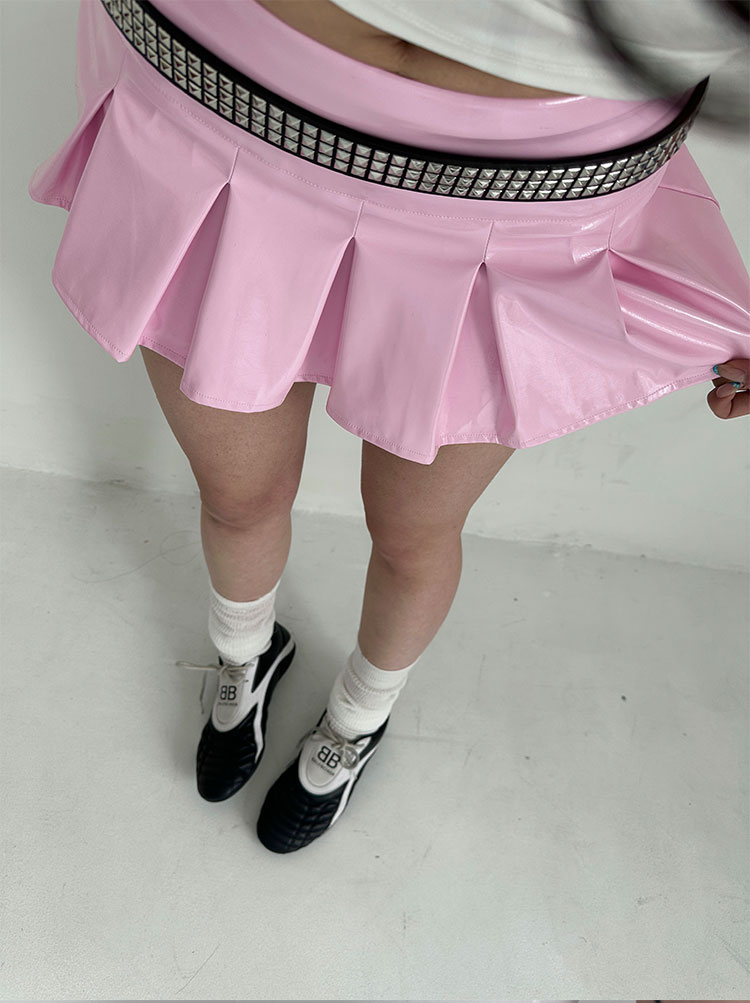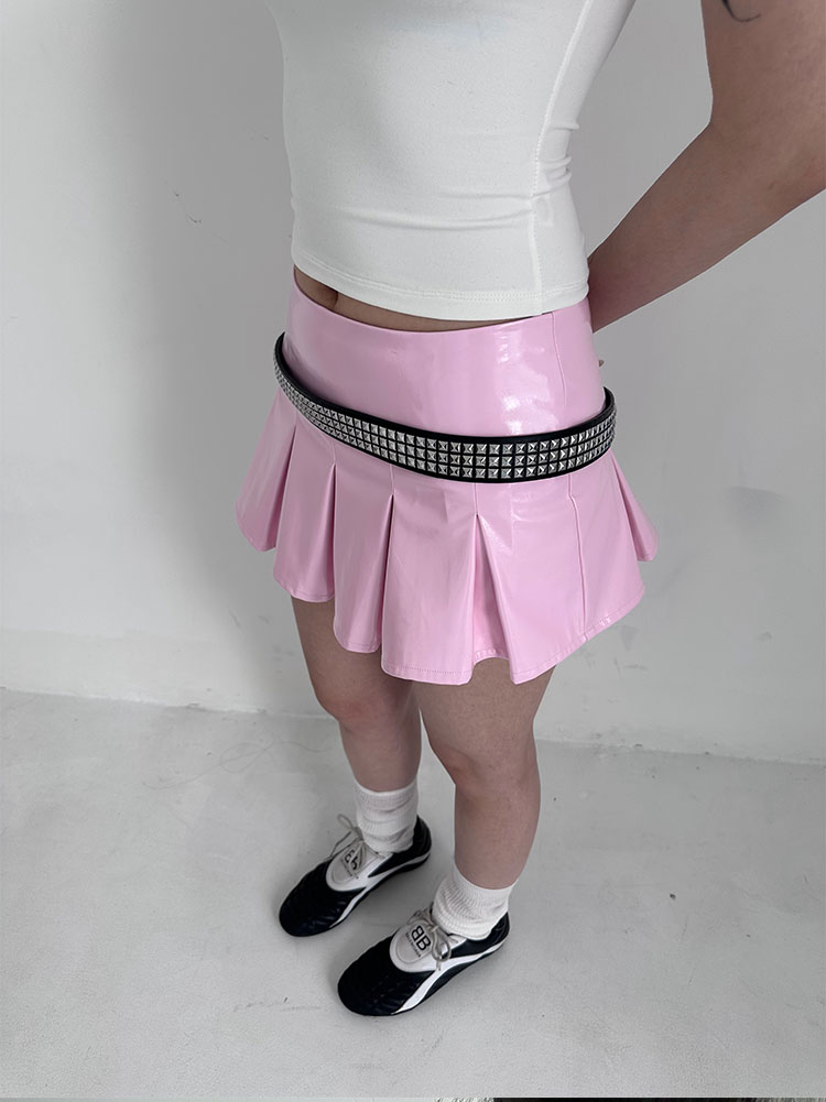 black/pink leather skirt pleated mini skirts