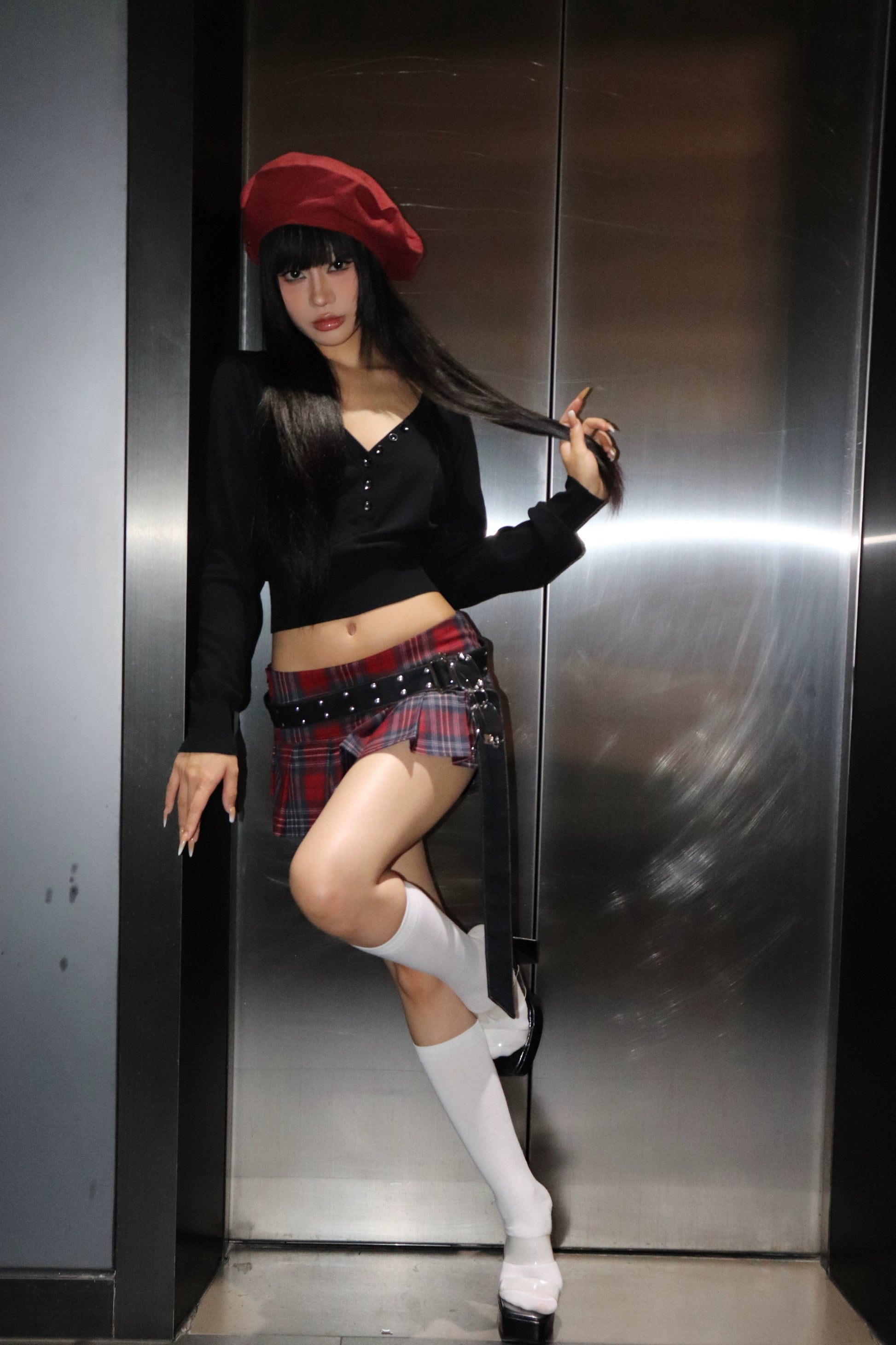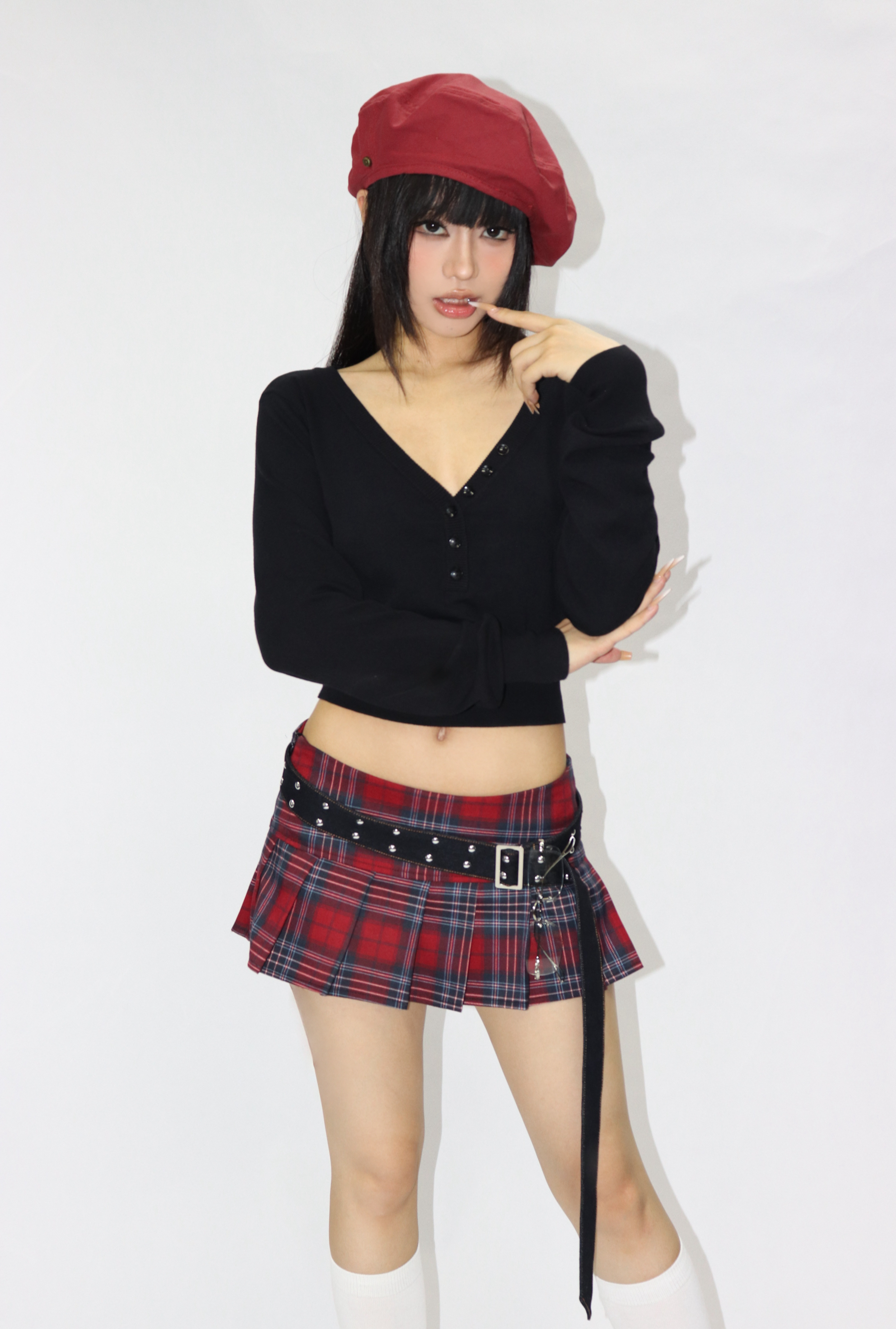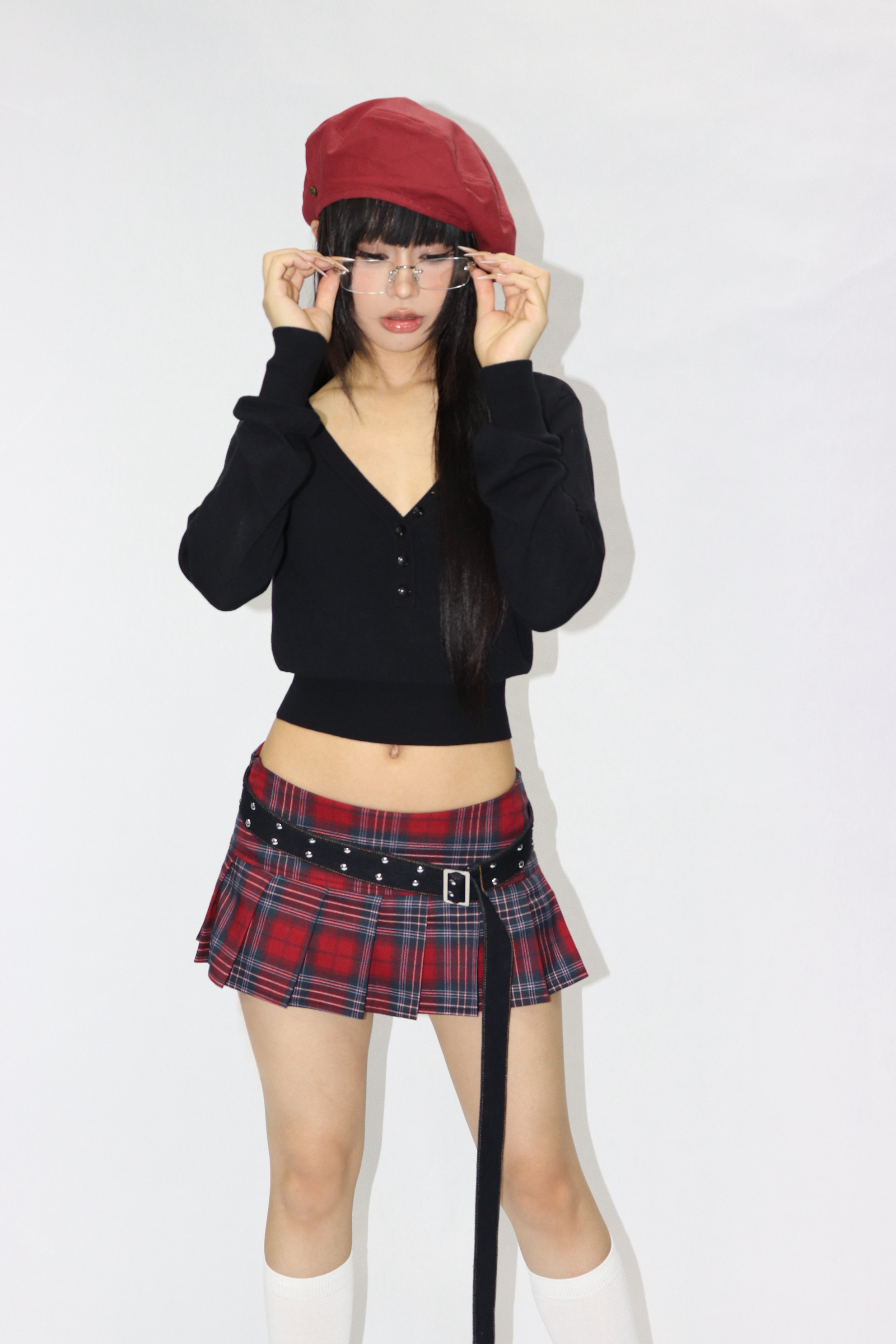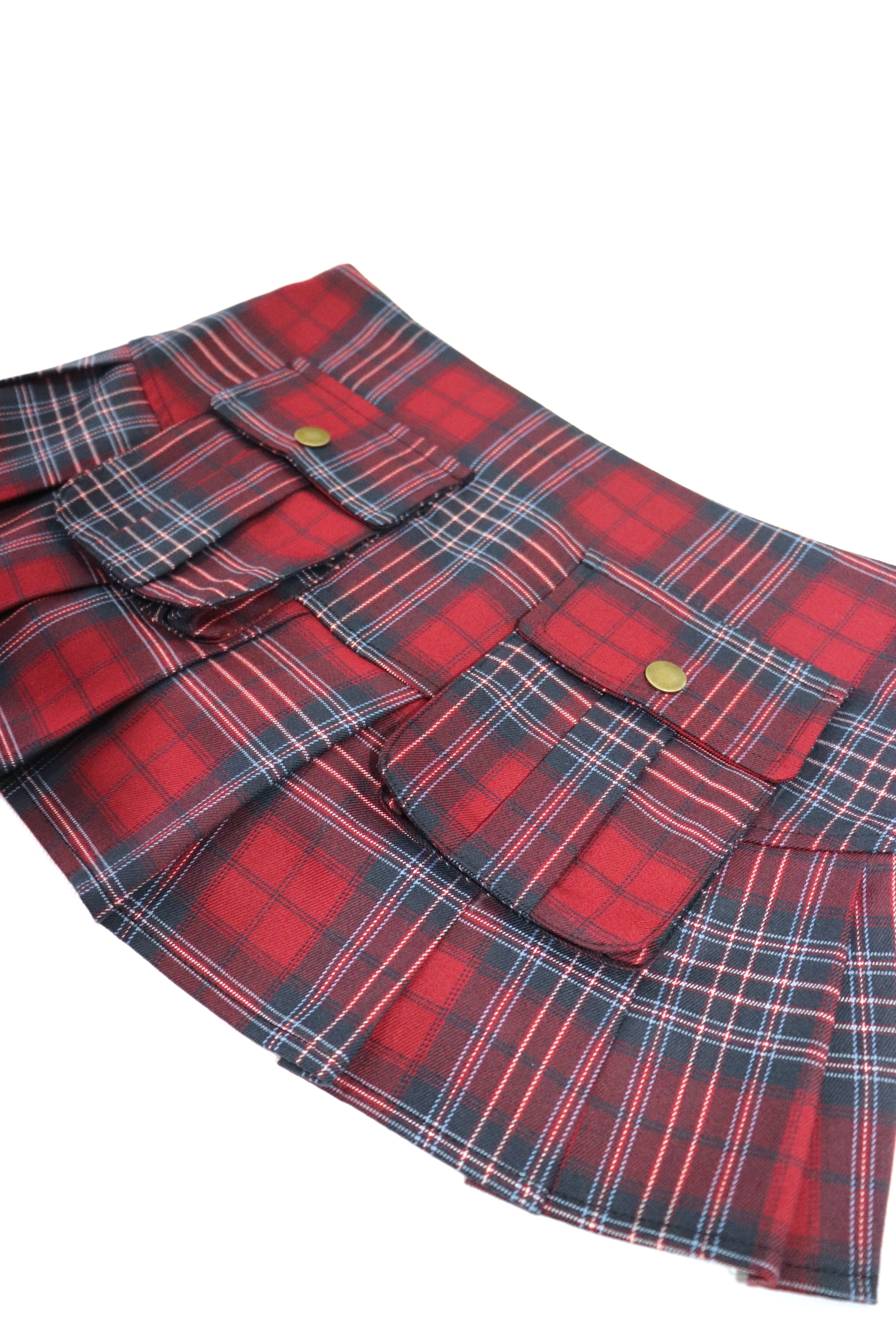 Low waist retro pleated red plaid miniskirt