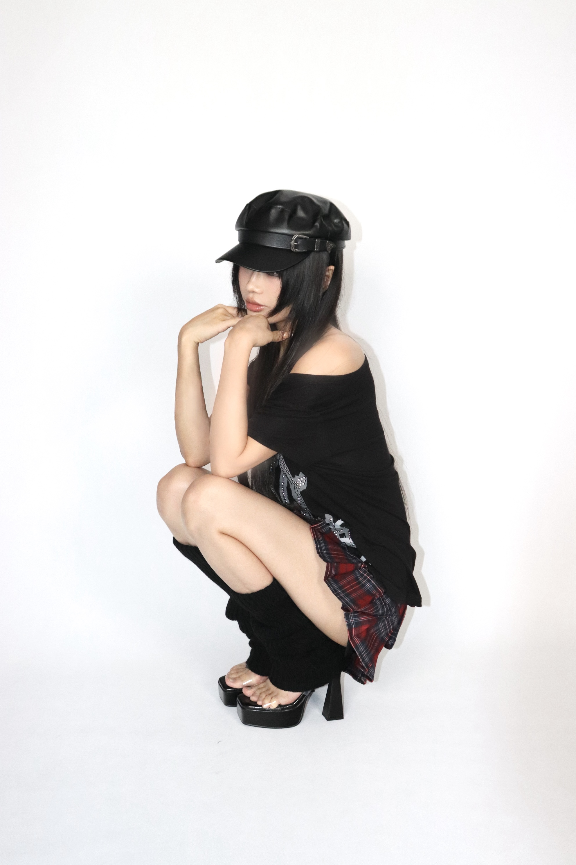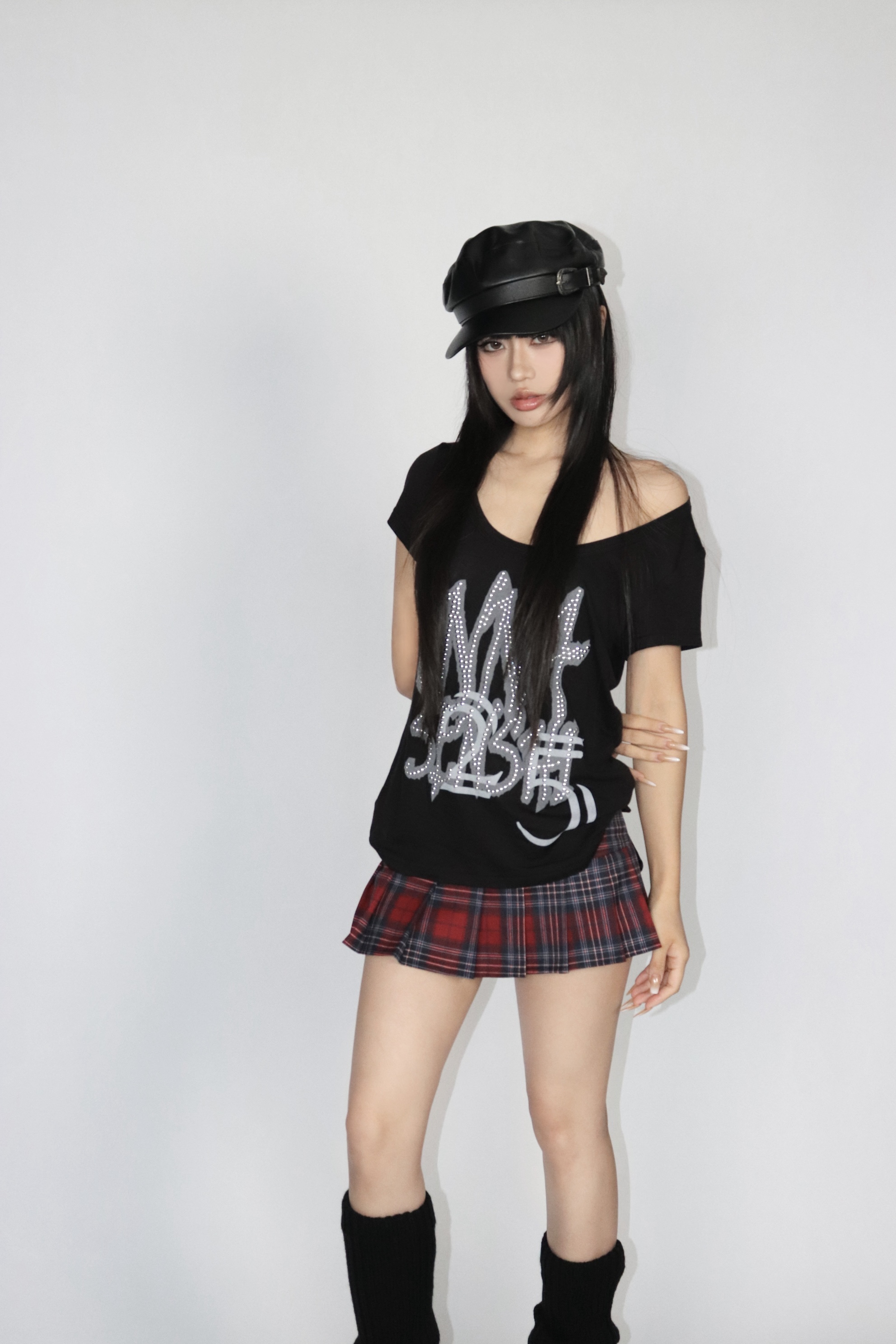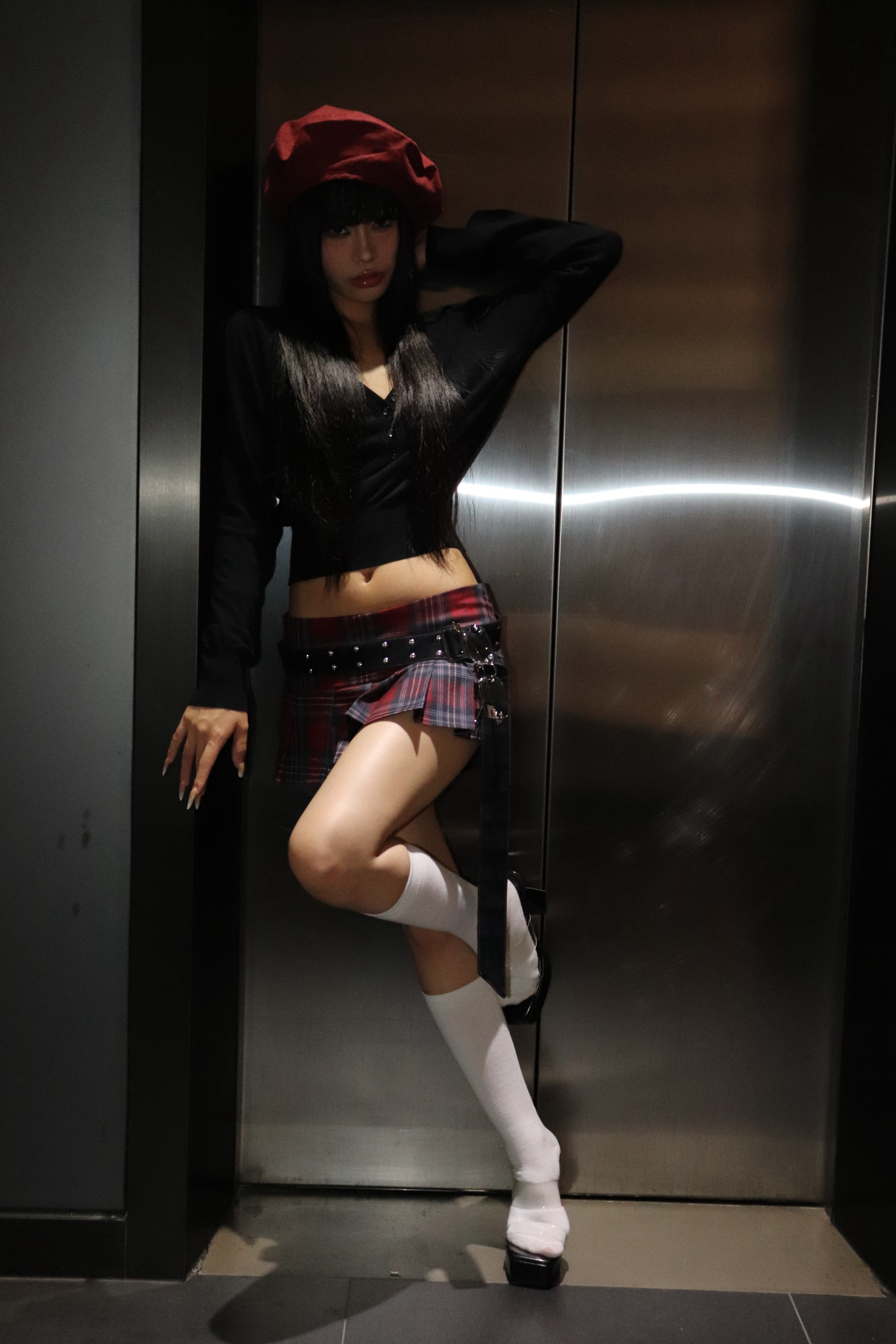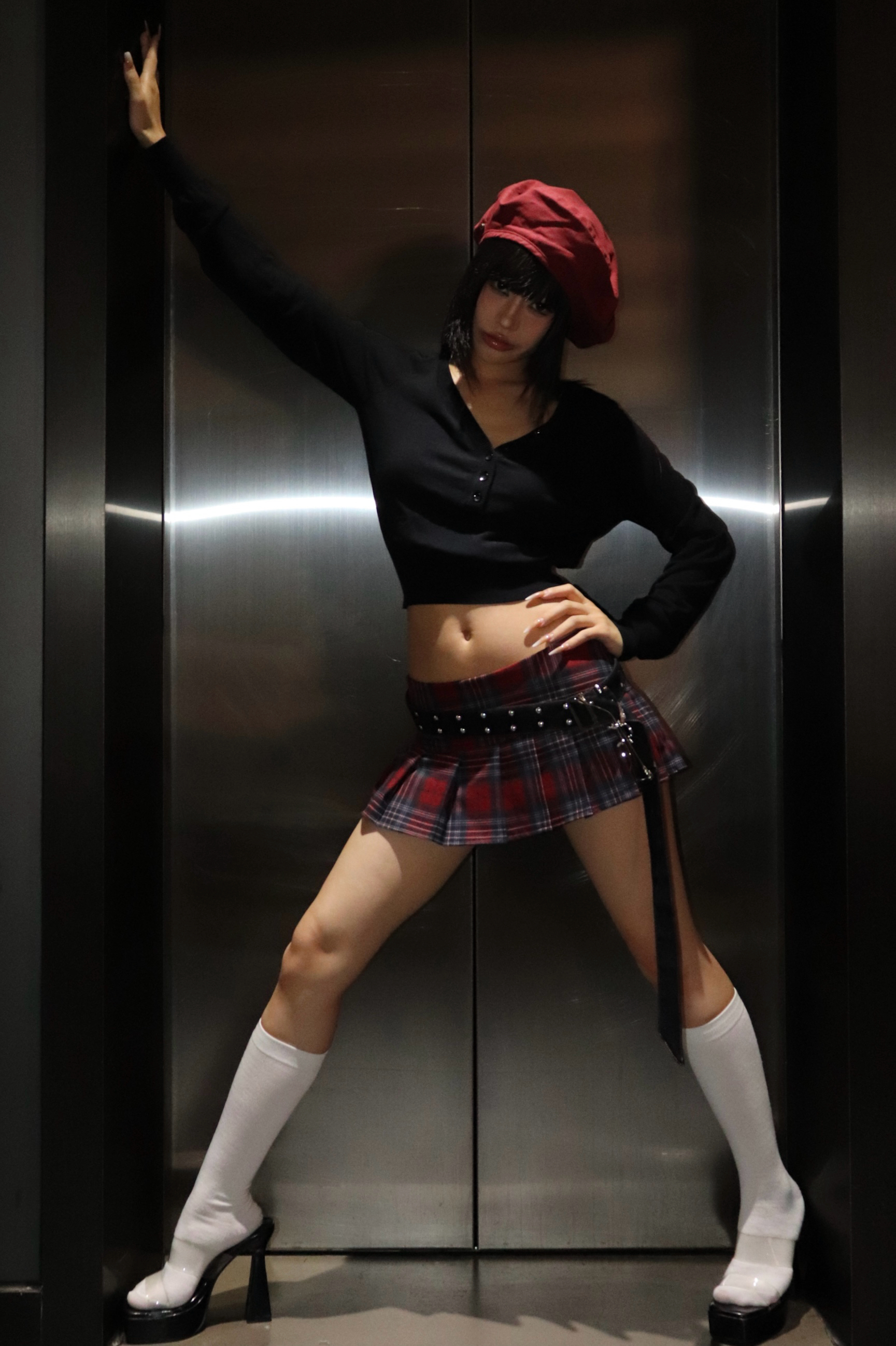 Low waist retro pleated red plaid miniskirt