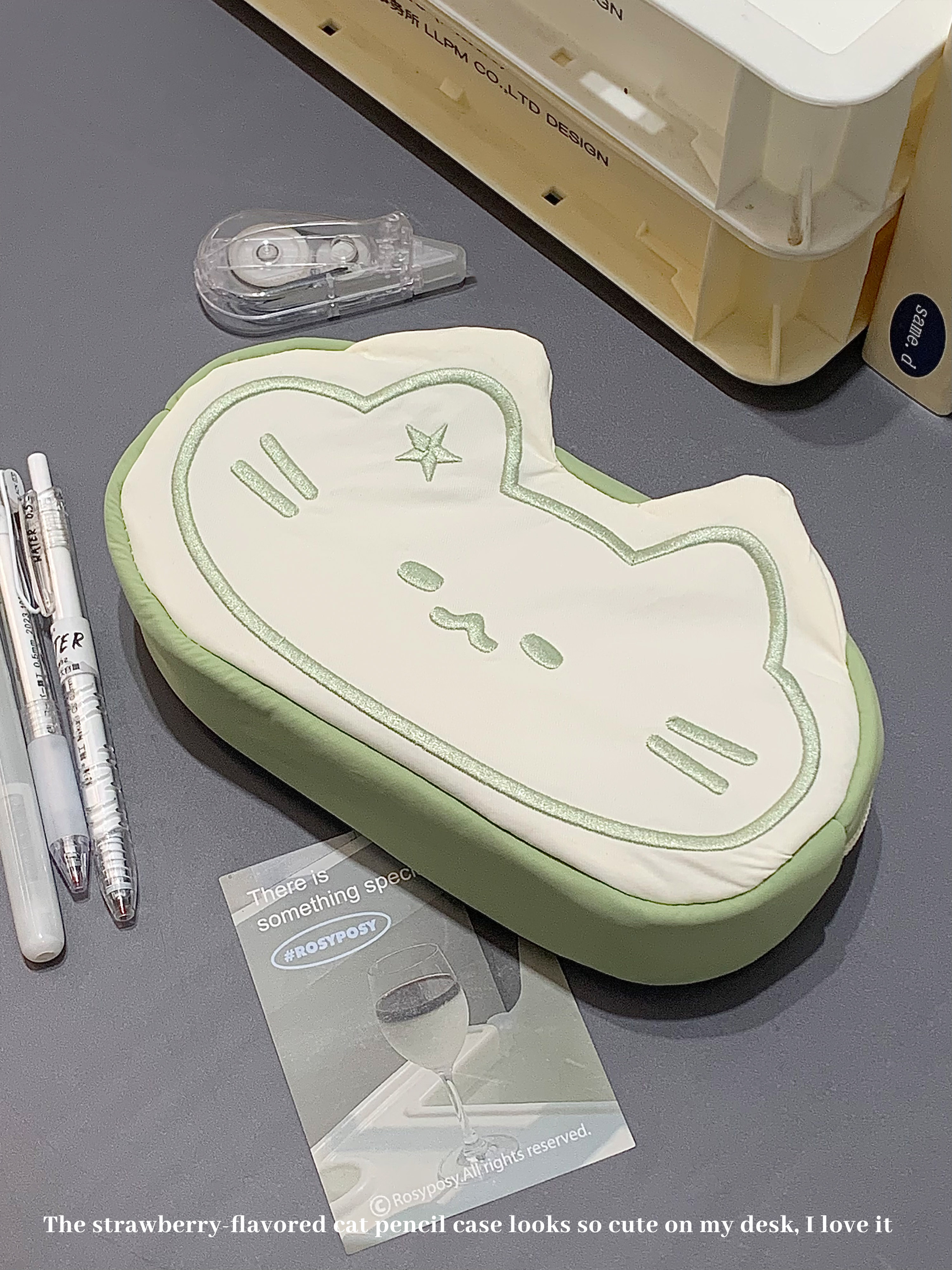Matcha flavored cat pencil case