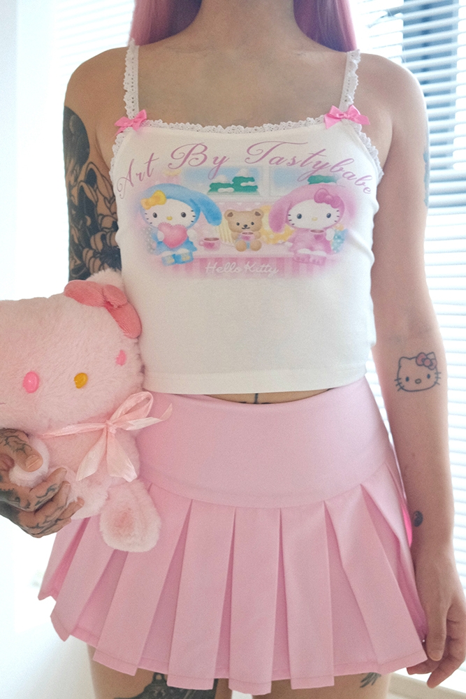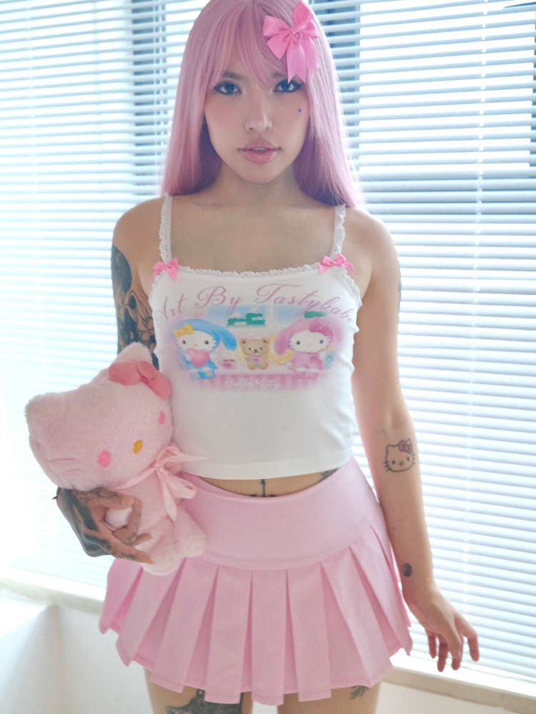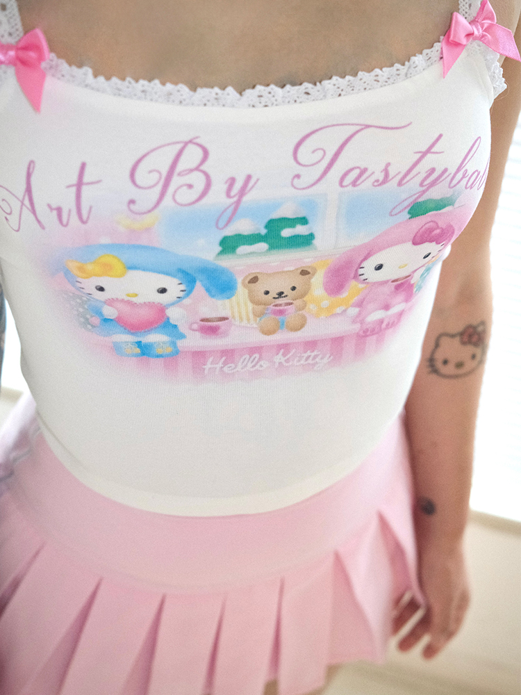 cute cartoon kitty lace cami