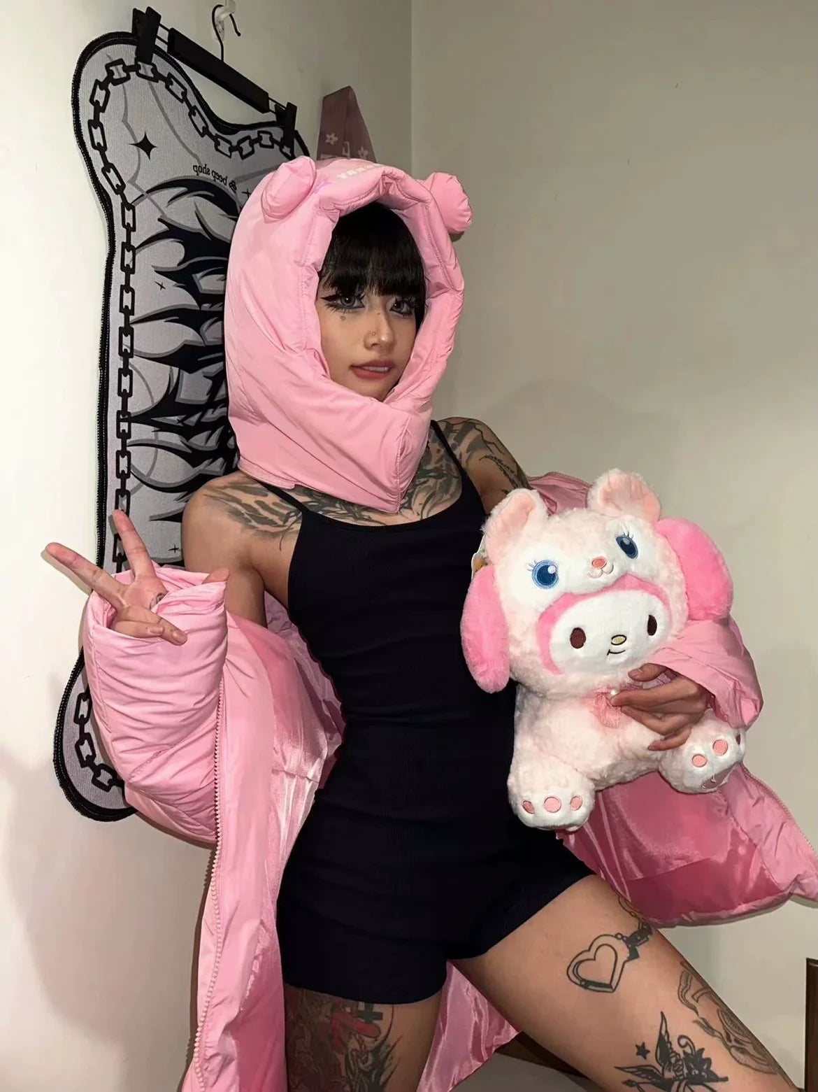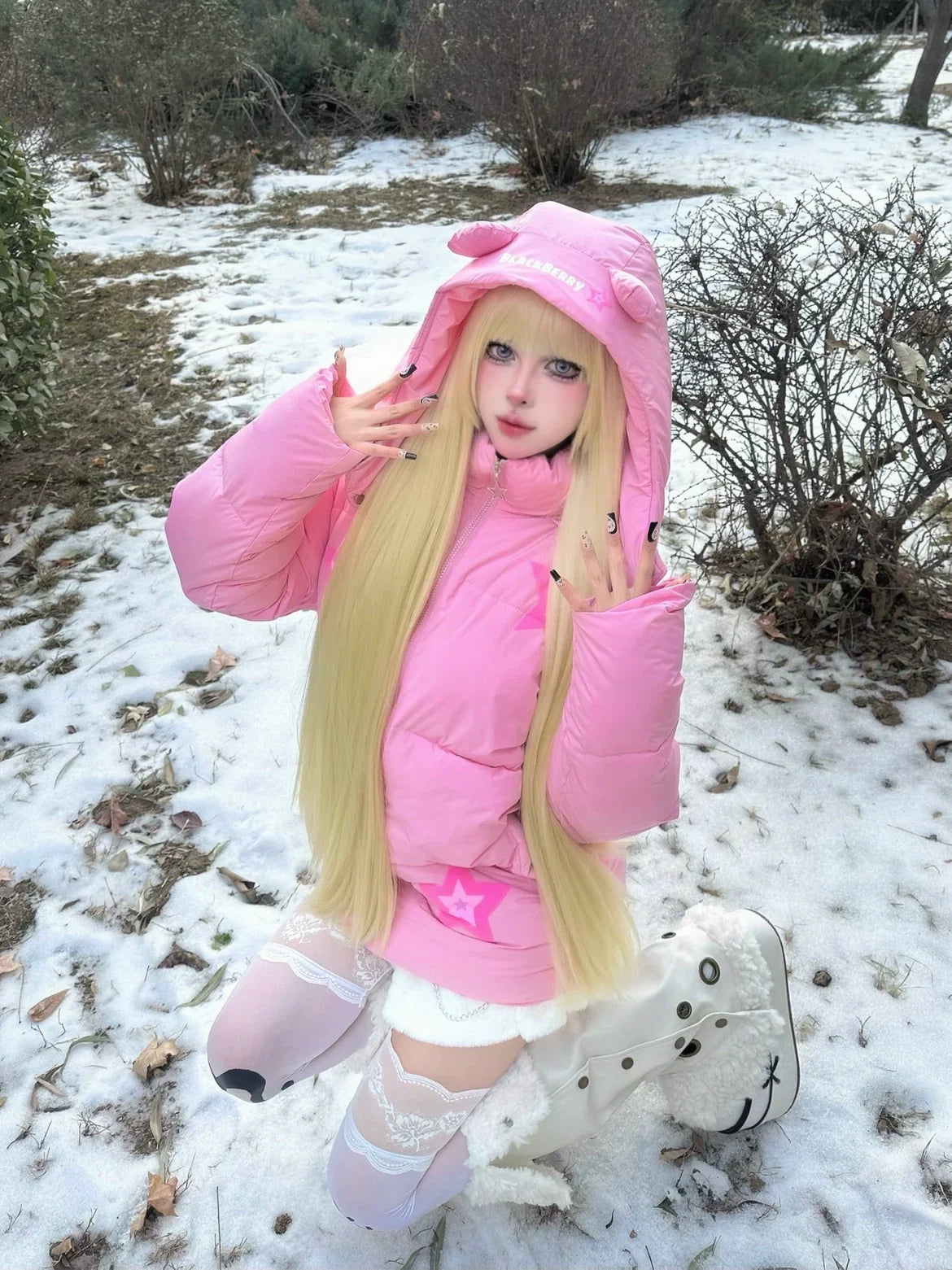 Pink star bear hat cotton coat