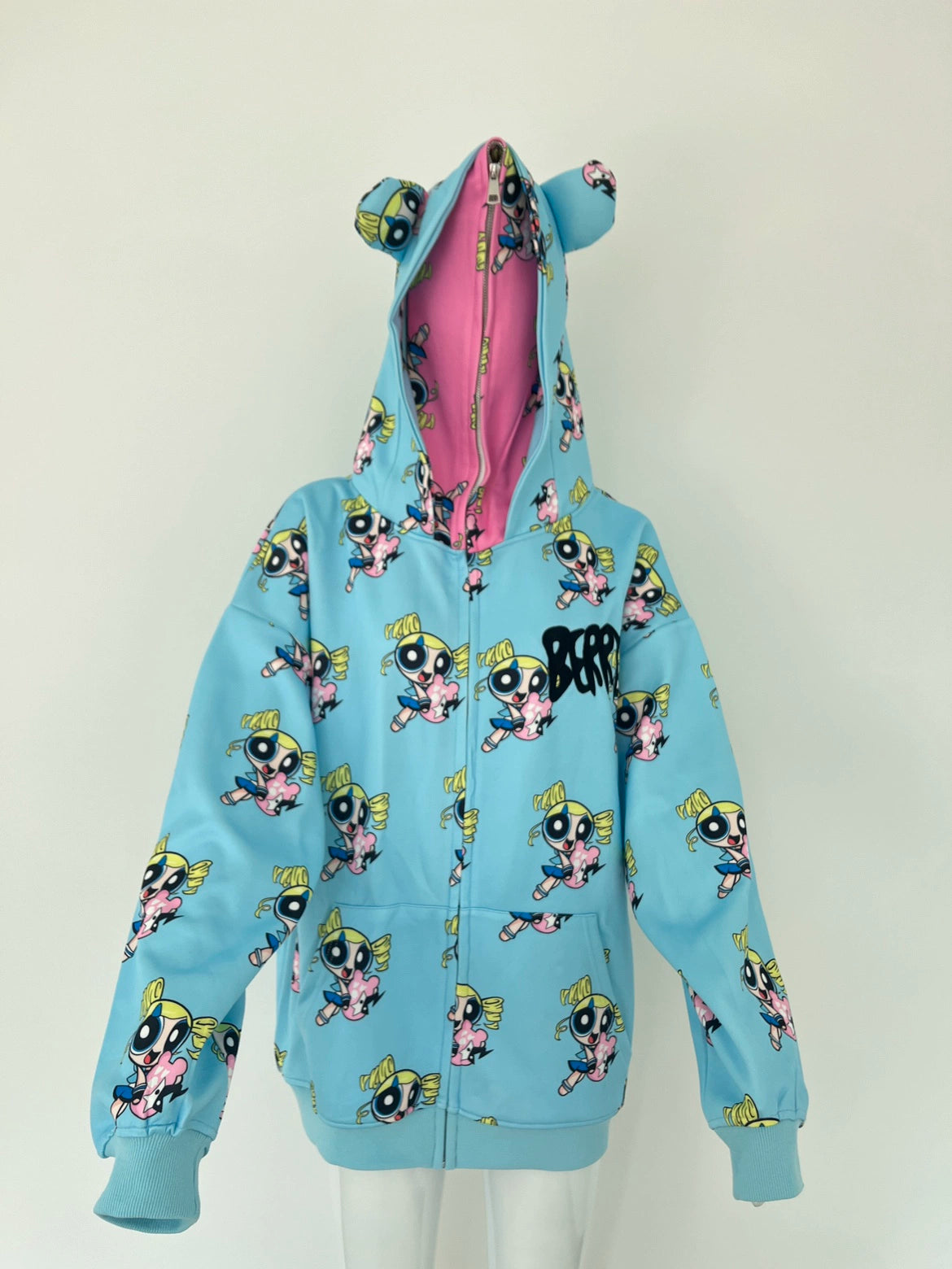 Powerpuff Girl Cartoon Printed Double Hat Hoodie