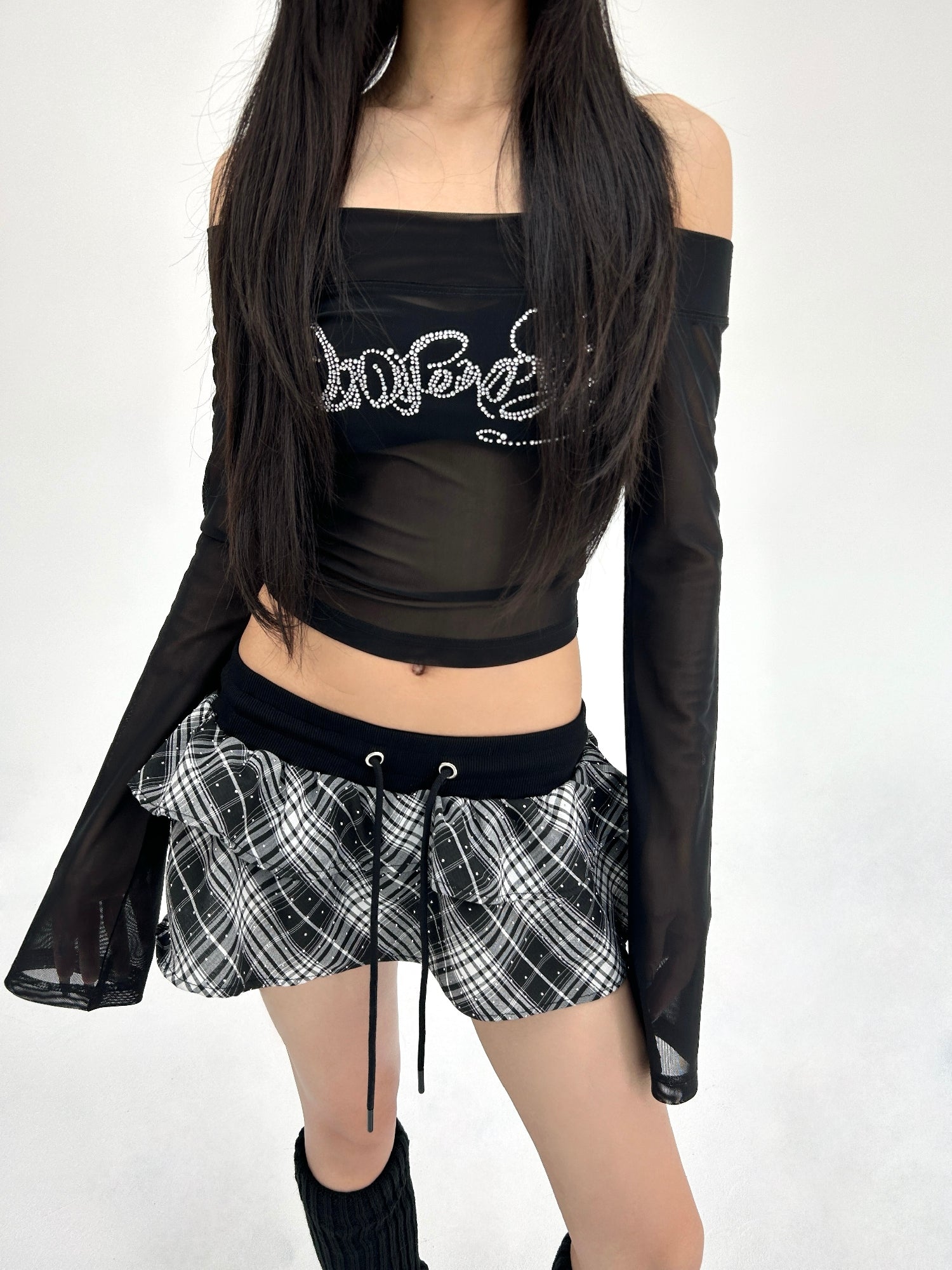 Rhinestone Black Off-Shoulder Top