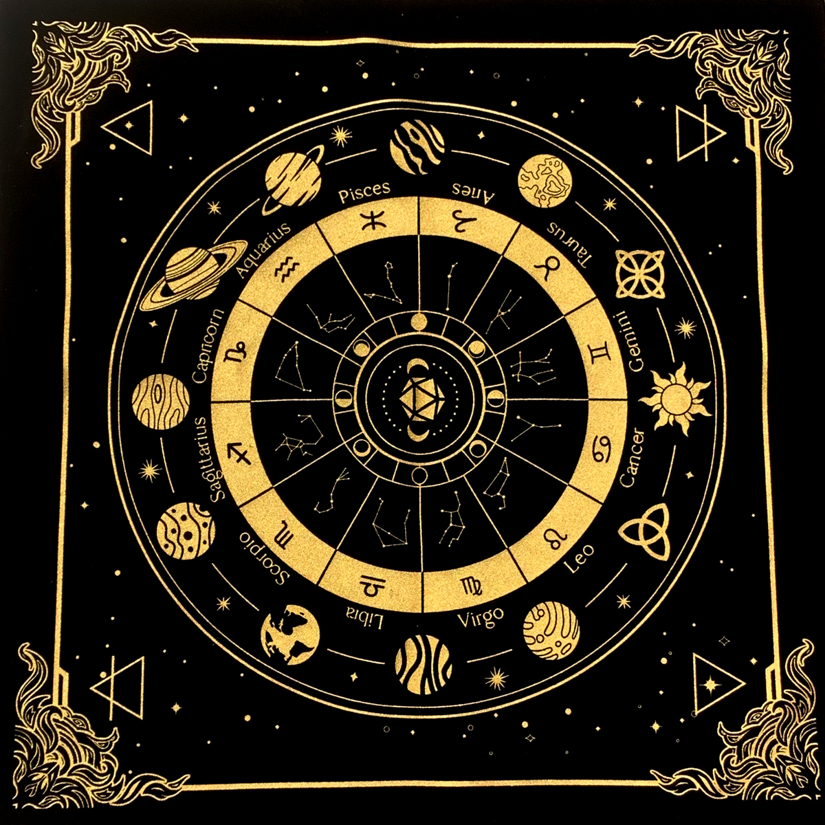 Twelve Constellations Moon Phase Tablecloth Tarot Velvet 49X49cm